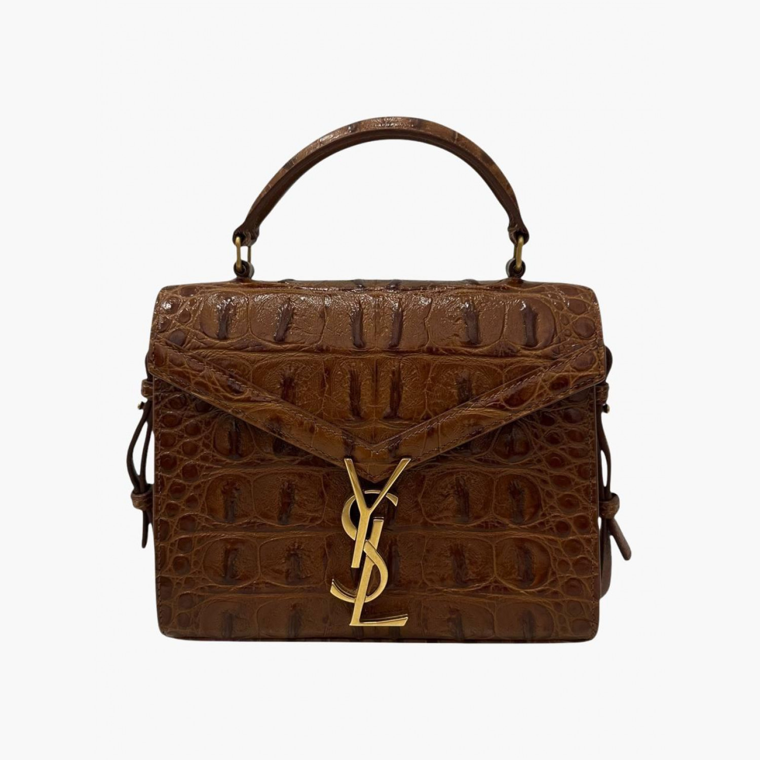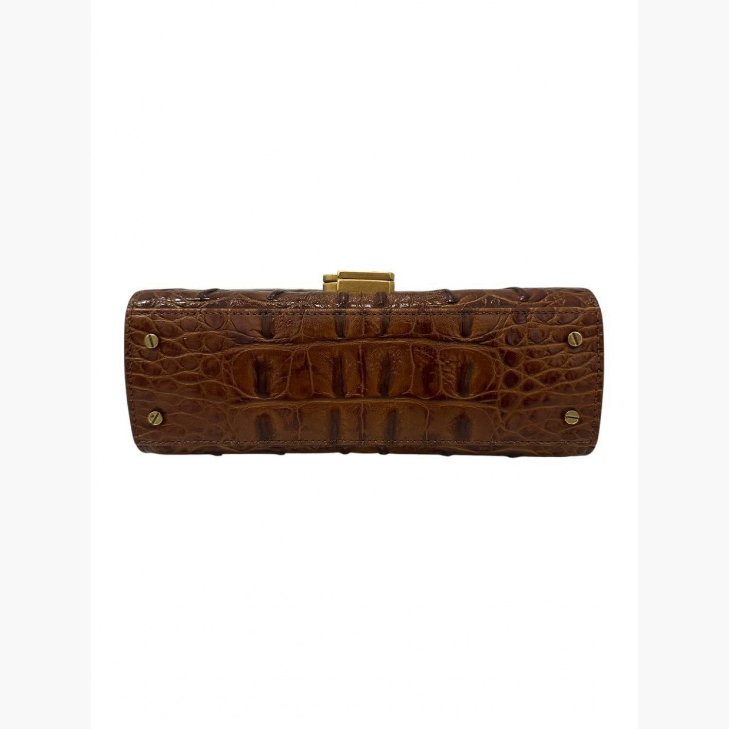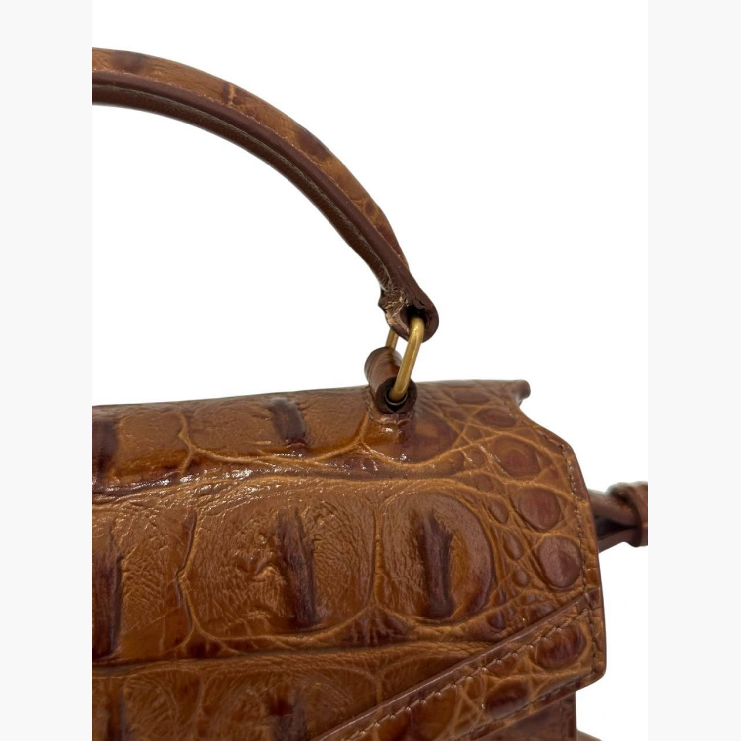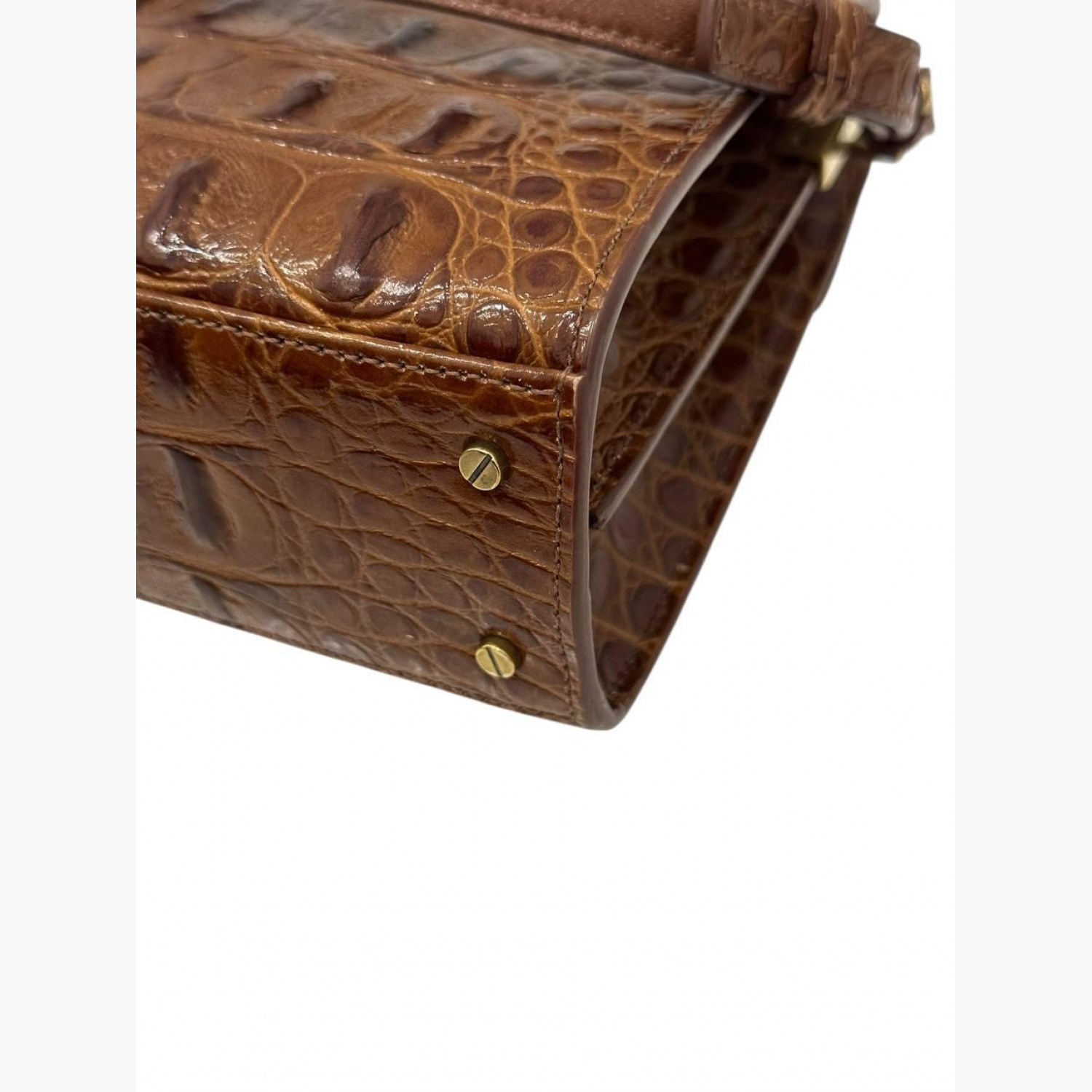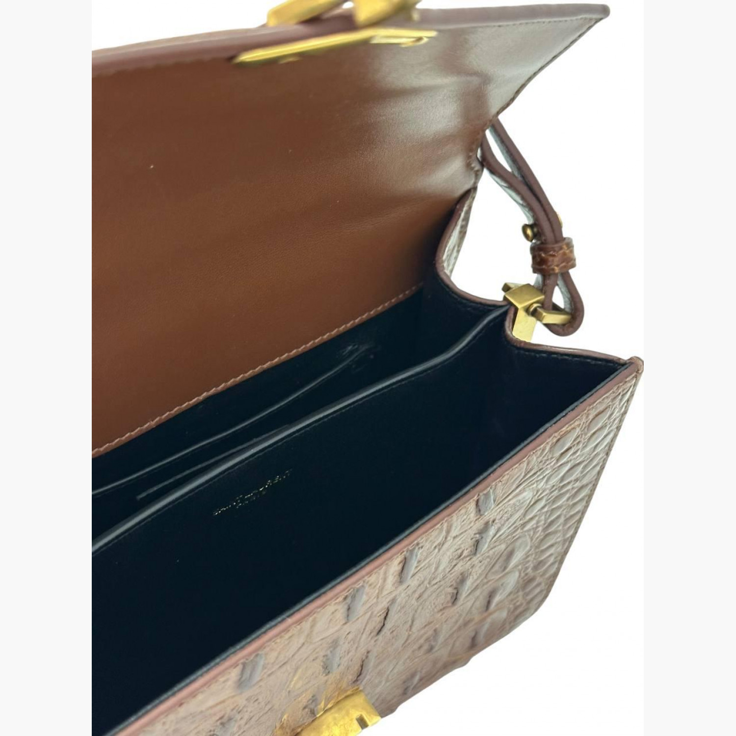 Brown leather bag with crocodile embossing. Two main compartments and a pocket inside. In excellent condition with minor scuffs.