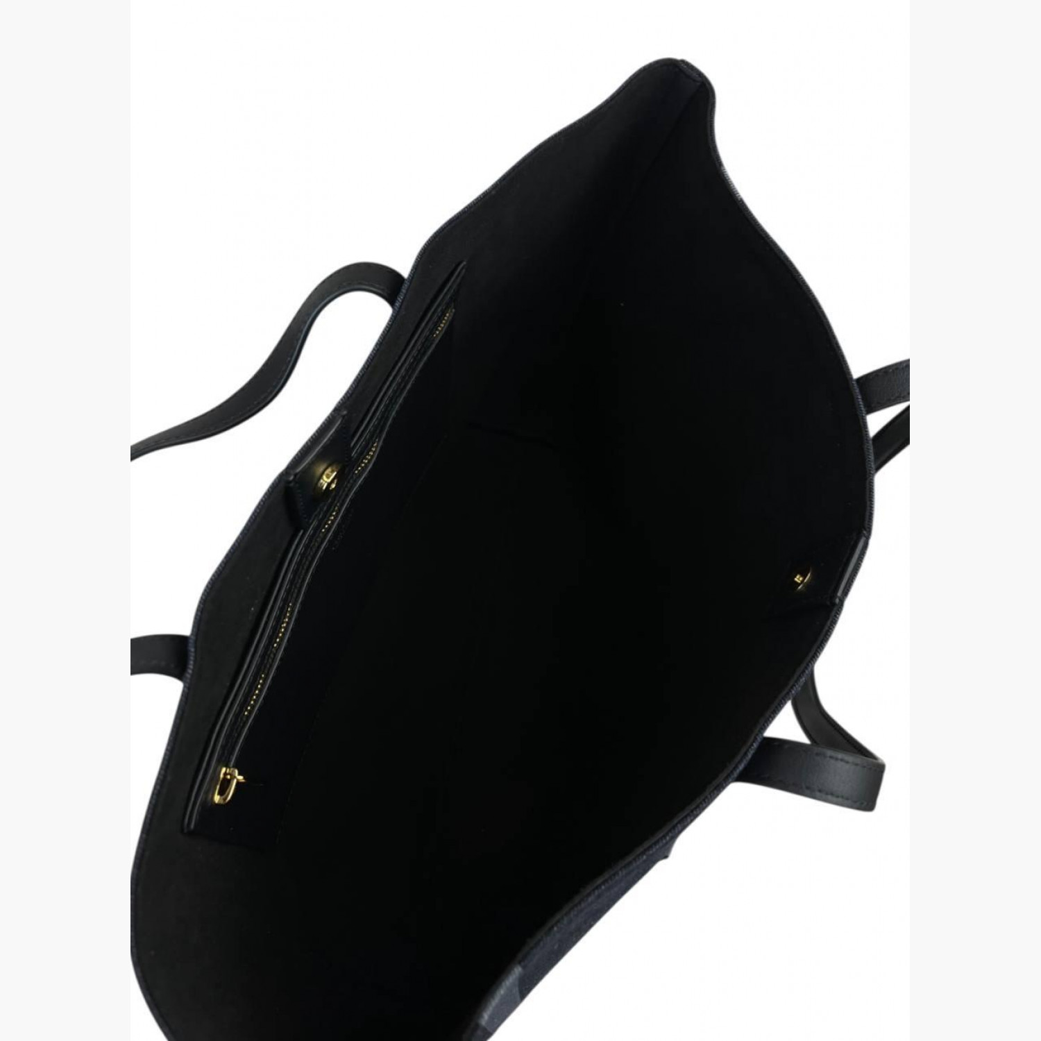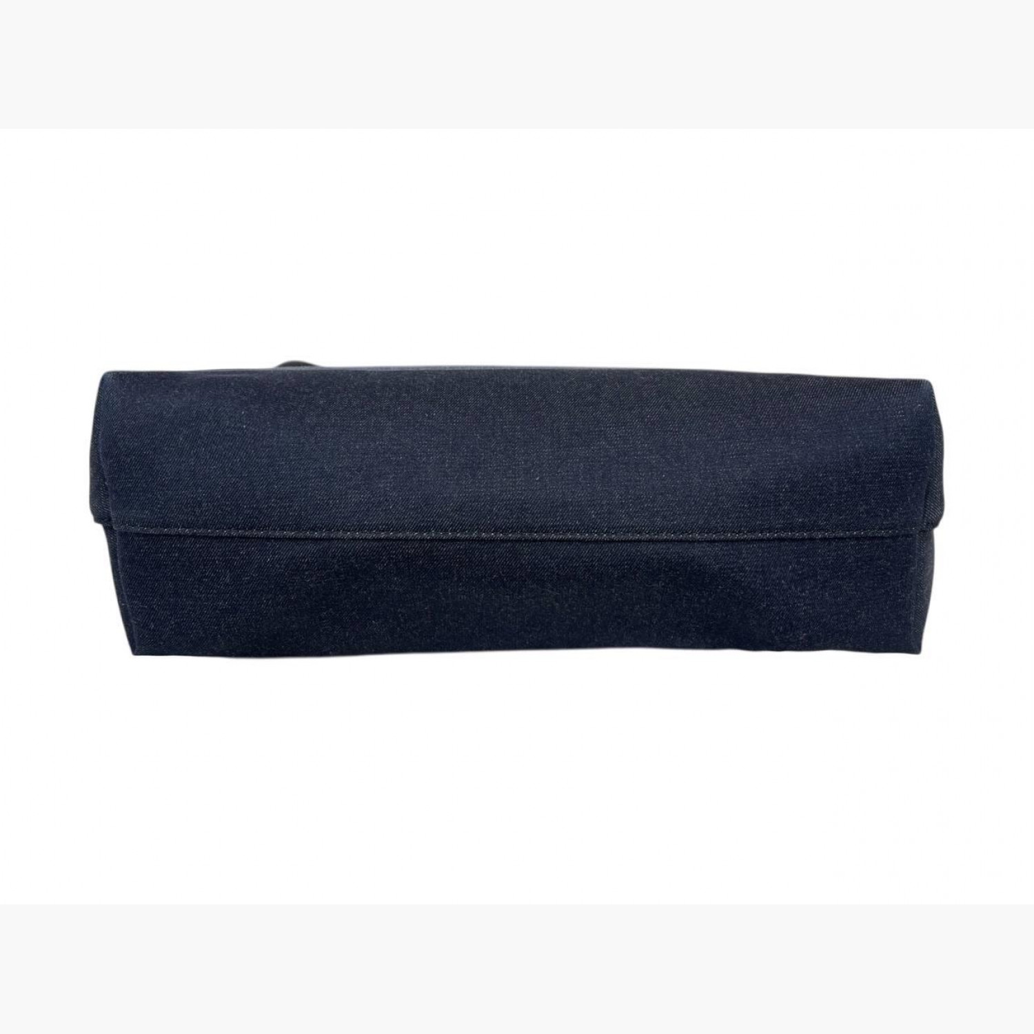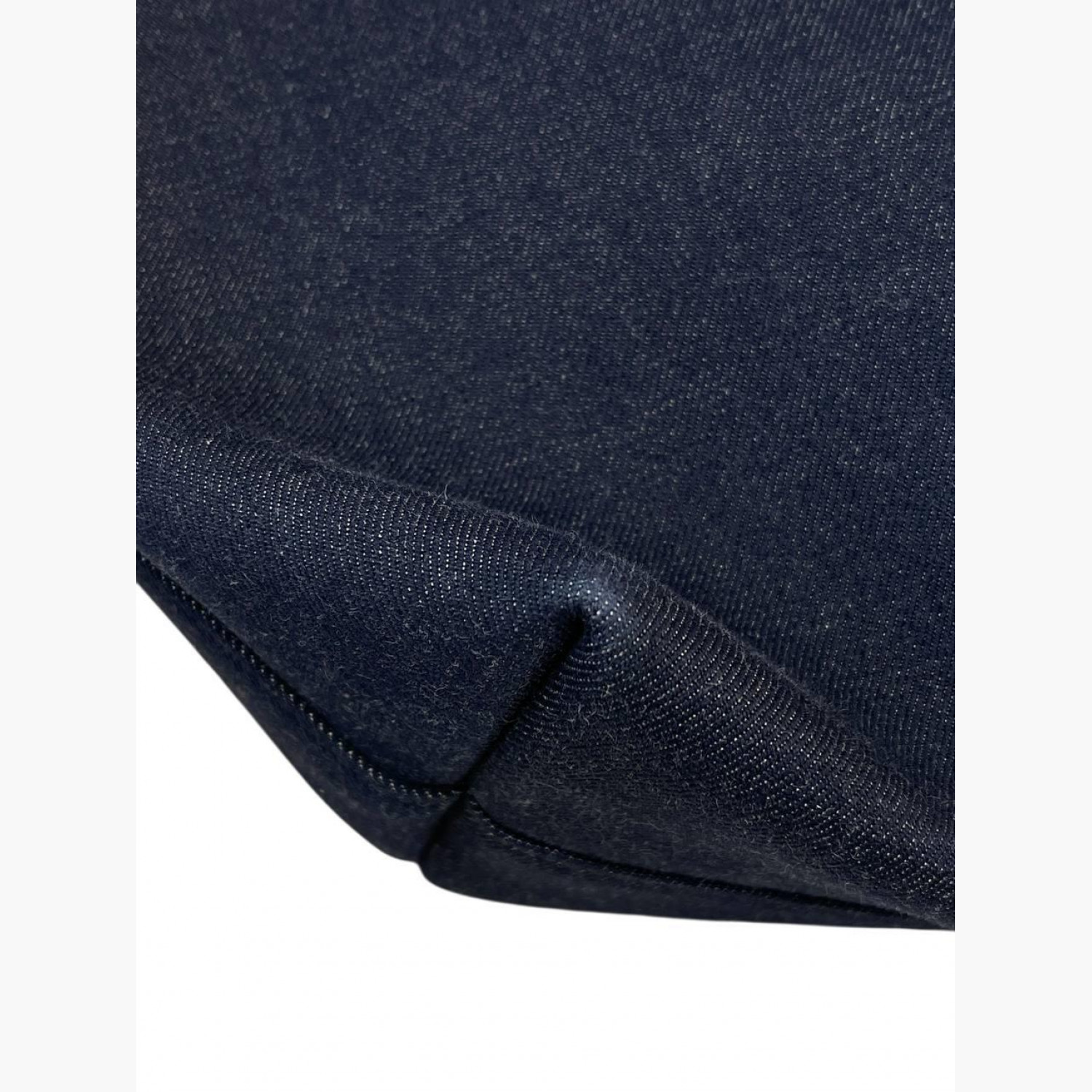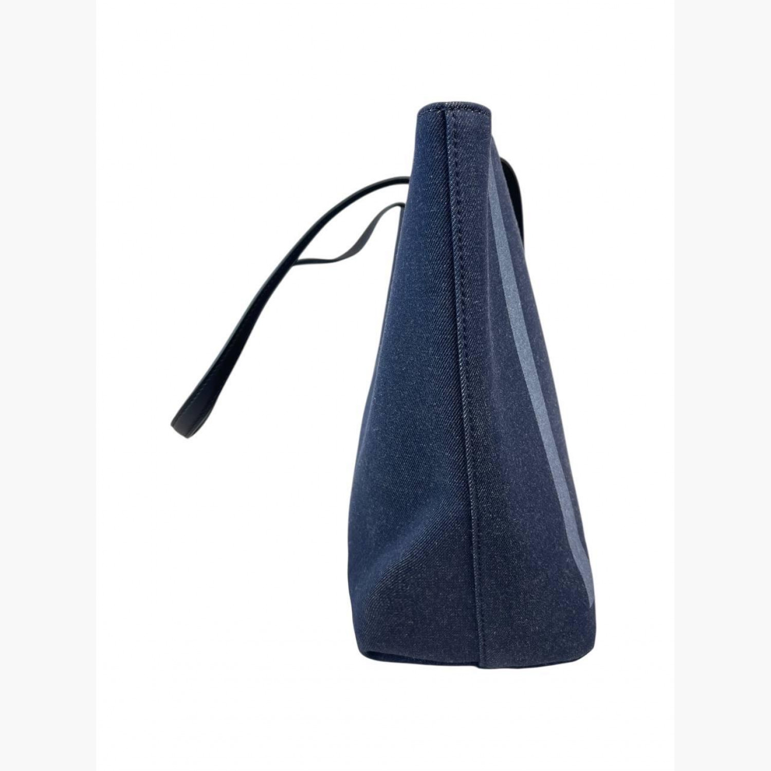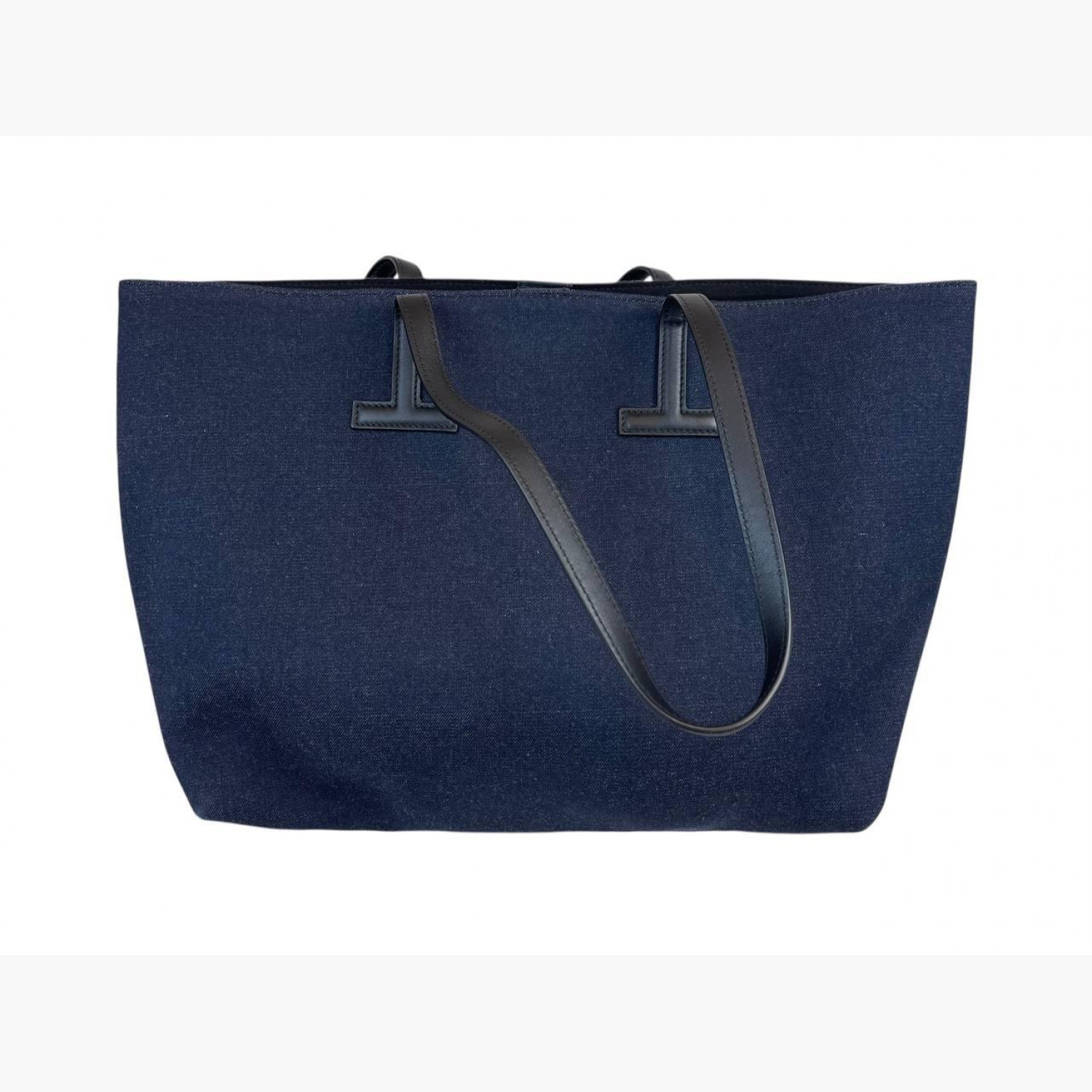Blue denim shopper with leather handles. Inside there is one main compartment with a zip pocket. In excellent condition, with barely noticeable signs of wear.