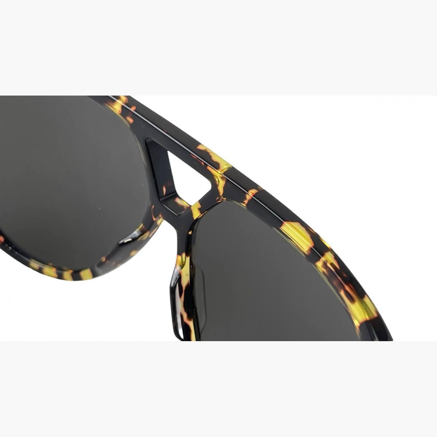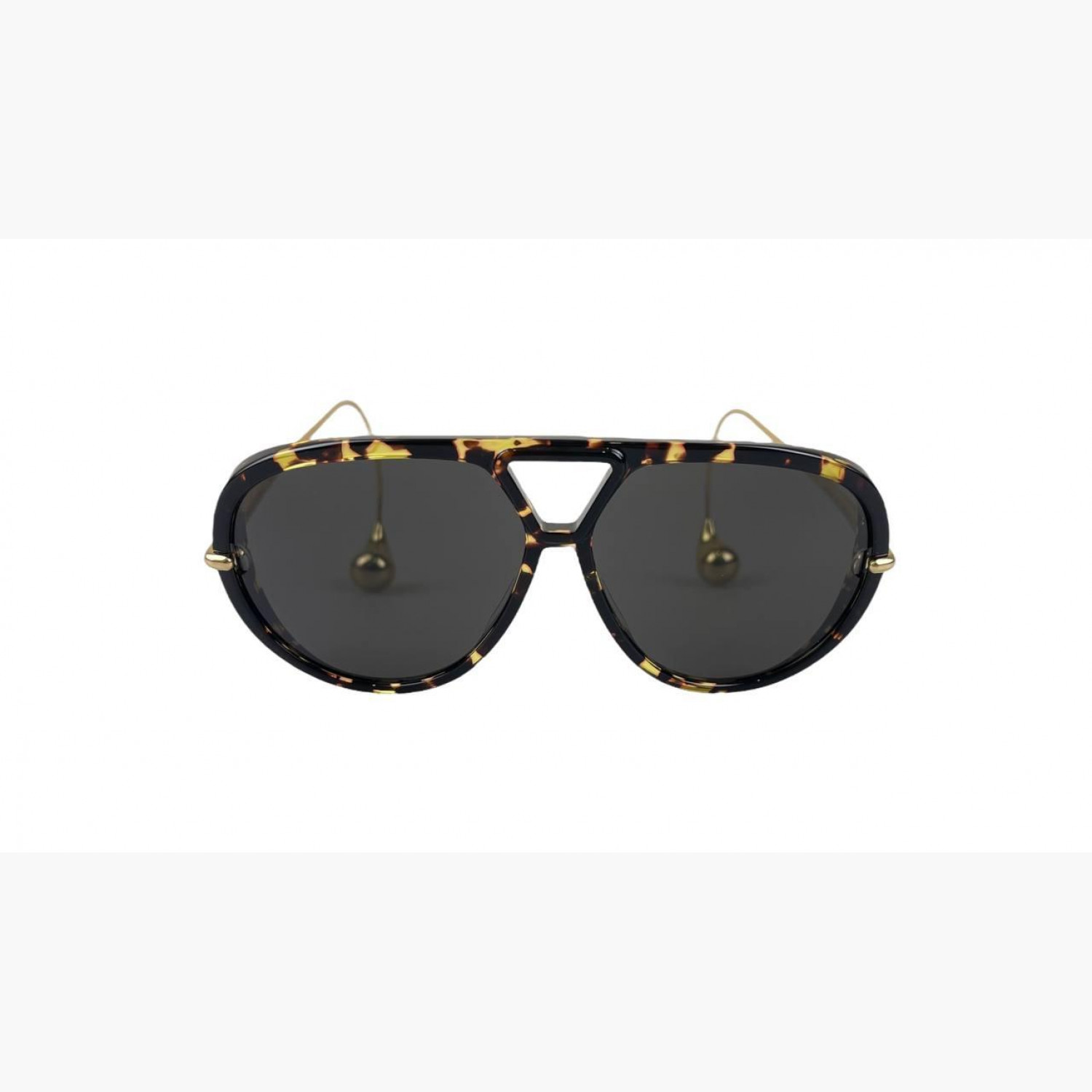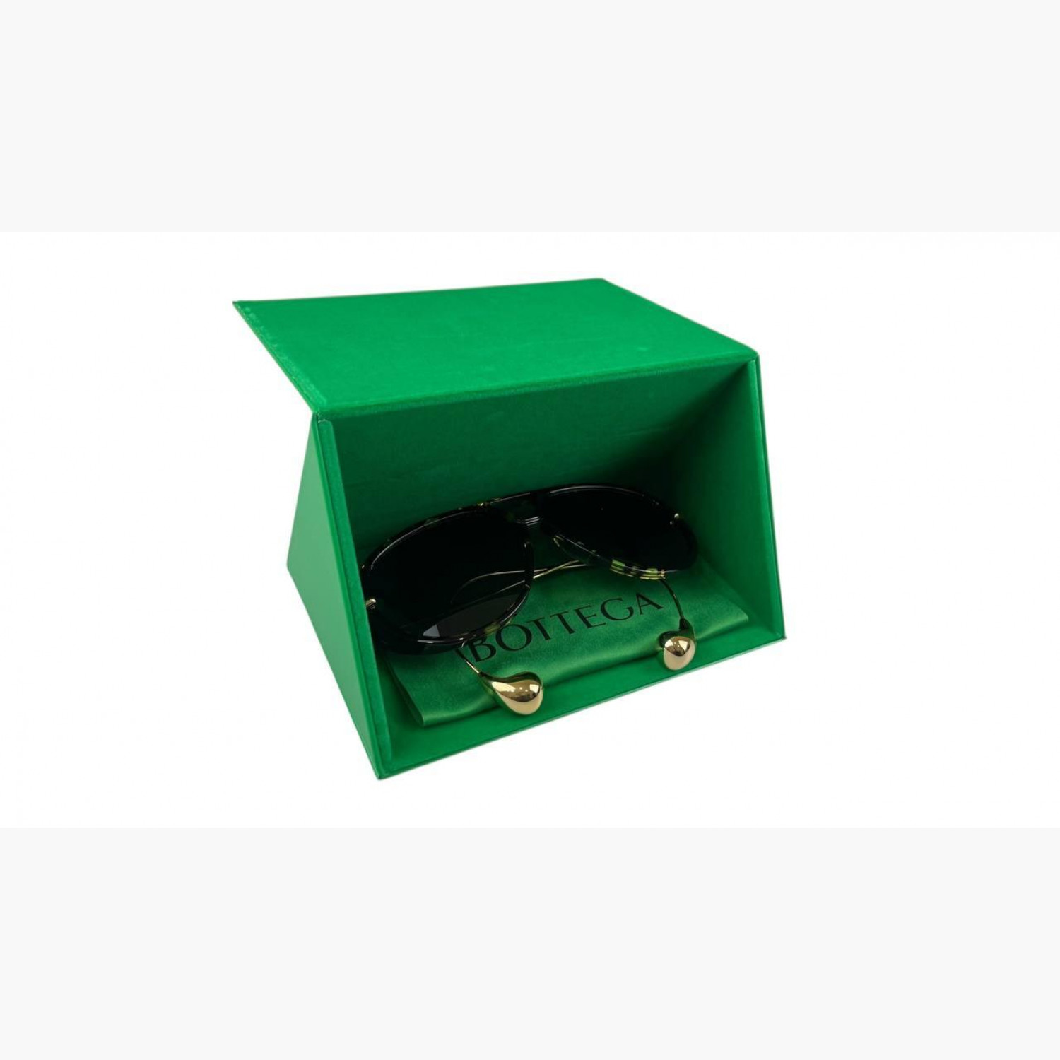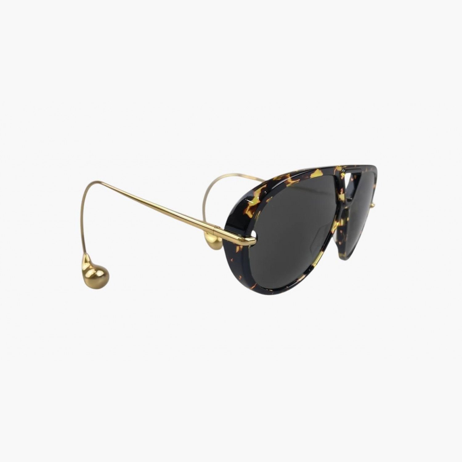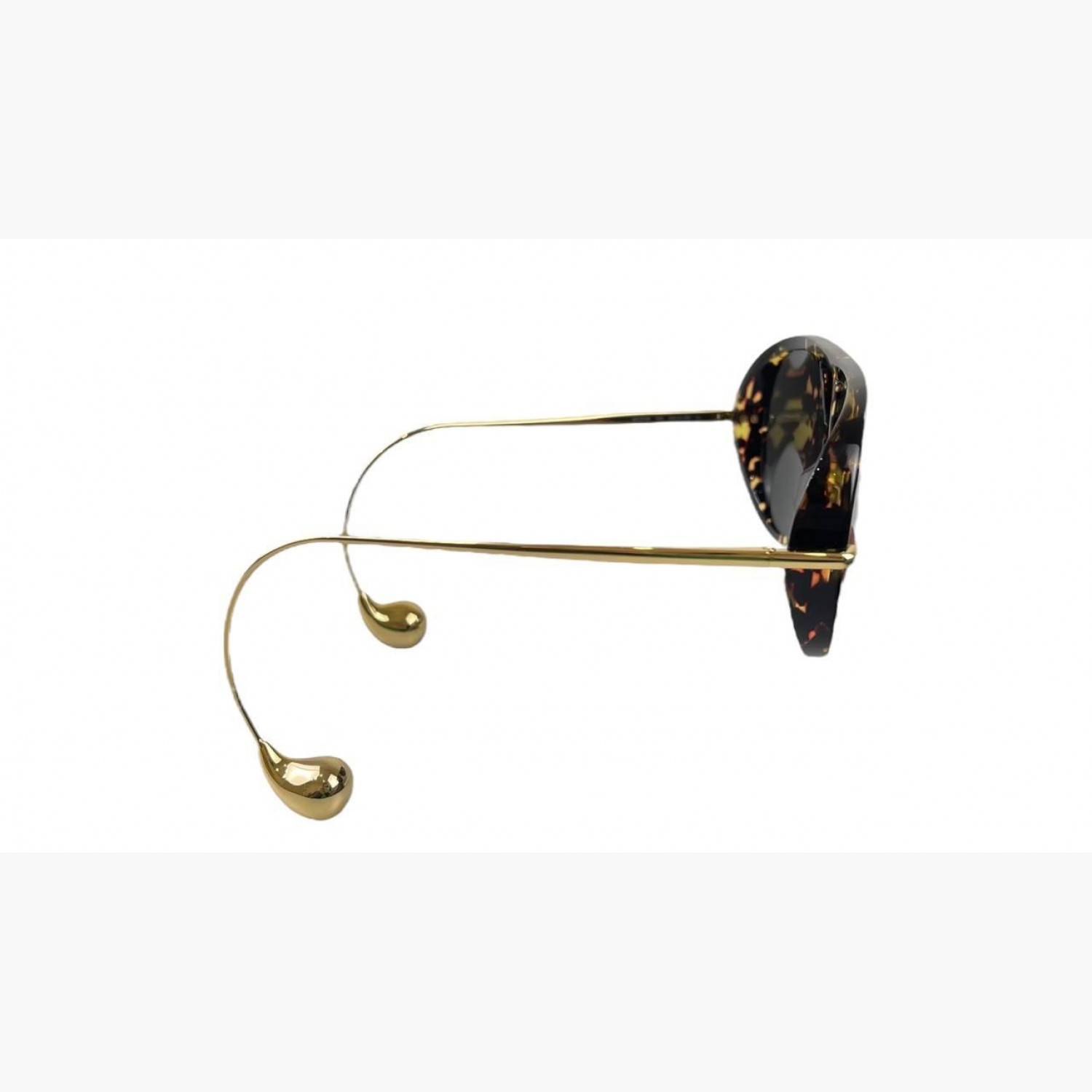 Aviator-style sunglasses with metal temples and teardrop-shaped lenses. Comes with a branded case and a cleaning cloth. In excellent condition, with no wear marks.