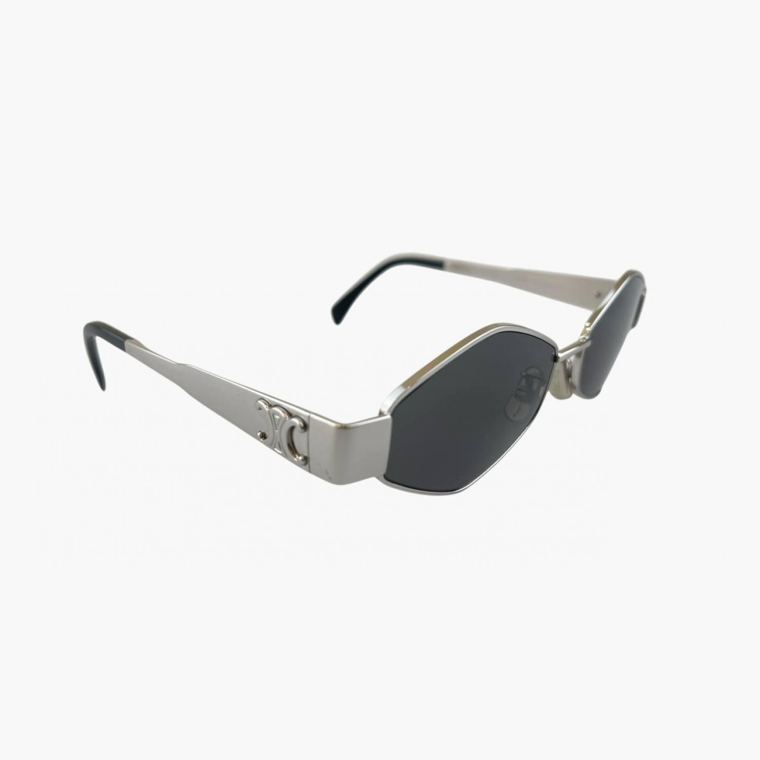 Sunglasses with a metal frame. Comes with a brown leather pouch and a microfiber cloth. In excellent condition, without wear marks.
