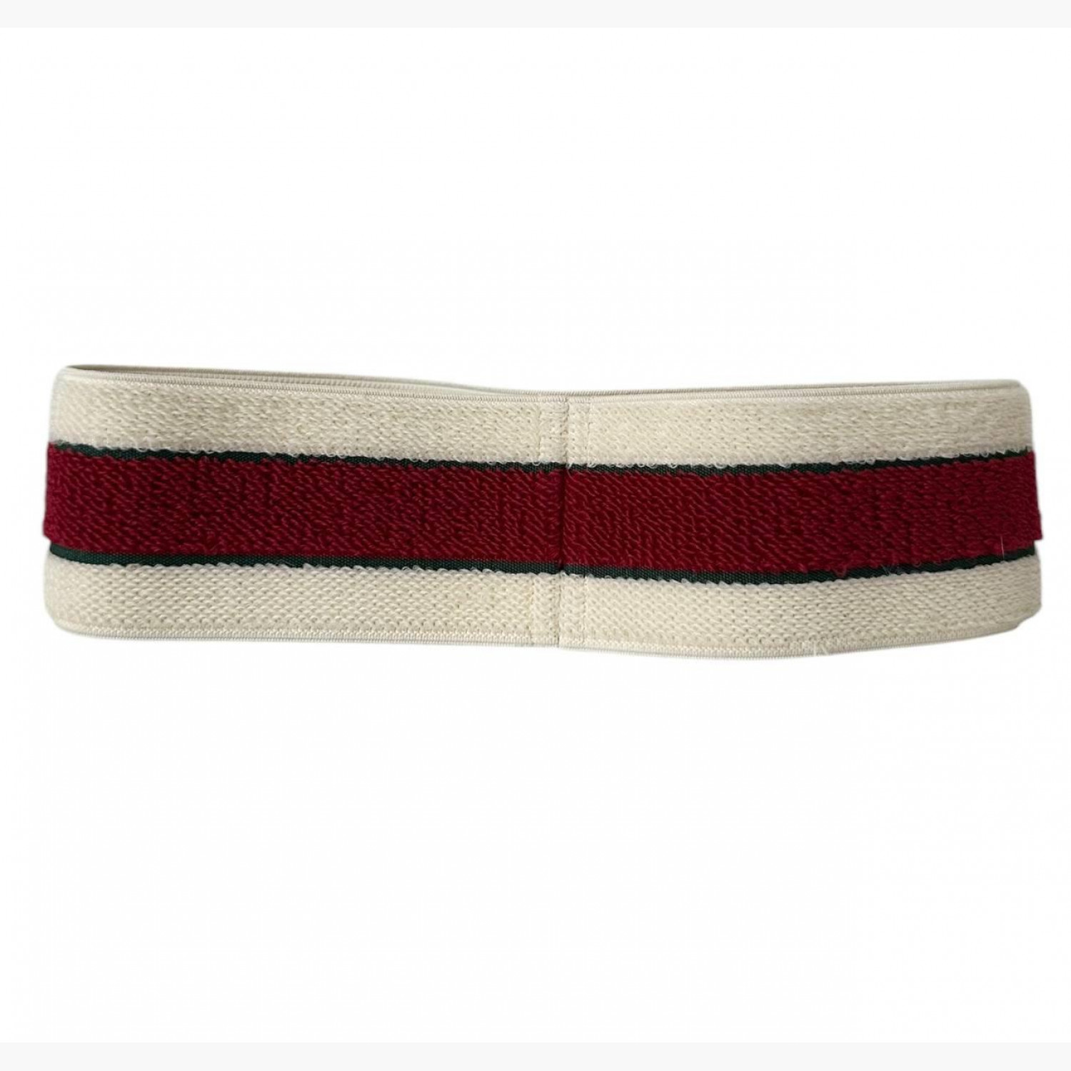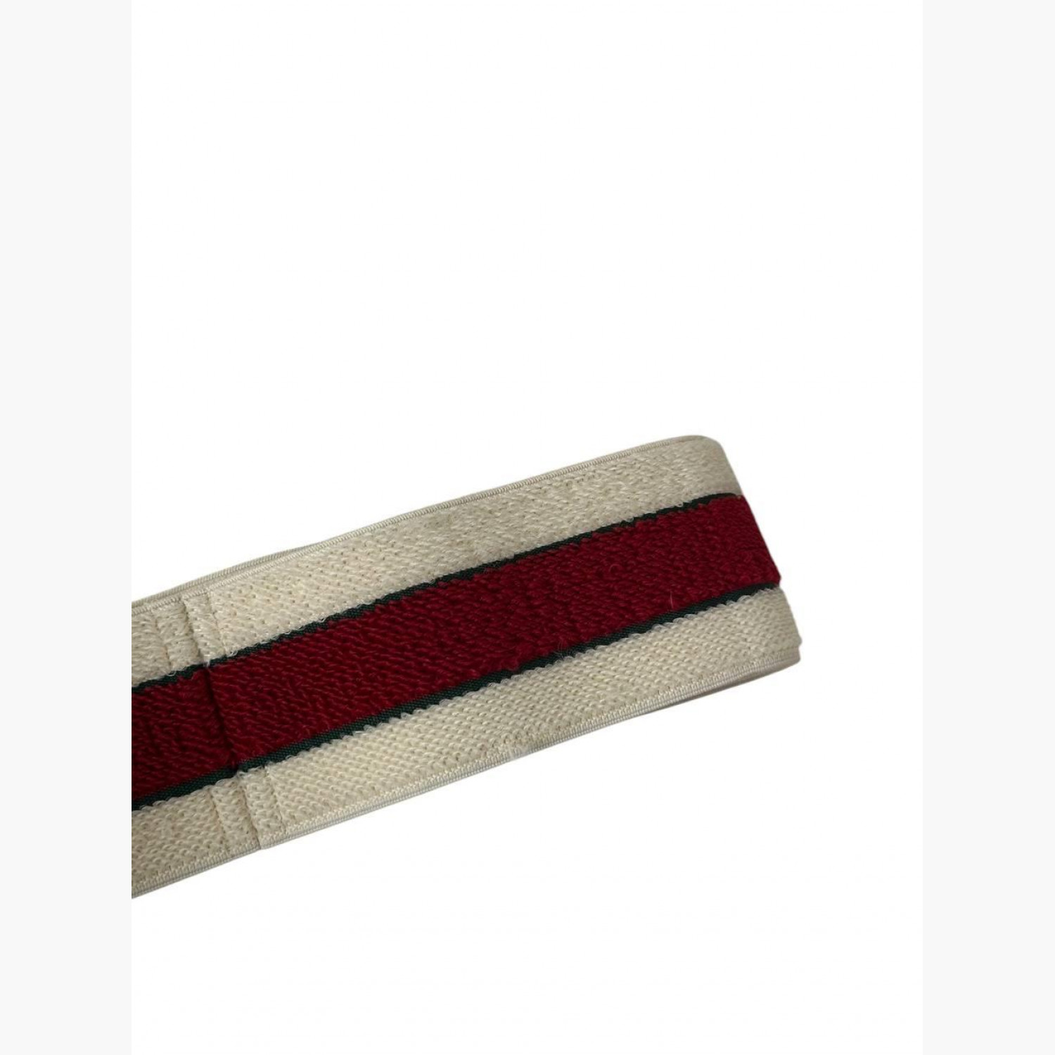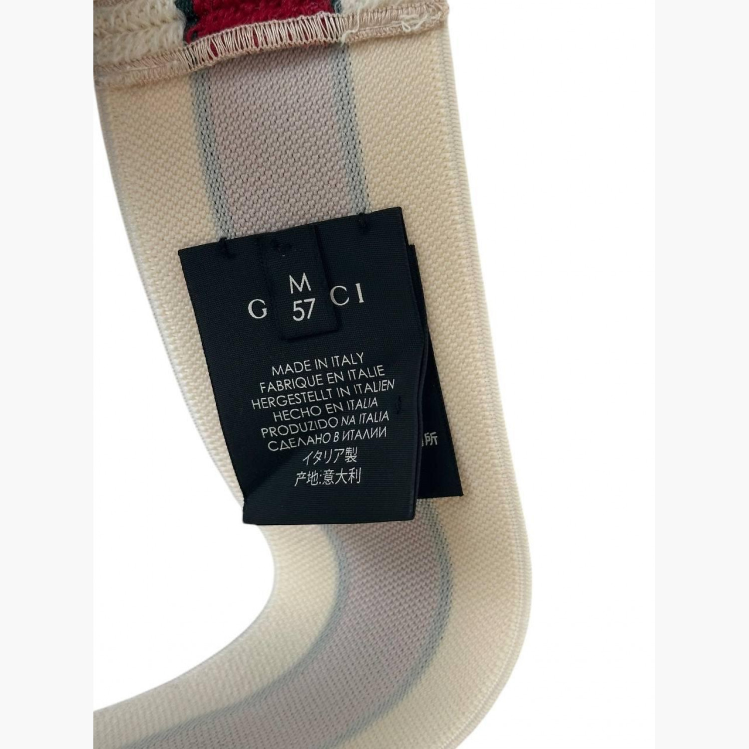 Light colored headband with logo. In perfect condition, minor wear marks.