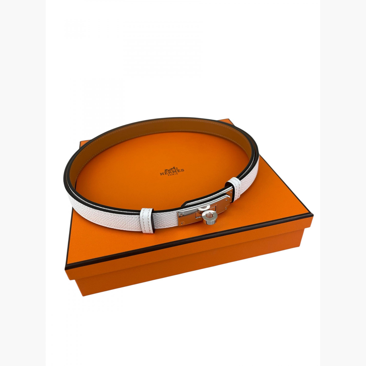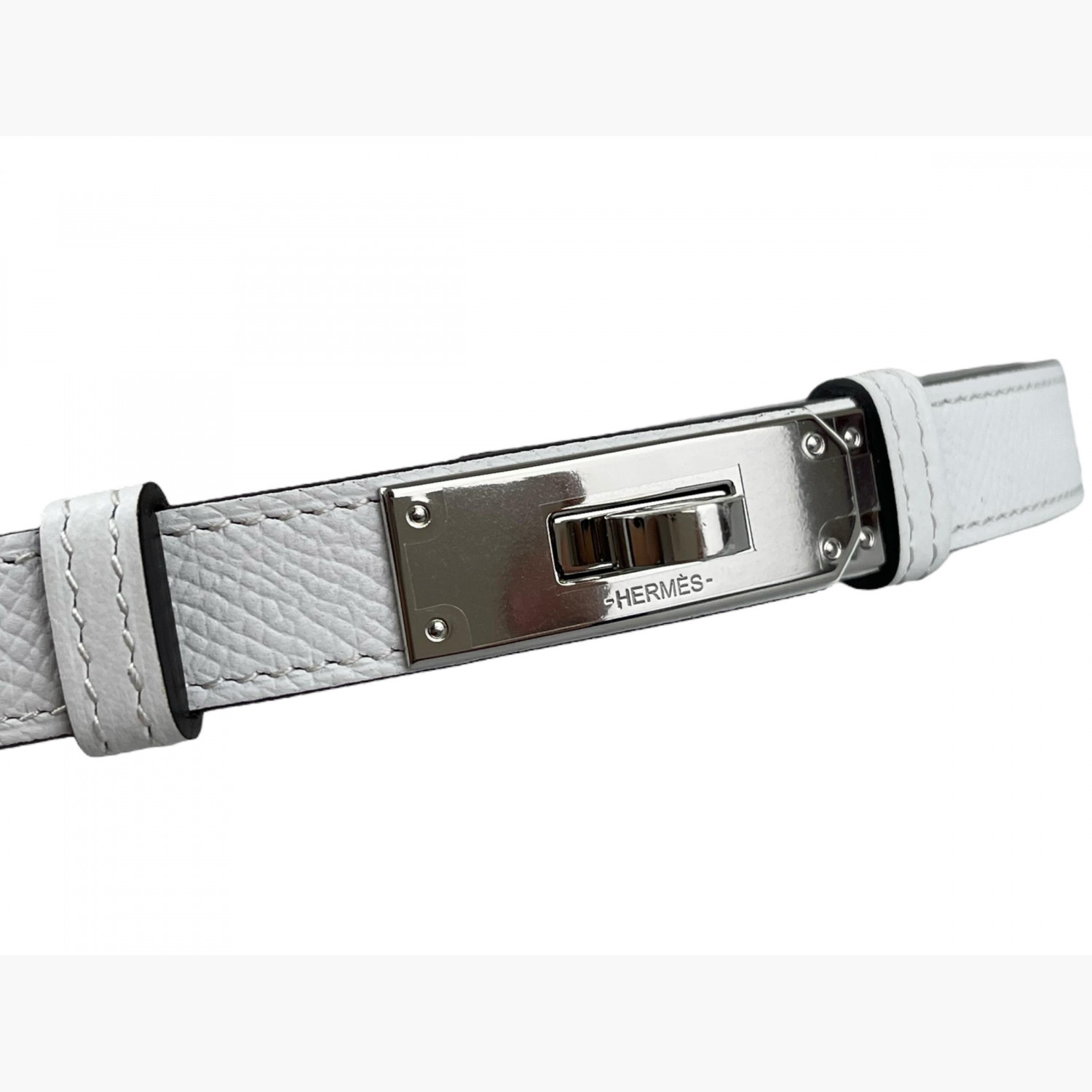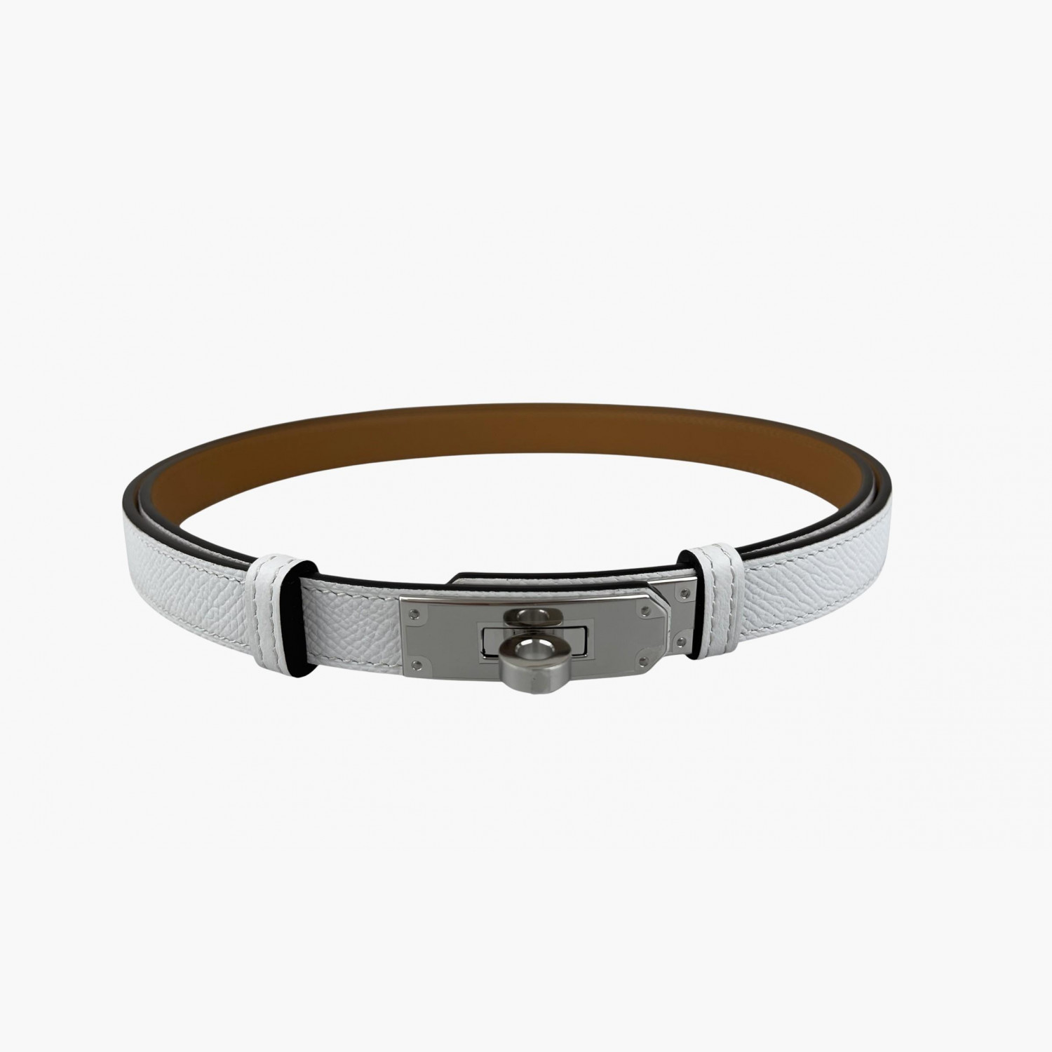 White Kelly leather belt with silver-tone hardware. Absolutely new condition.