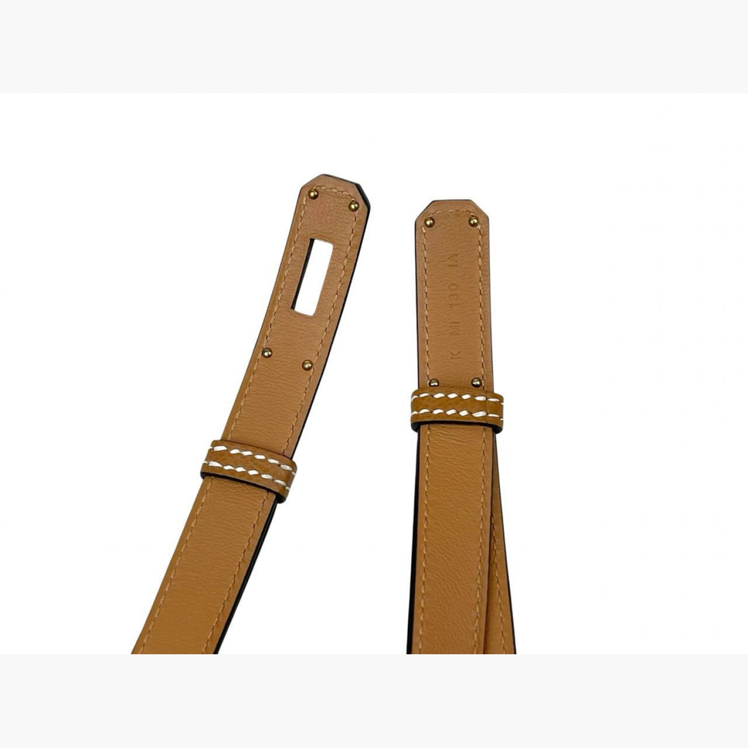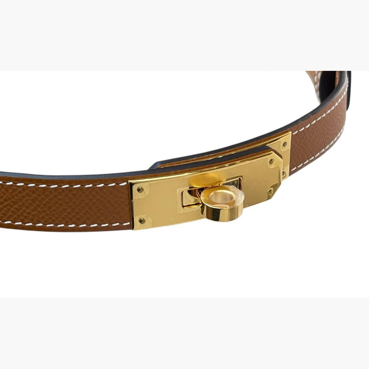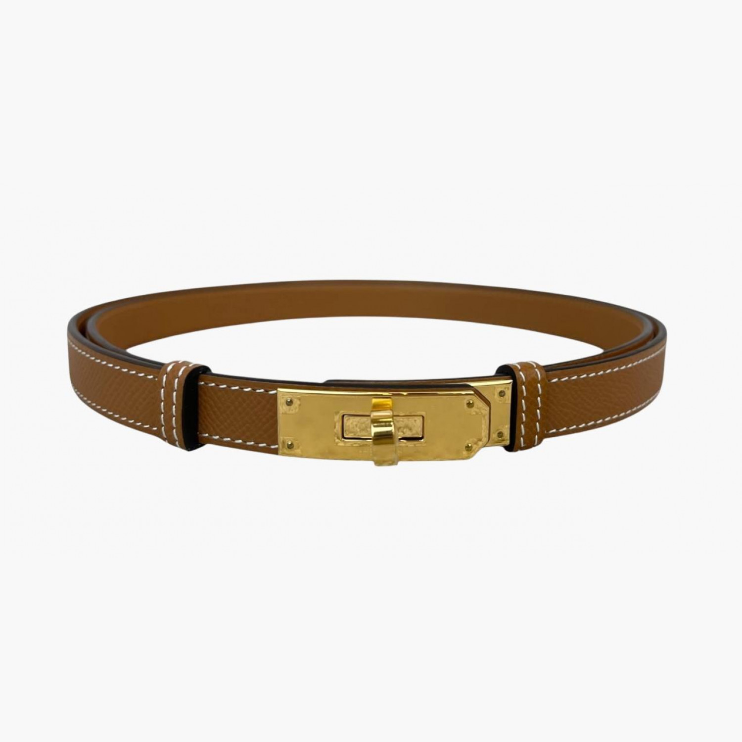 Brown leather belt with gold-tone metal hardware, adjustable size. Absolutely new.