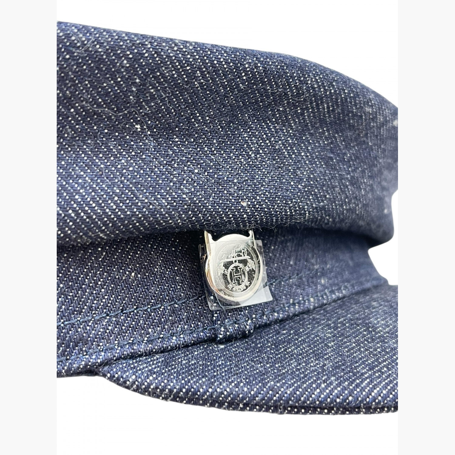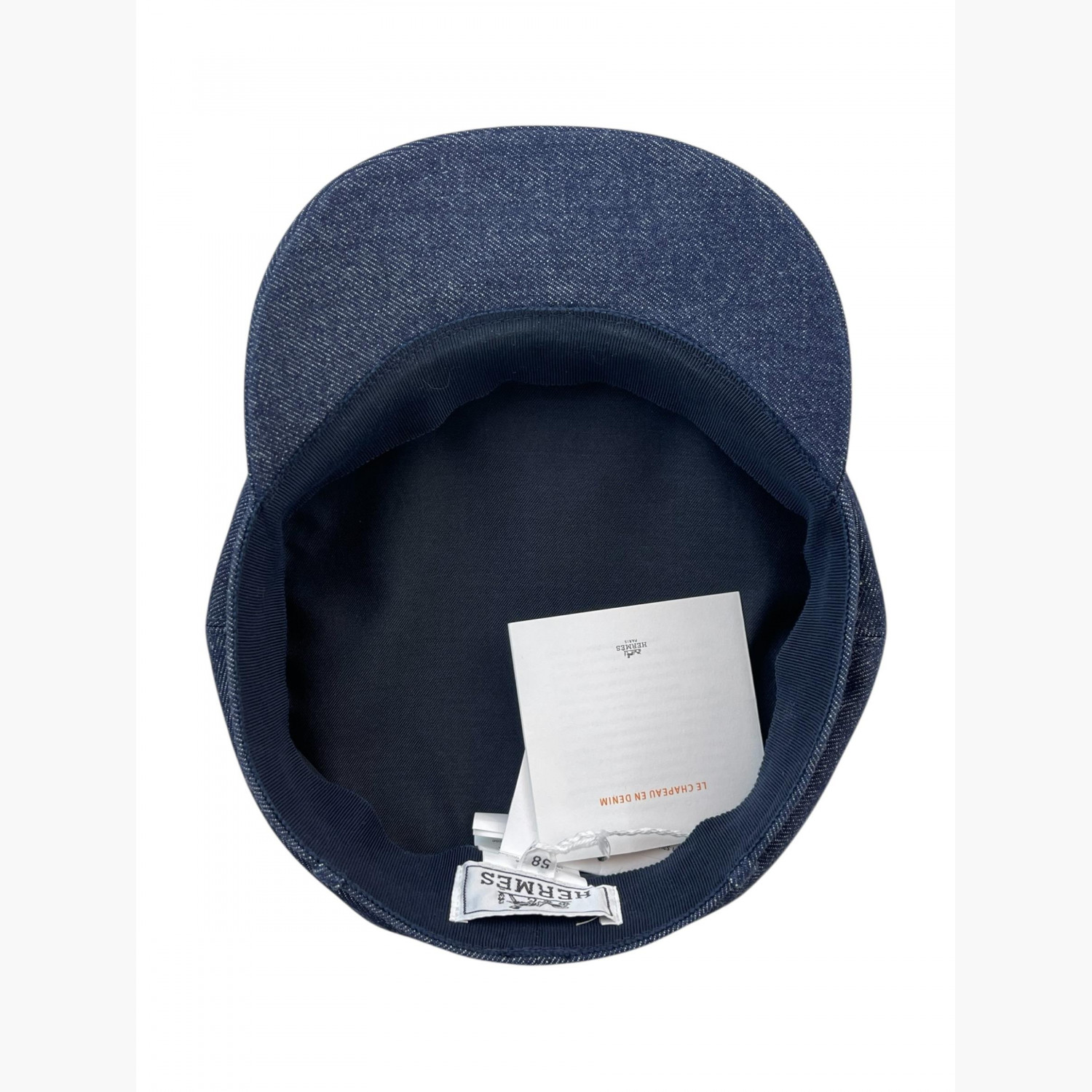 Blue denim cap.Composition: main material — 100% cotton; lining — 54% cotton, 46% silk; inner trim — 56% cotton, 44% viscose.Absolutely new, with tags.
