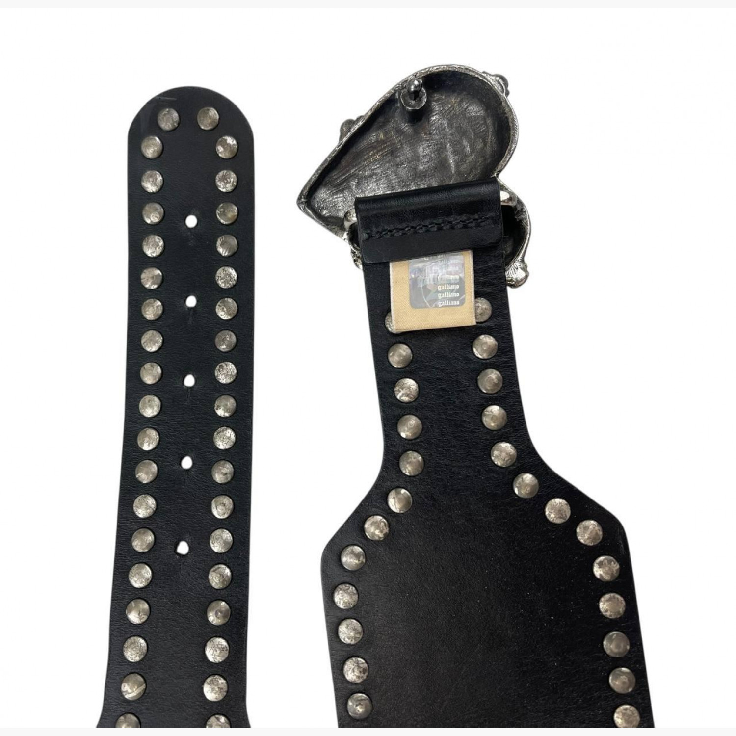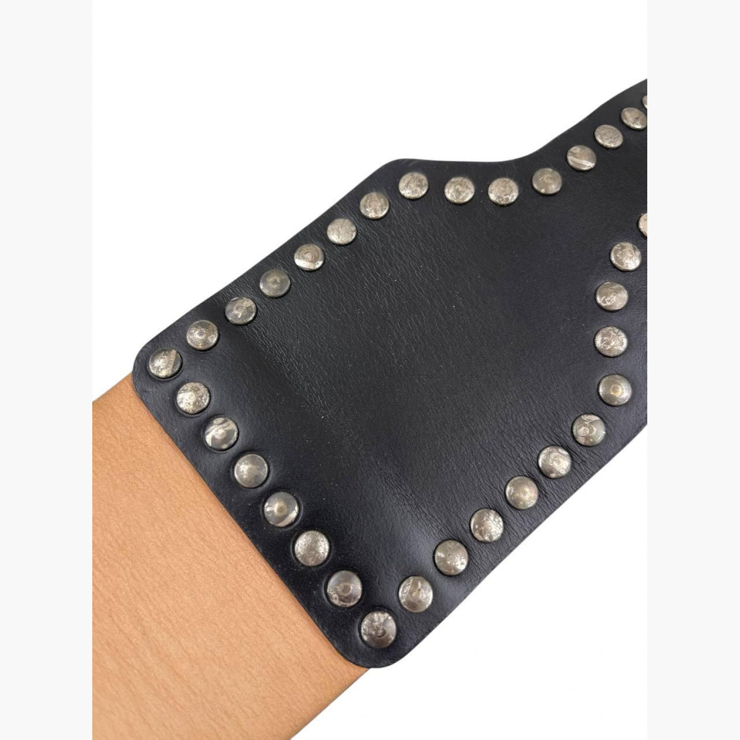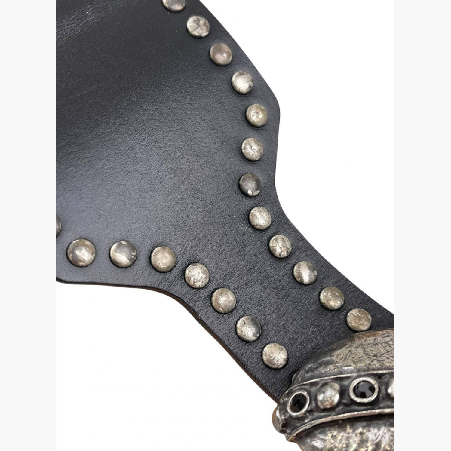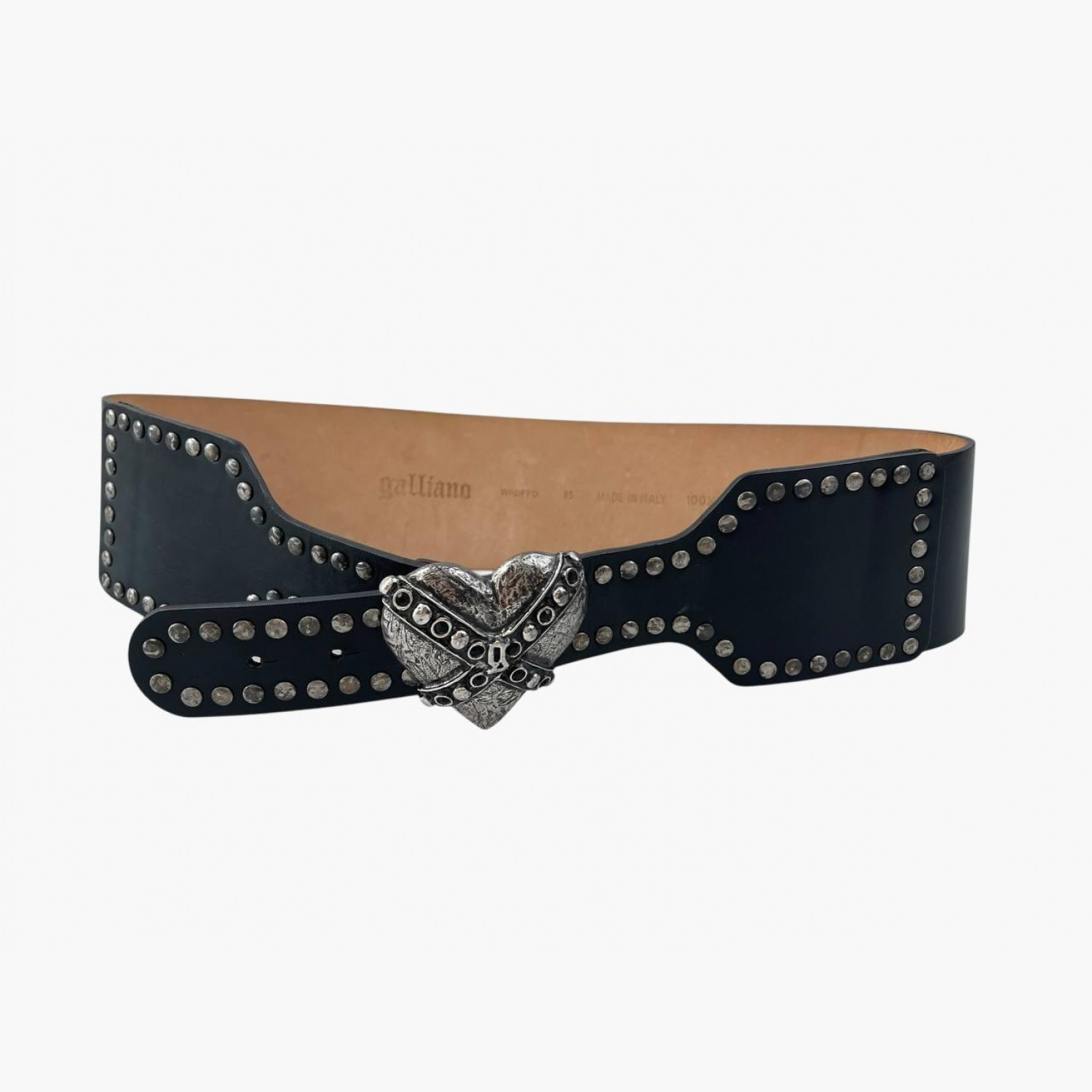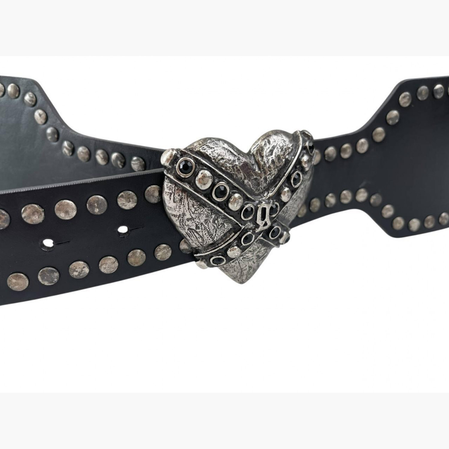 Wide black leather belt with studs, heart-shaped buckle. In good condition, minor wear marks.