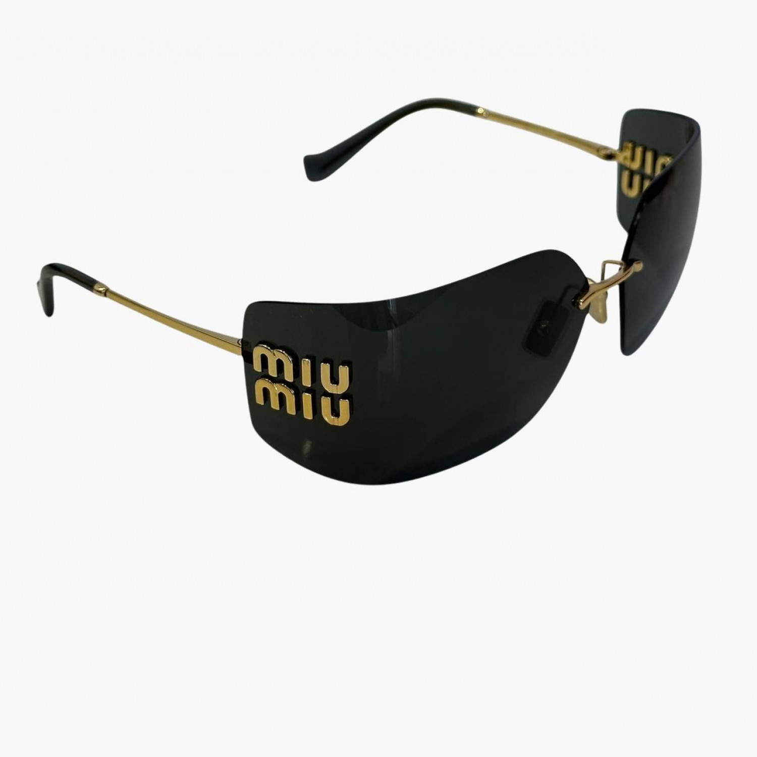Sunglasses with gold colored temples. In perfect condition, with wear marks.