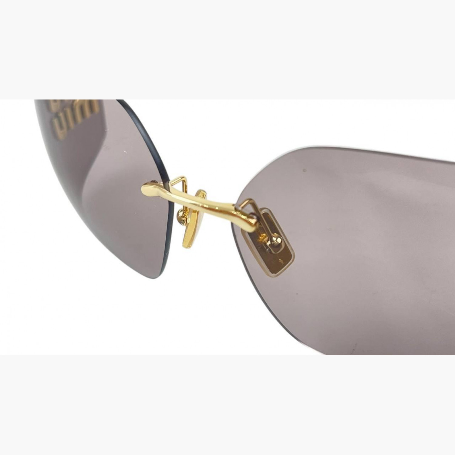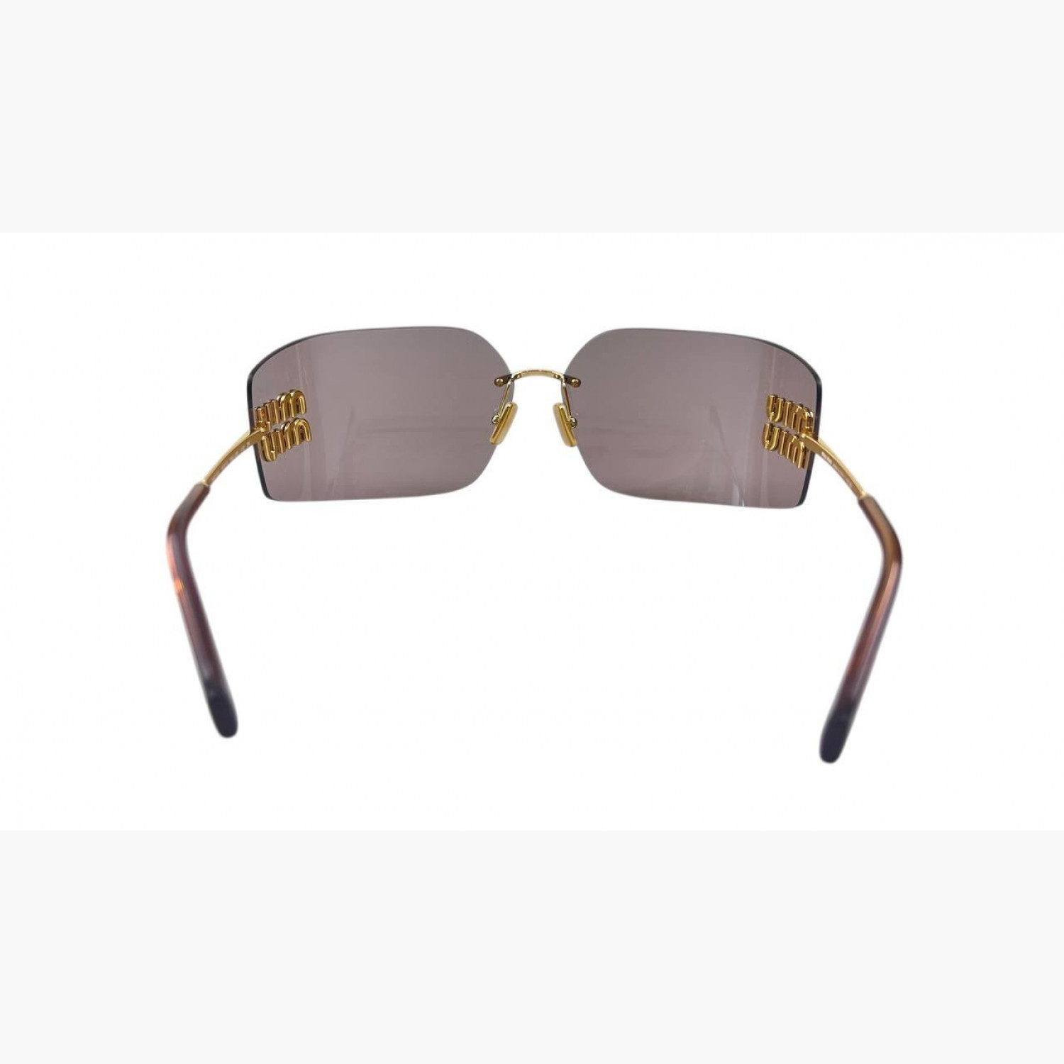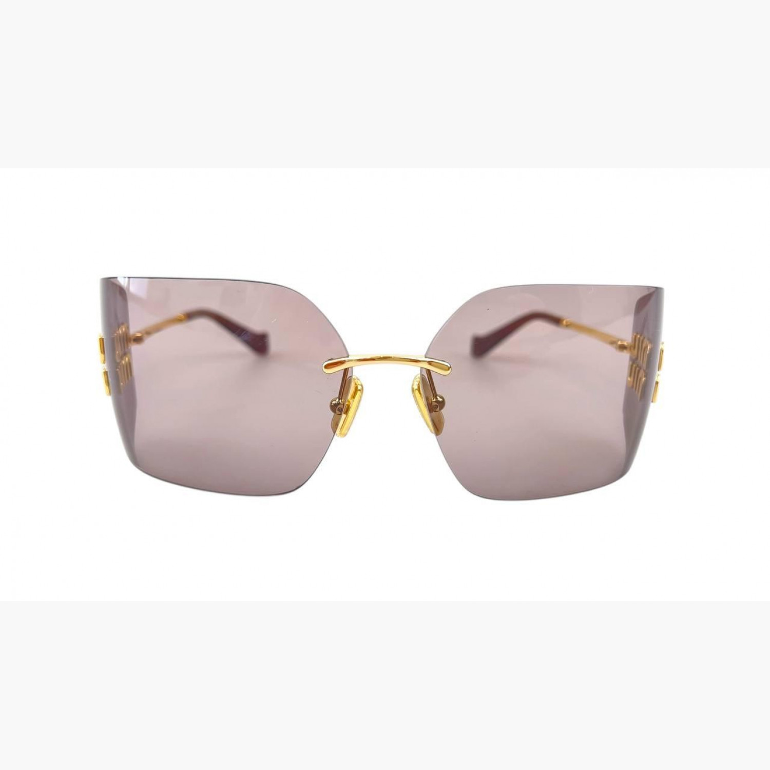 Purple rimless sunglasses with gold temples and logo on the lenses. Comes with a microfiber cloth. In excellent condition, no wear marks.
