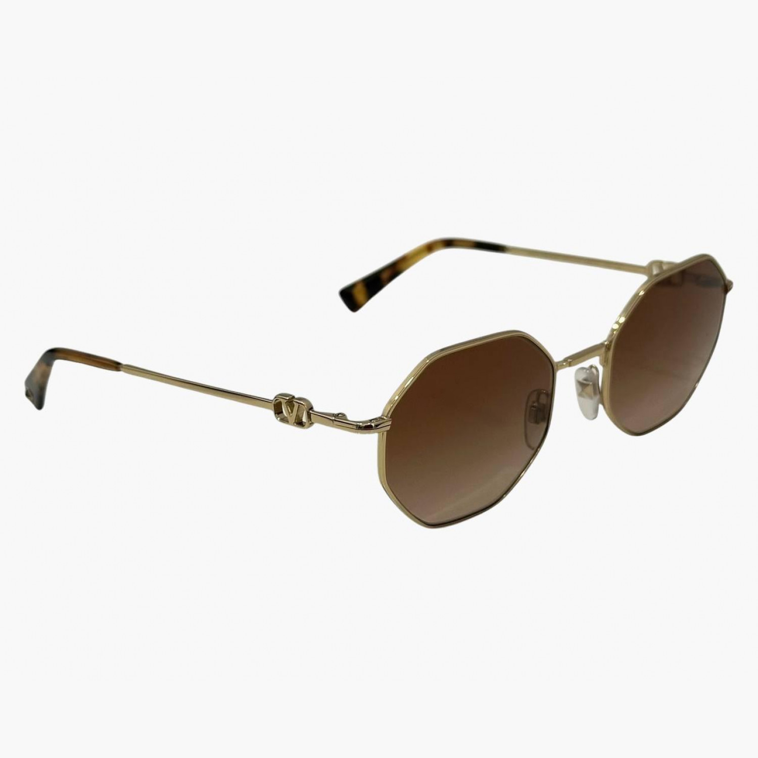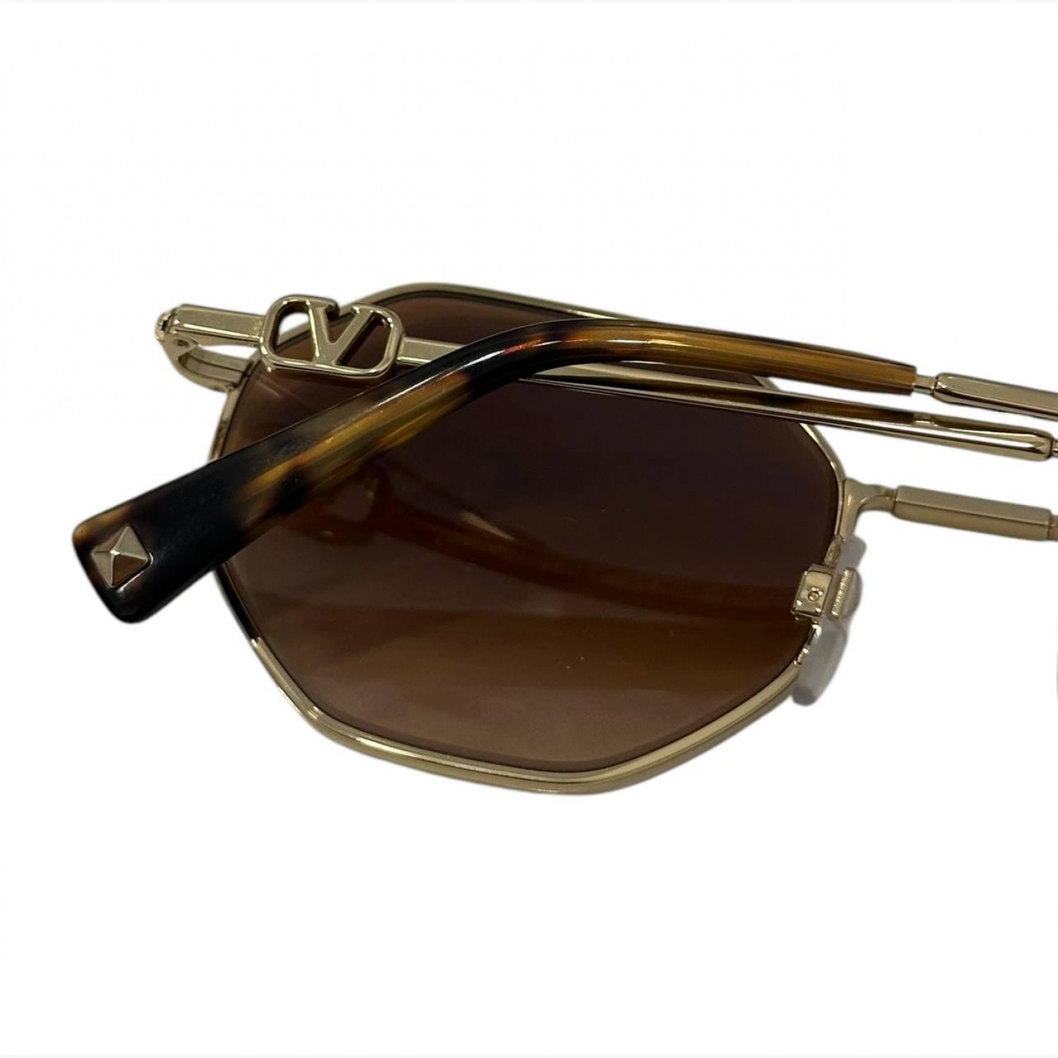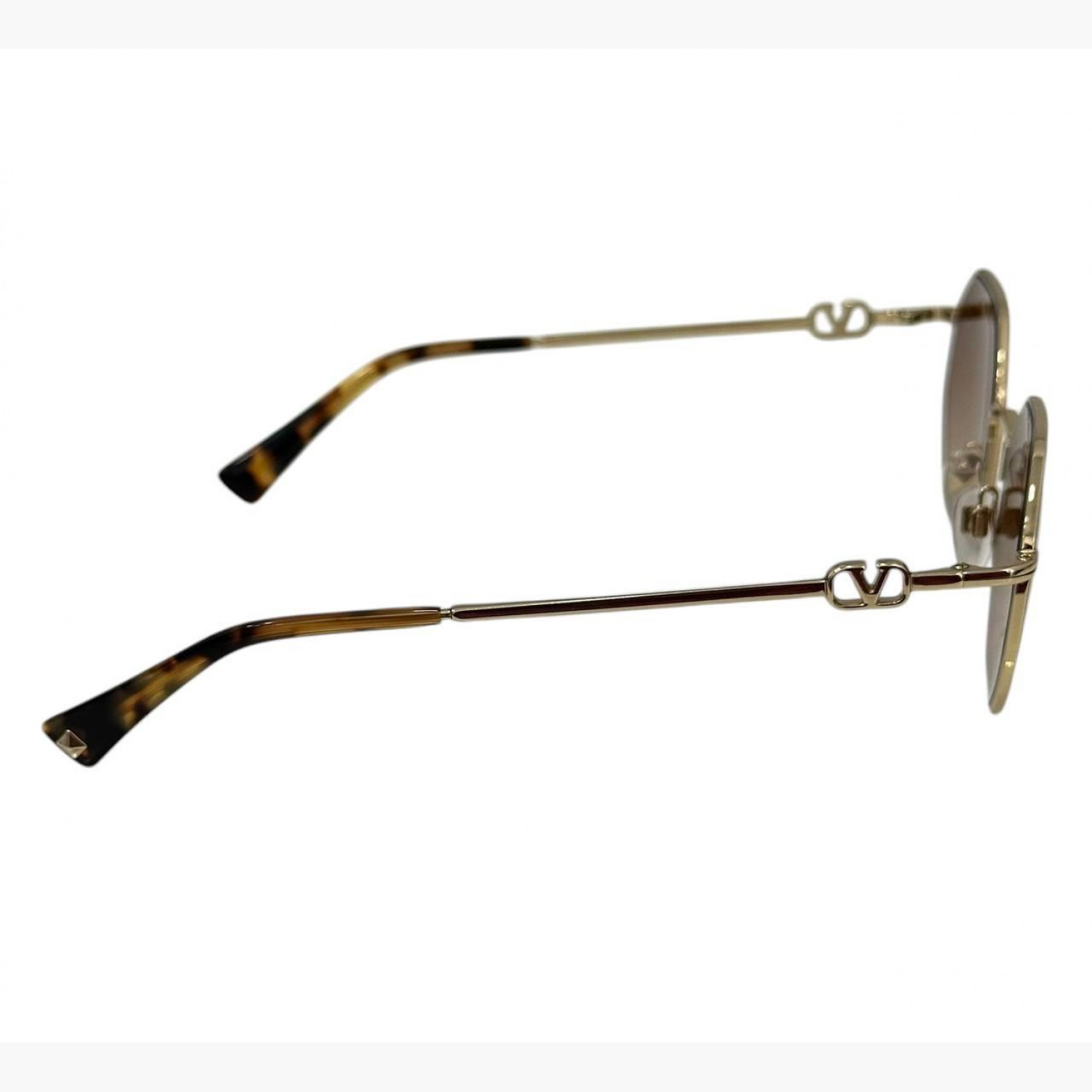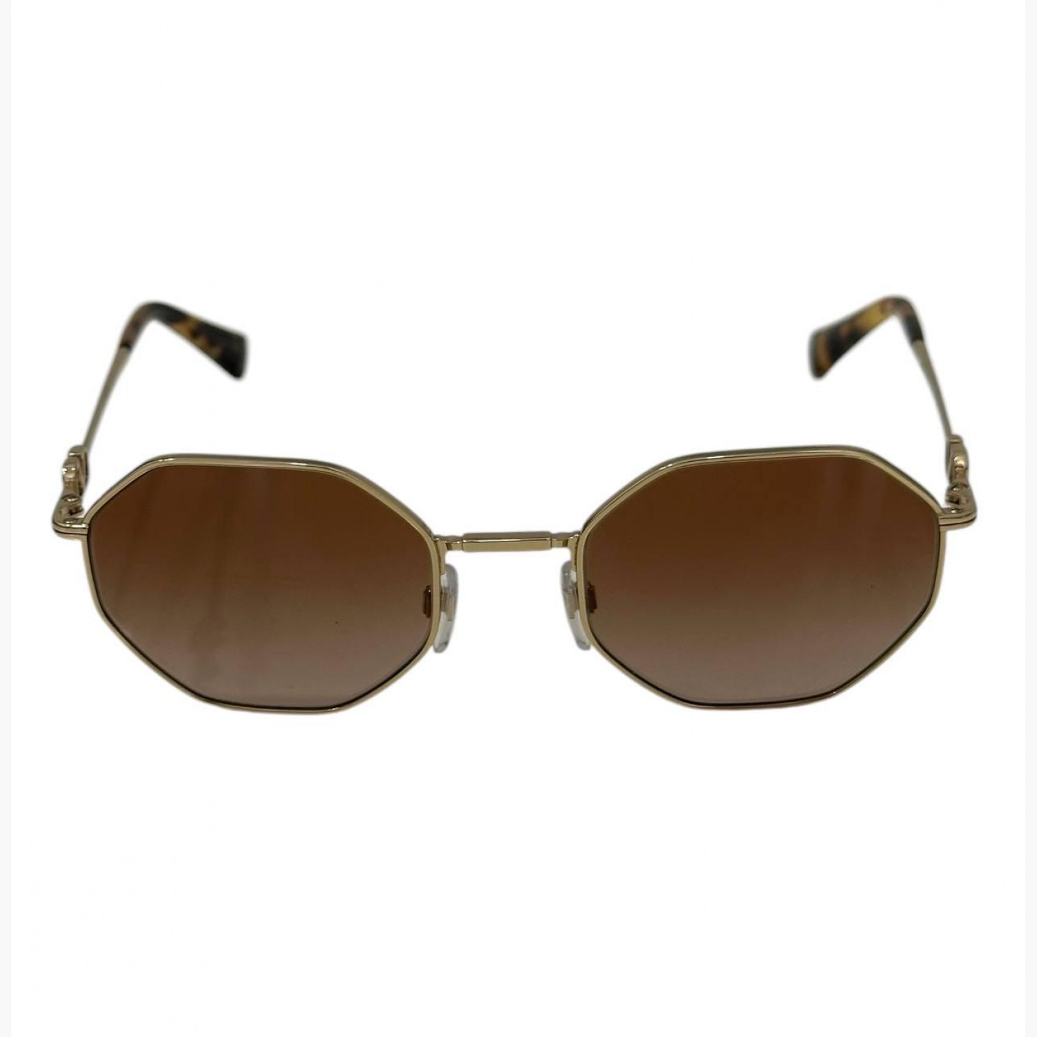 Gold colored sunglasses with leopard shaped temples. In perfect condition, minor wear marks. Includes detachable chain.
