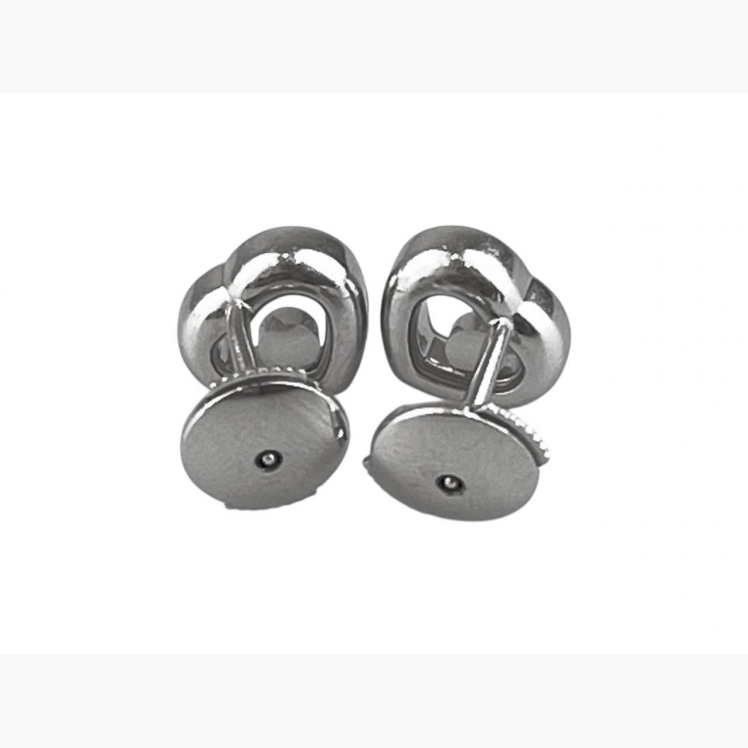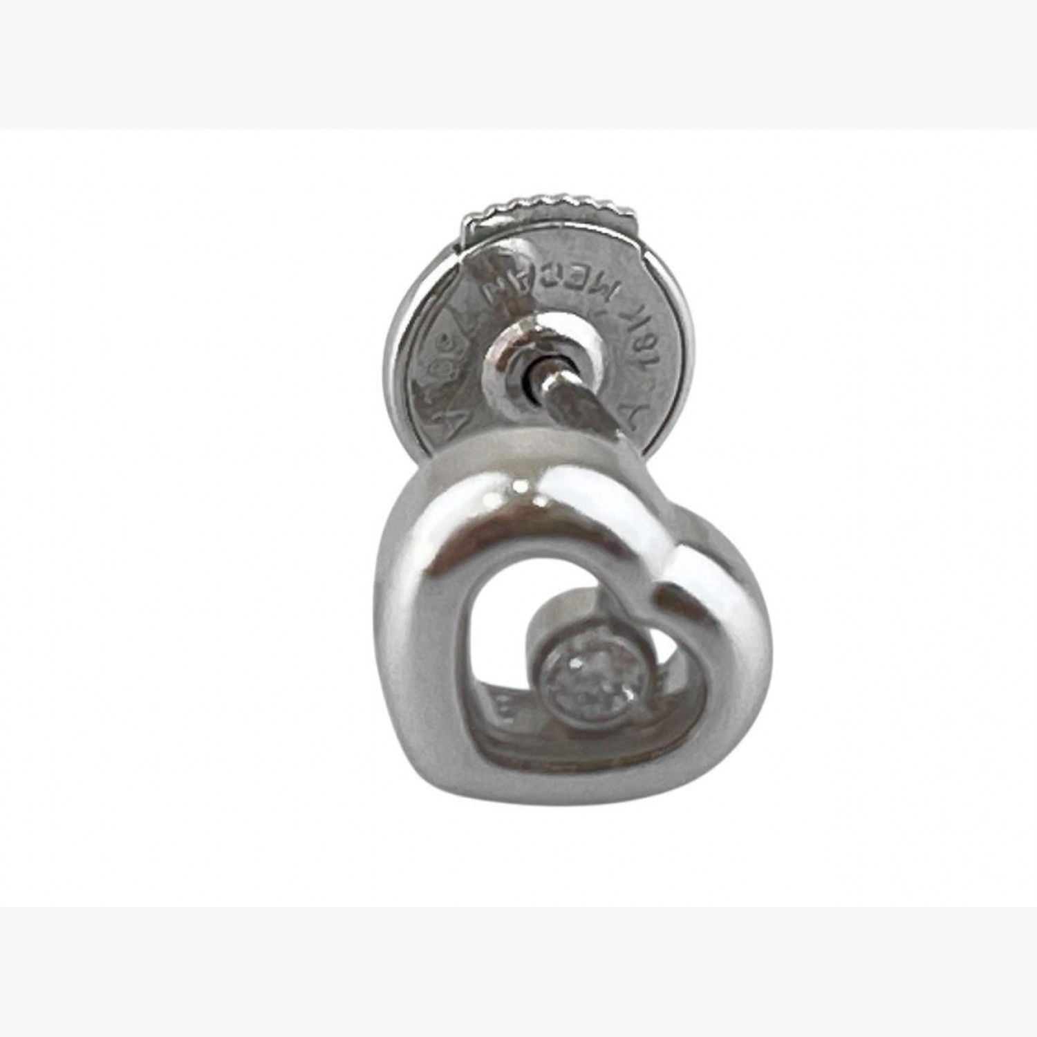Heart-shaped stud earrings with two diamonds, made of white gold. In excellent condition, no significant wear marks.
