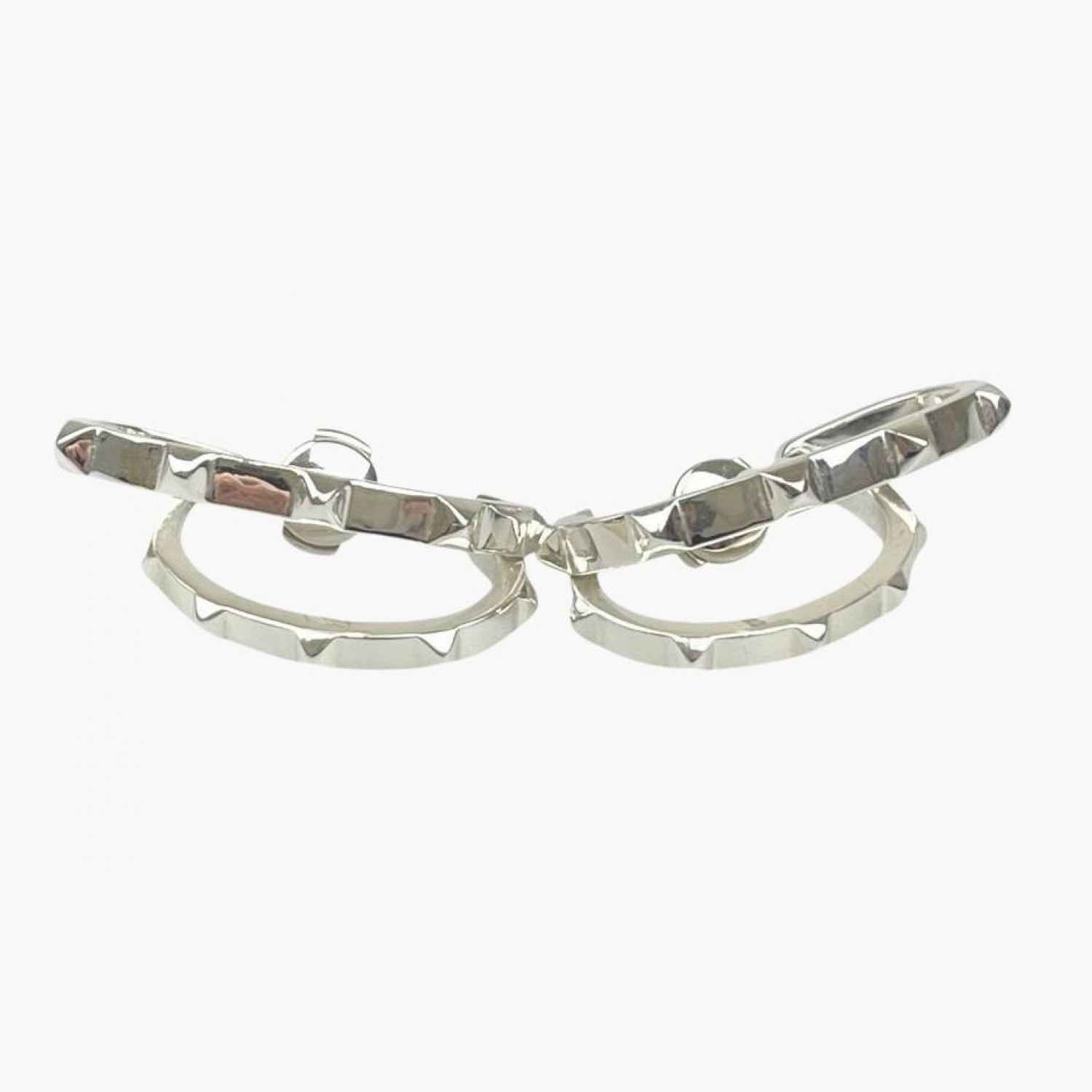 Silver half-sphere earrings with spikes. In excellent condition, with minor wear marks.