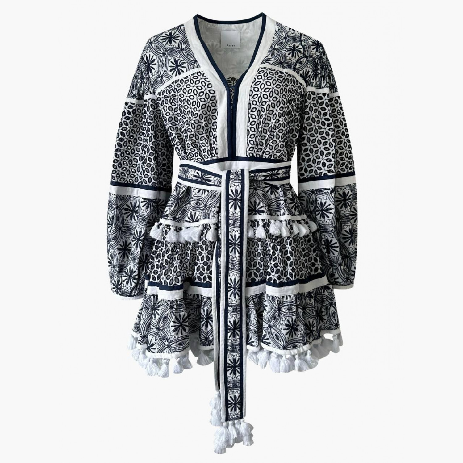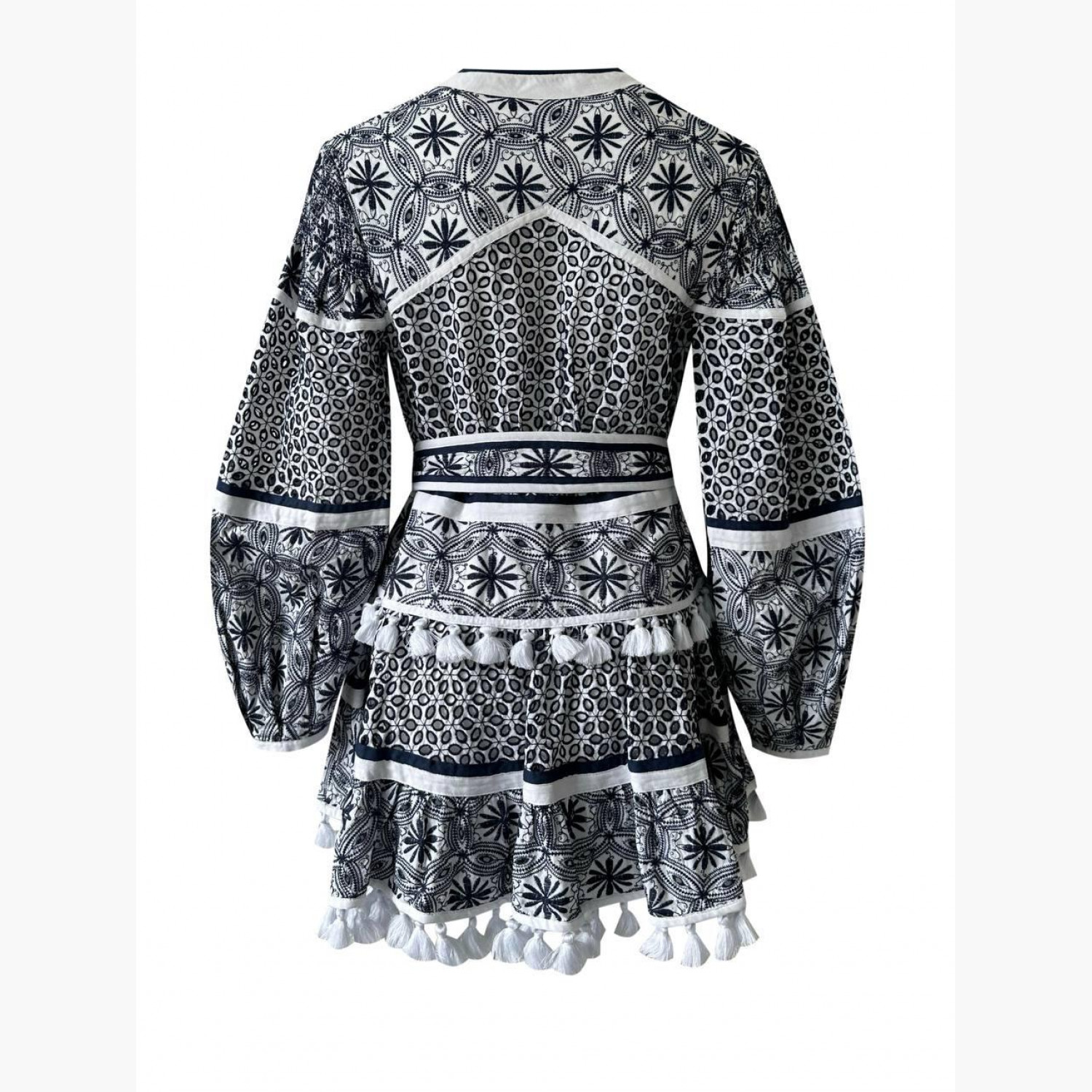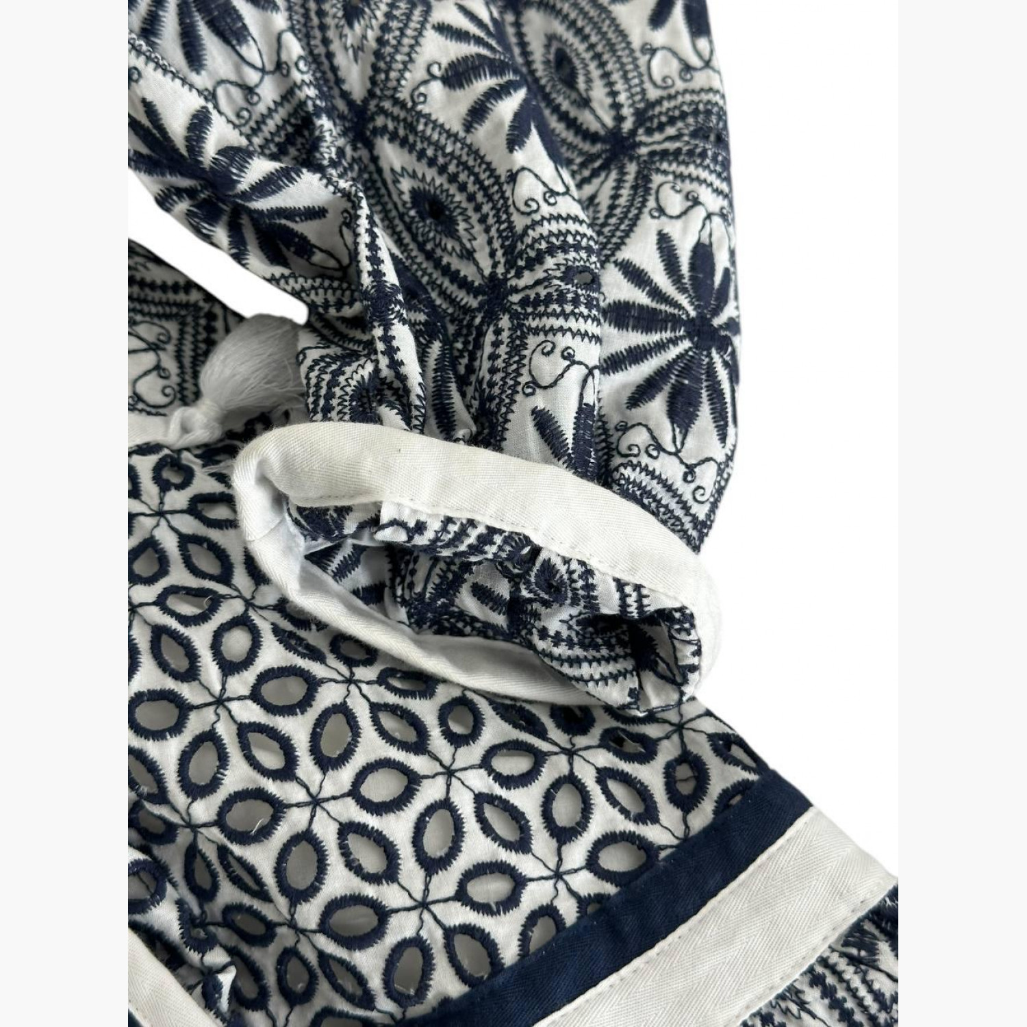 Blue lace dress. In good condition, small stains on the fabric. Composition: 100% cotton.