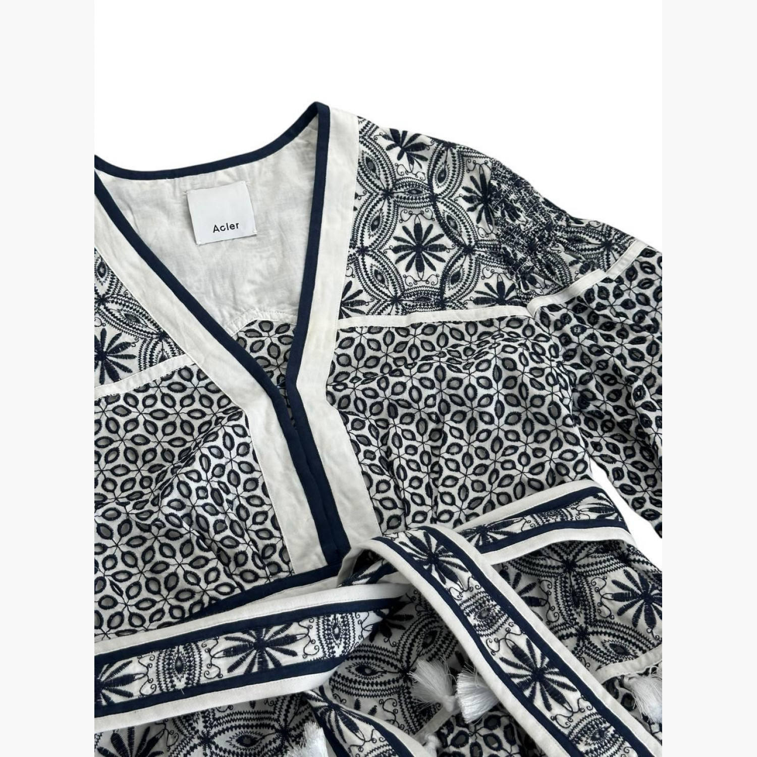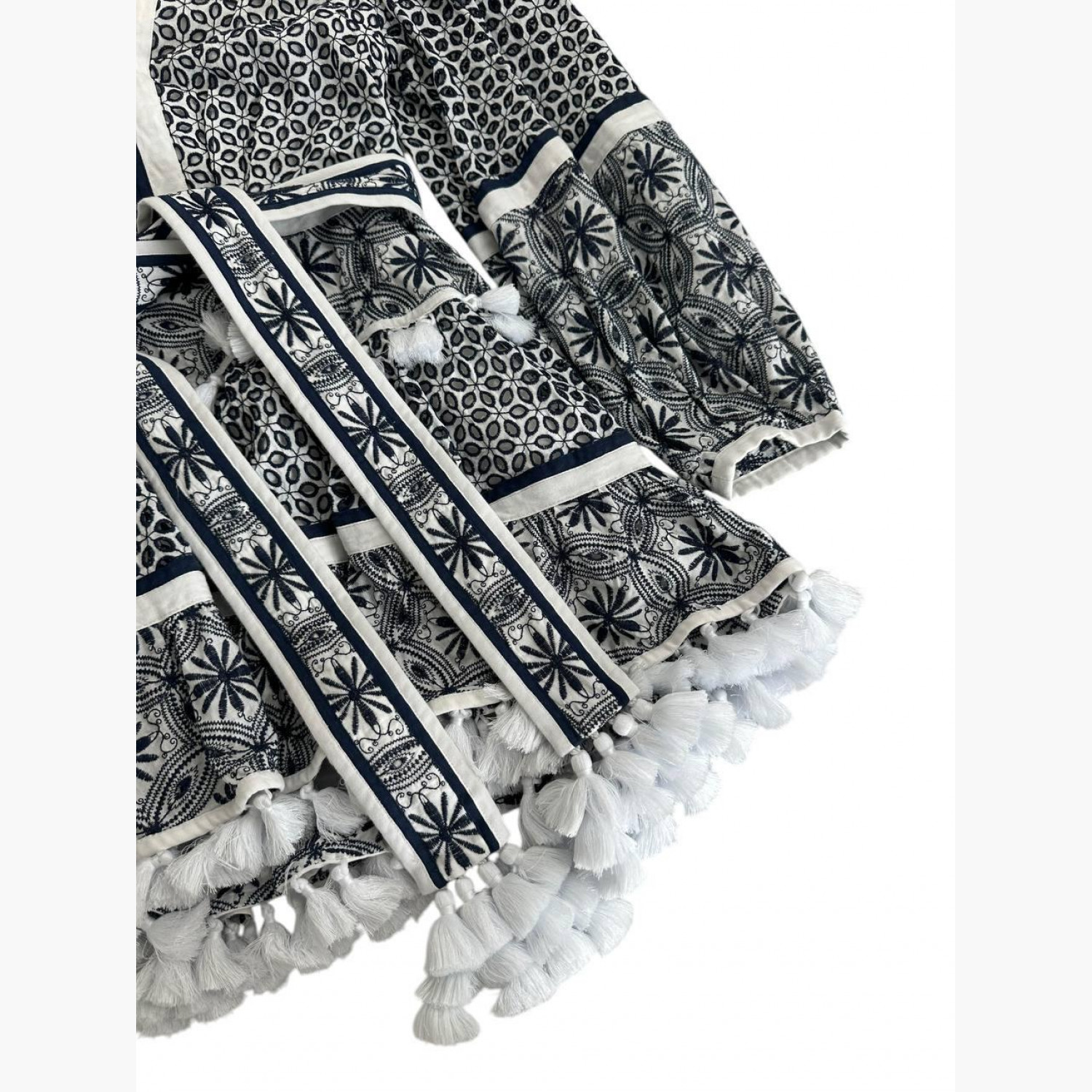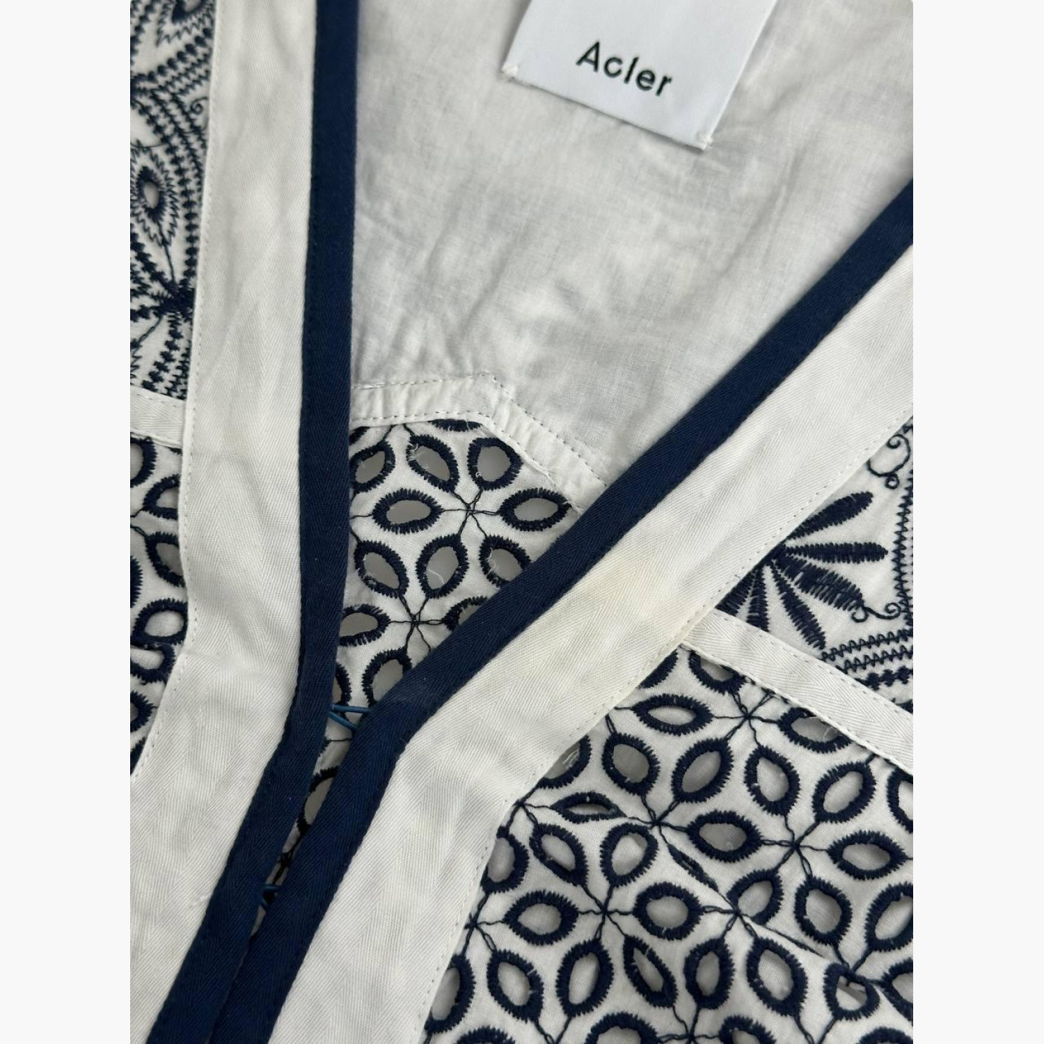 Blue lace dress. In good condition, small stains on the fabric. Composition: 100% cotton.