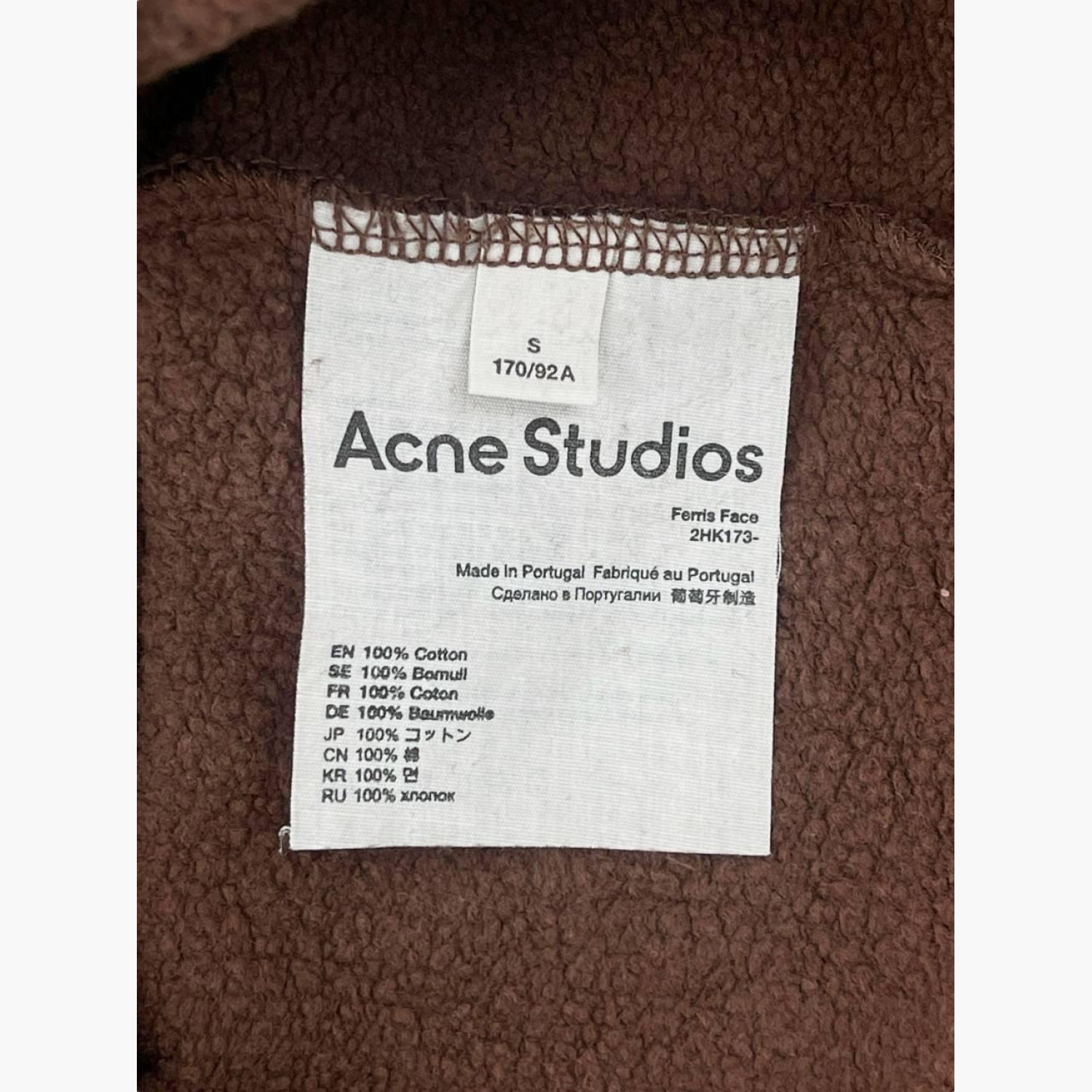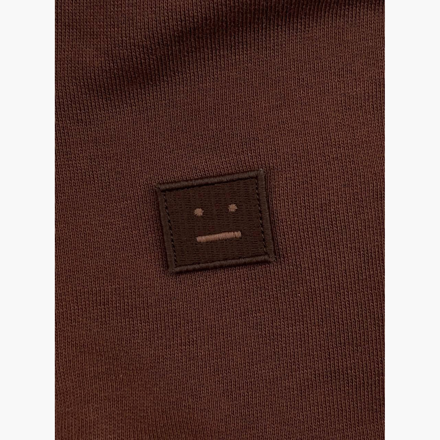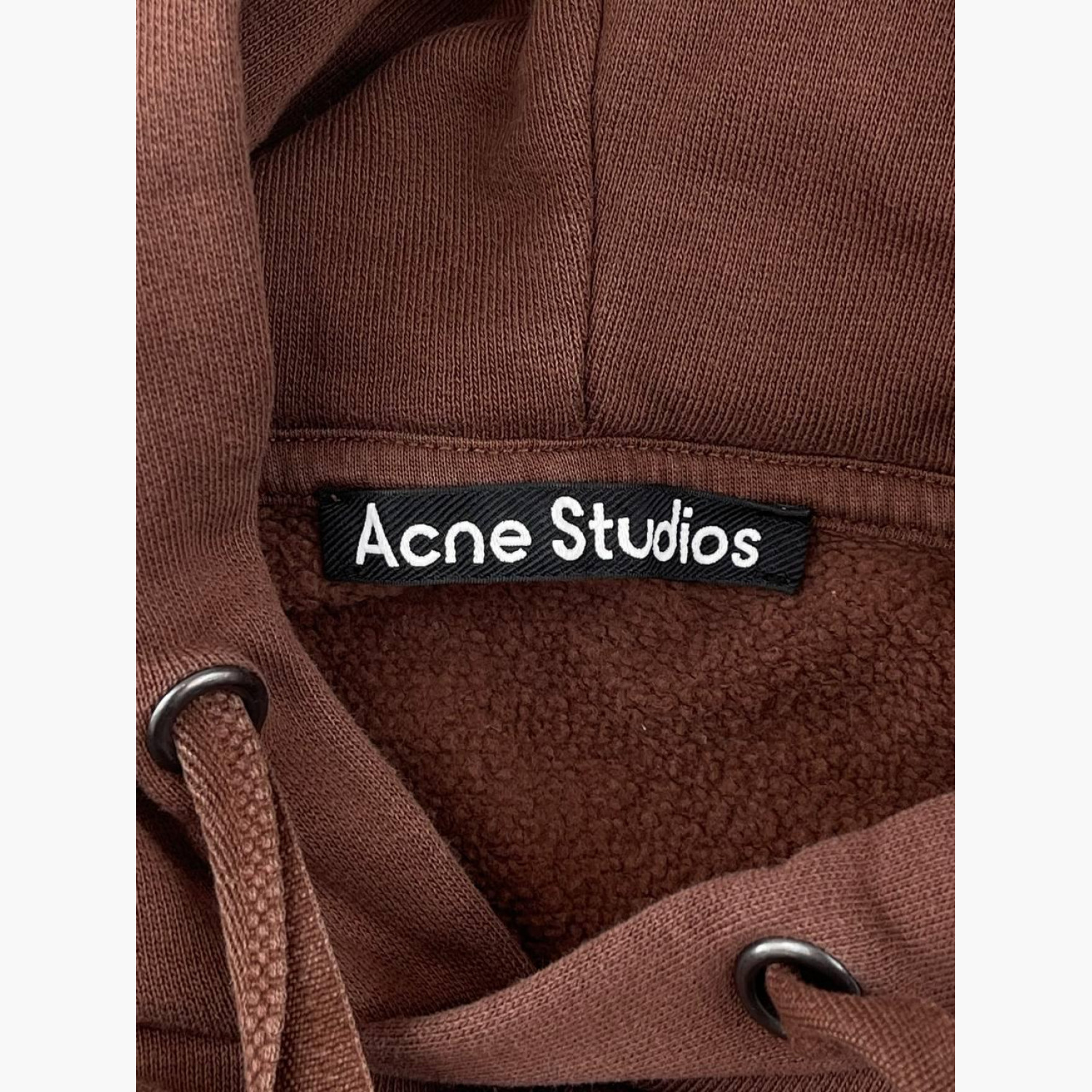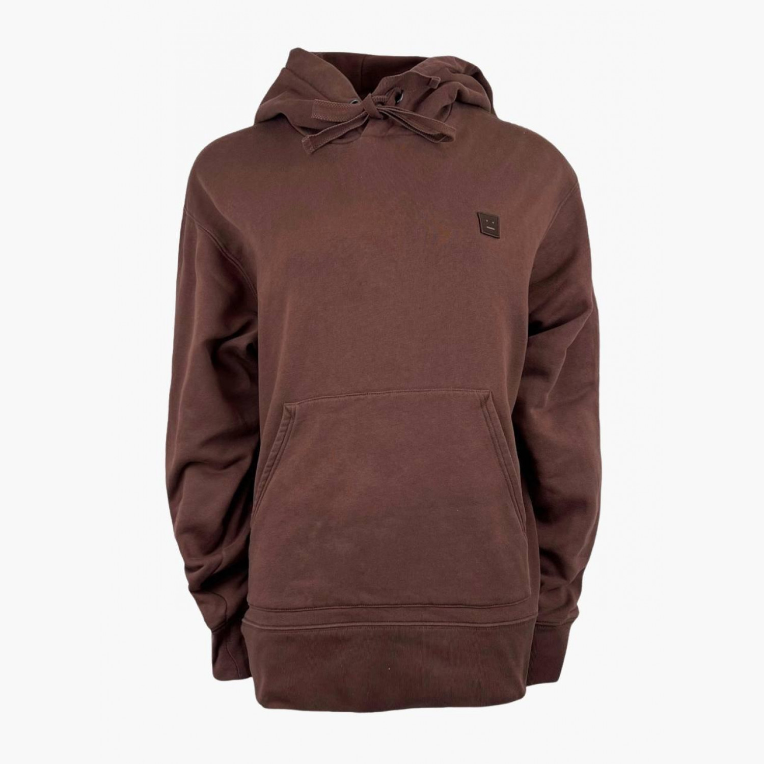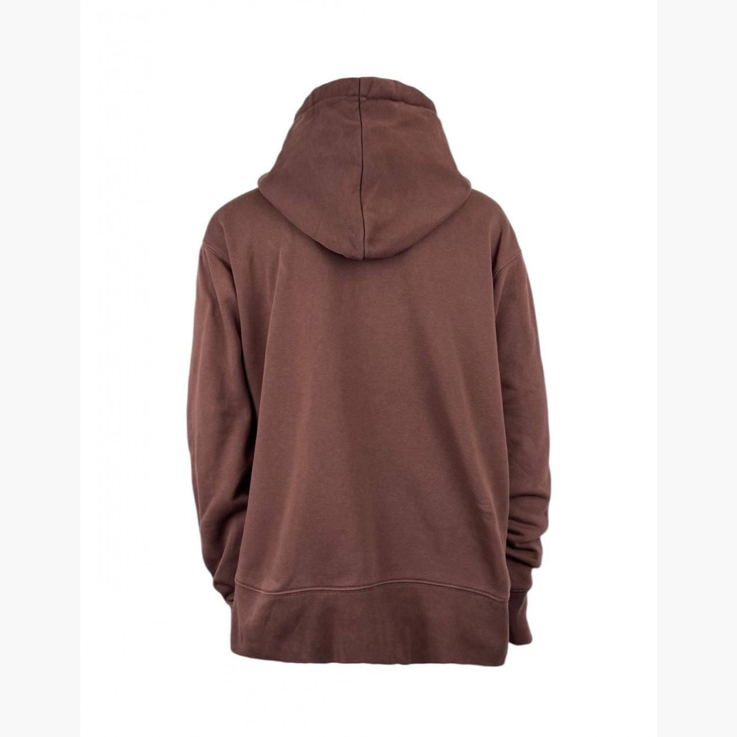 Brown hoodie with a pocket and a small logo on the left chest. In very good condition, with minor wear marks.