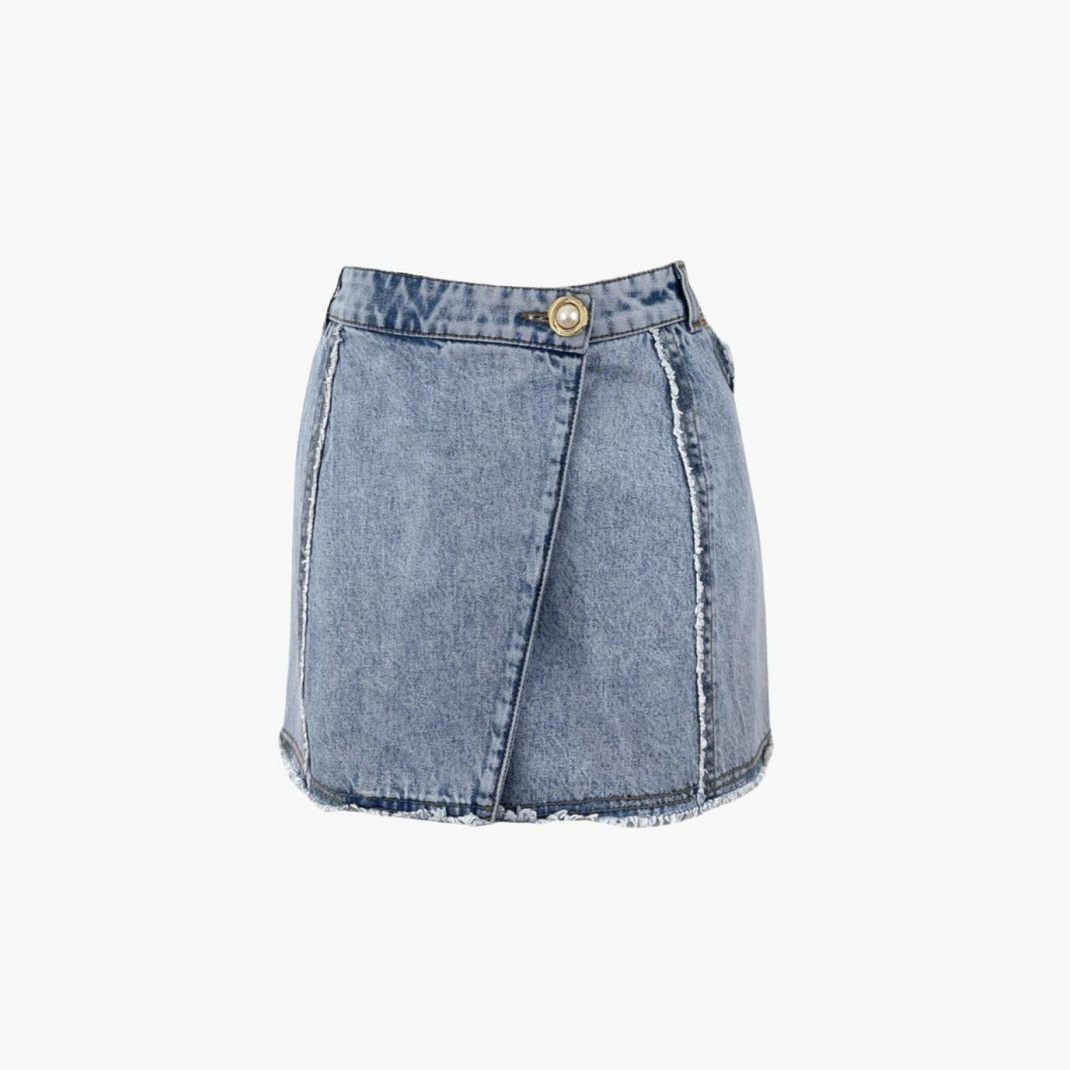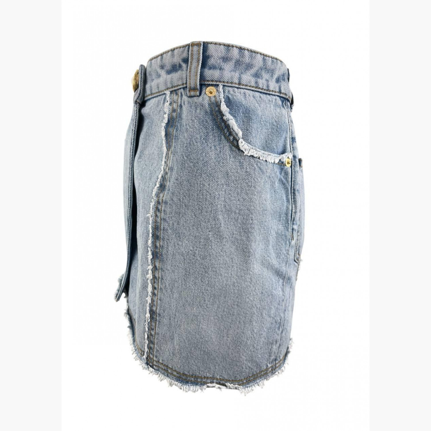 Wrap denim skirt. Composition: 100% cotton; pockets – 65% polyester, 35% cotton. In good condition with minor wear marks.