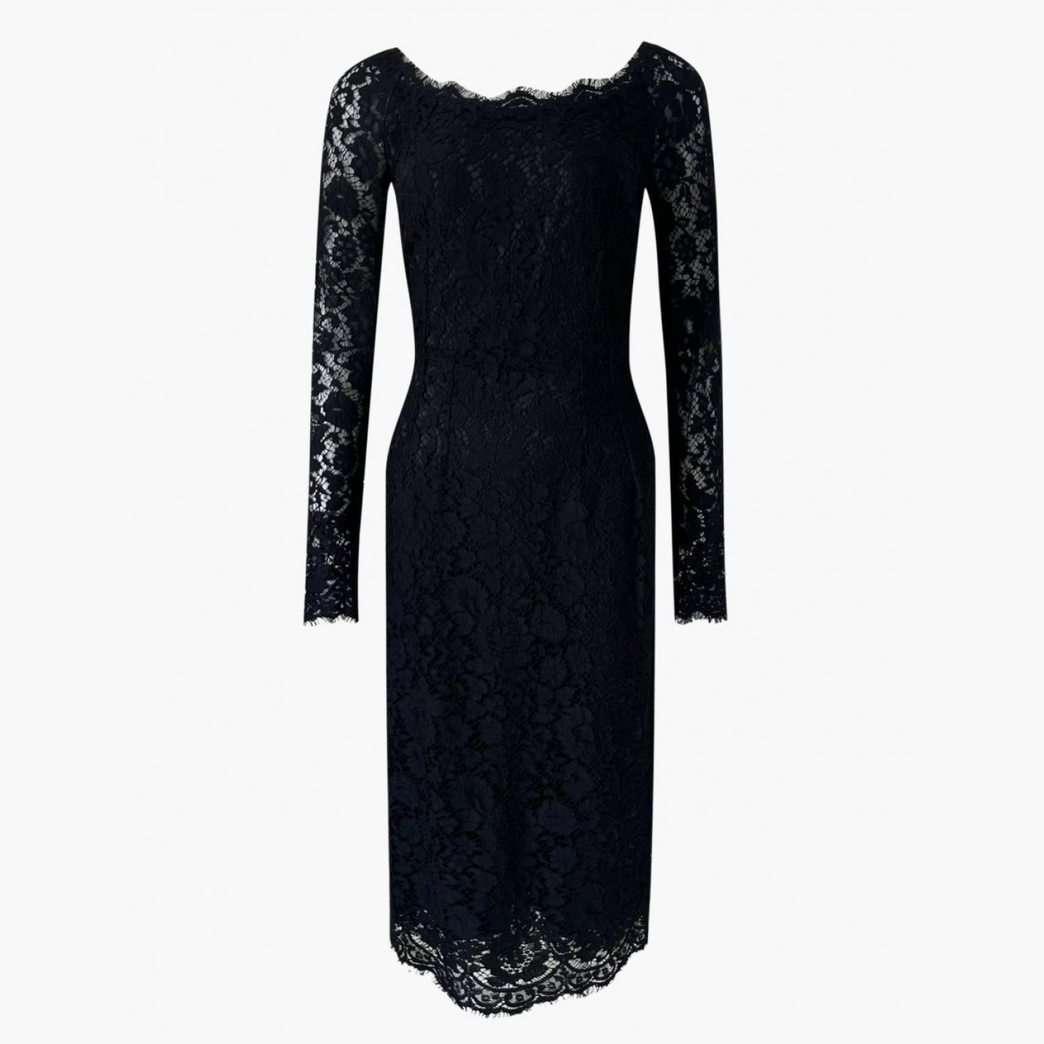 Black lace dress. In excellent condition with minor wear marks. Composition: 46% cotton, 43% viscose, 11% polyamide.