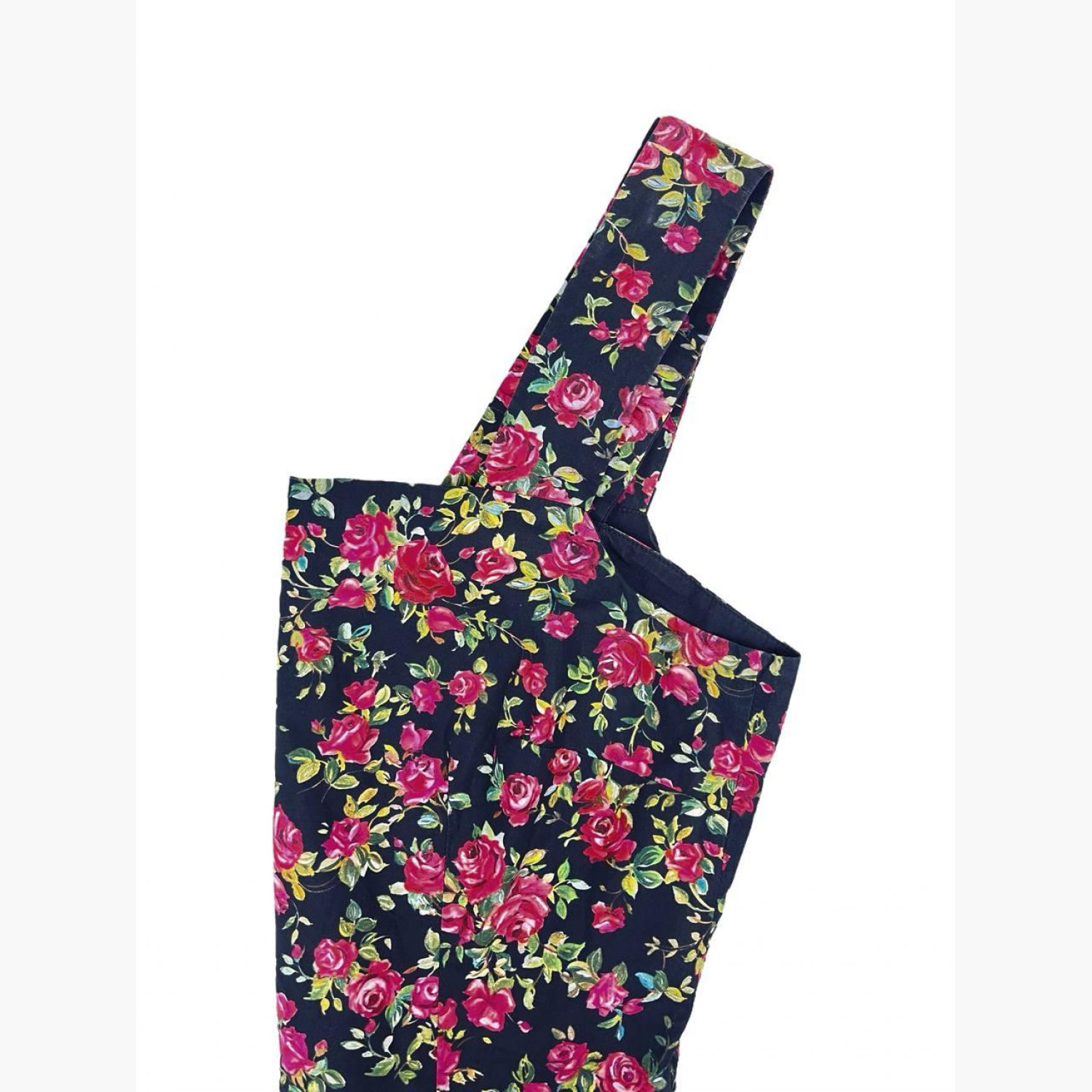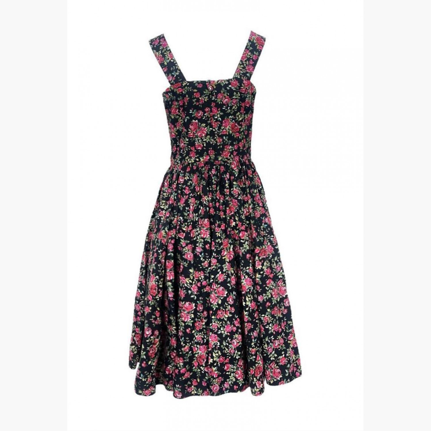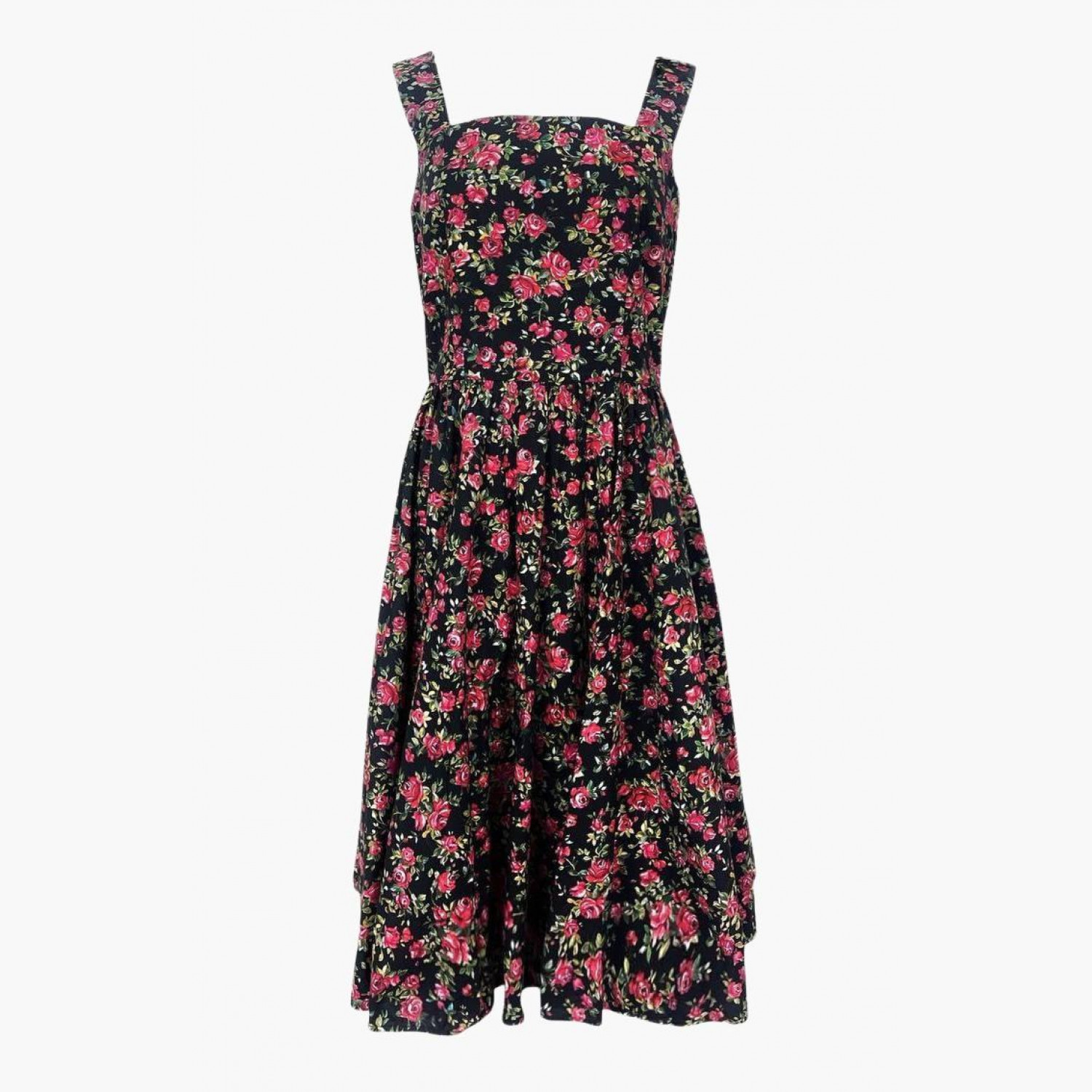 Black cotton sundress with floral print and zipper. In excellent condition, with no wear marks.