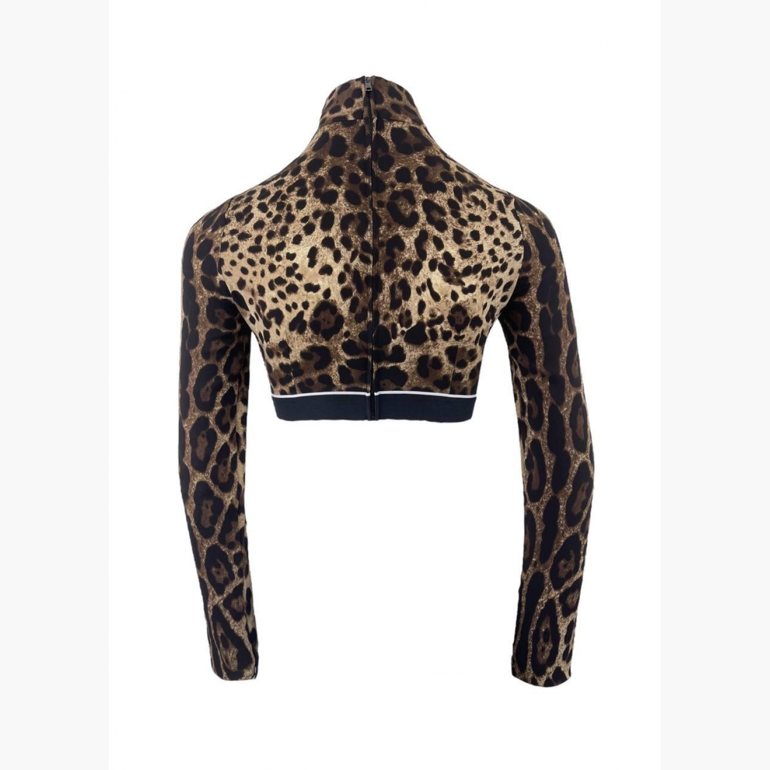 Cropped leopard-print top with long elasticated sleeves. Composition: main material — 95% silk, 5% elastane; elastic — 80% polyester, 10% elastane, 10% polyamide. In excellent condition, no wear marks.