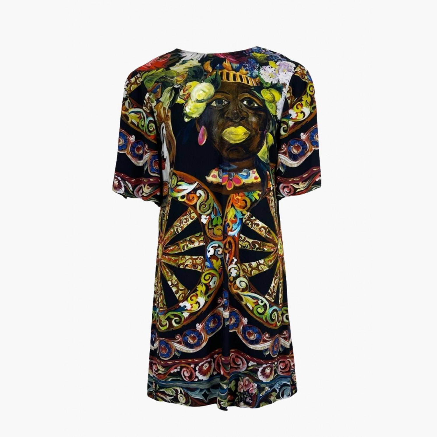 Short lightweight dress with an African print and a zip closure. Composition: 100% viscose. In good condition, no wear marks.