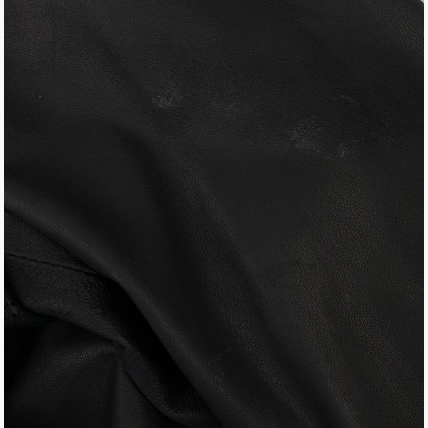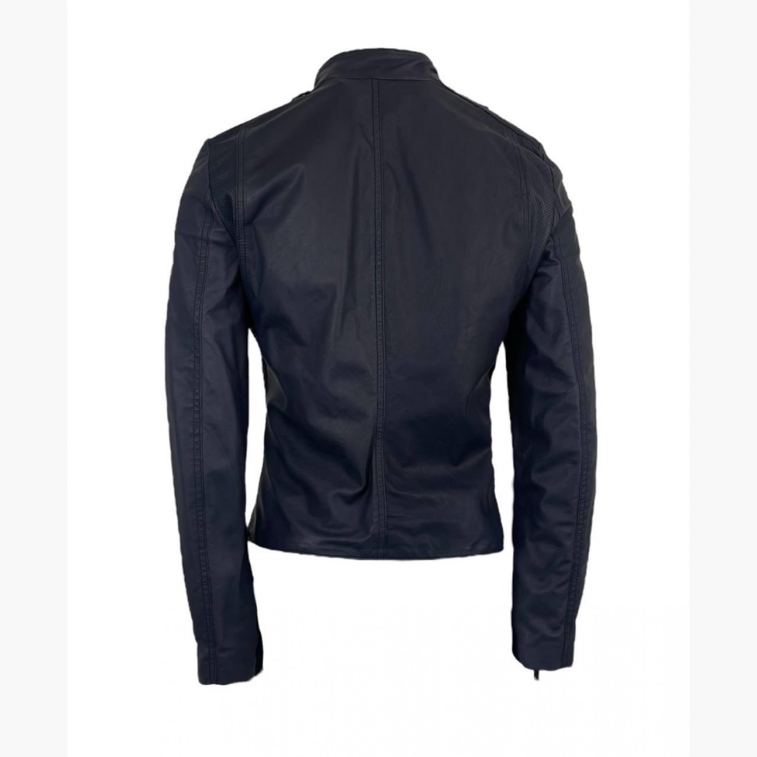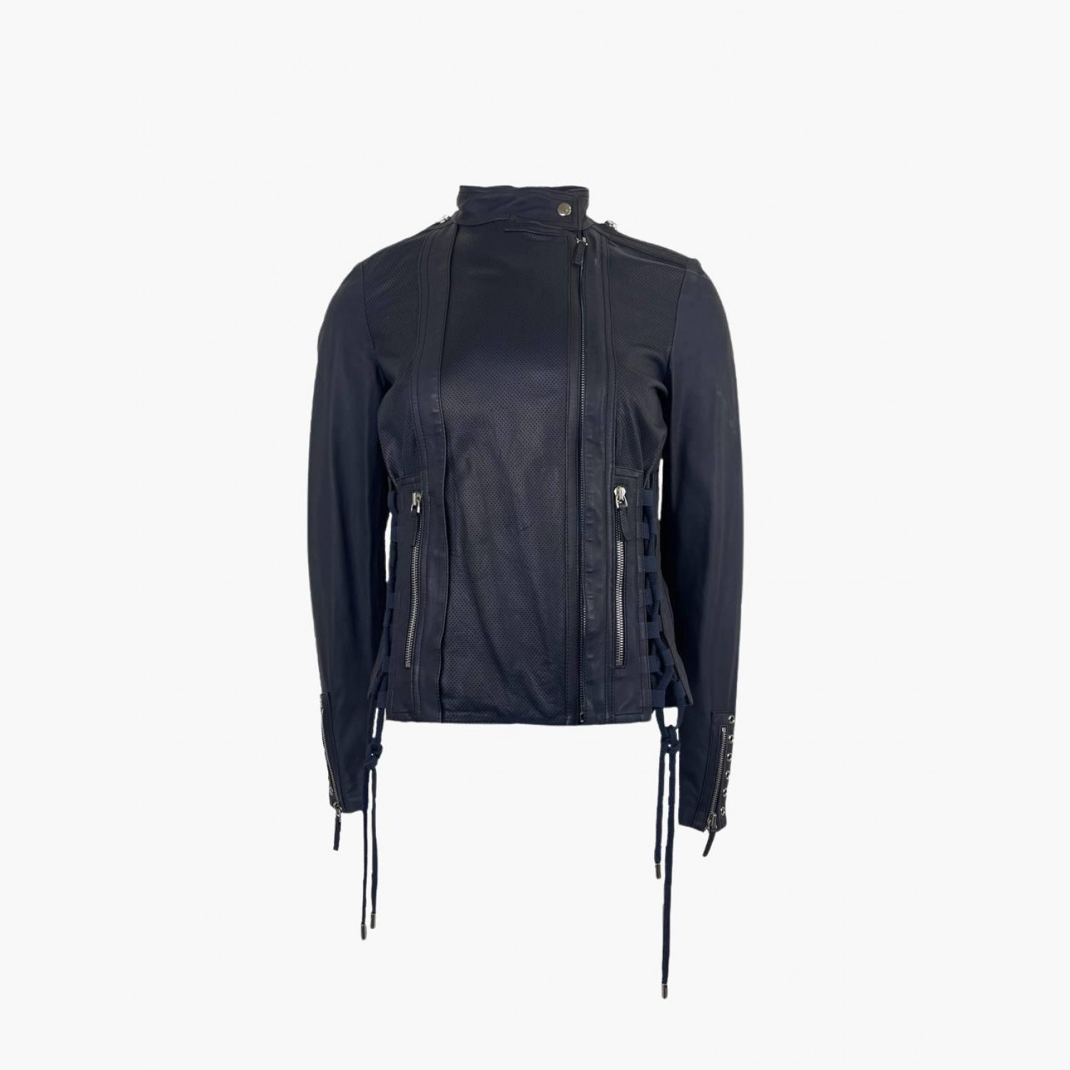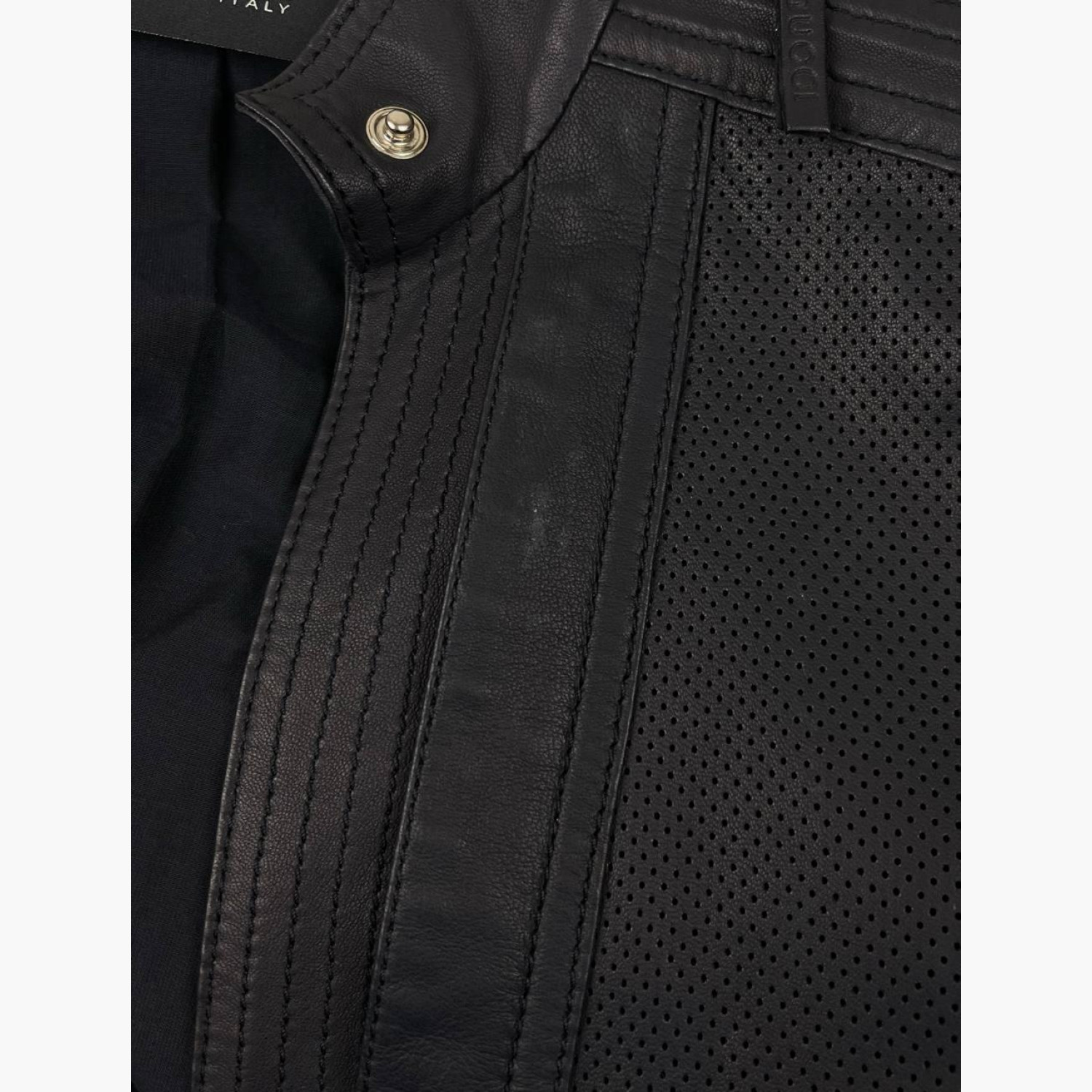 Short black jacket made of perforated leather with a zipper. In good condition, with stains.