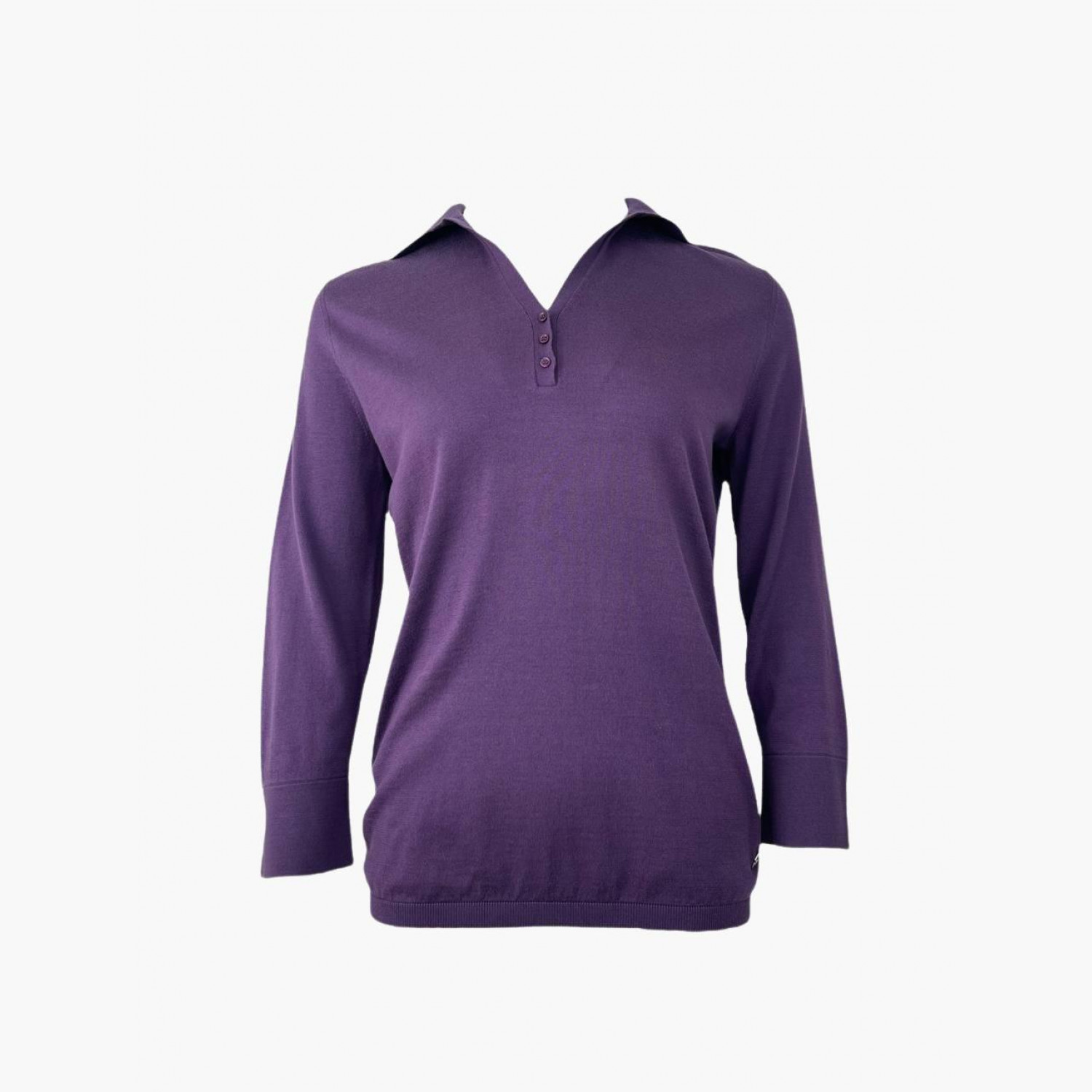 Purple fine-knit top in excellent condition. No wear marks. Material: 55% silk, 45% cotton.