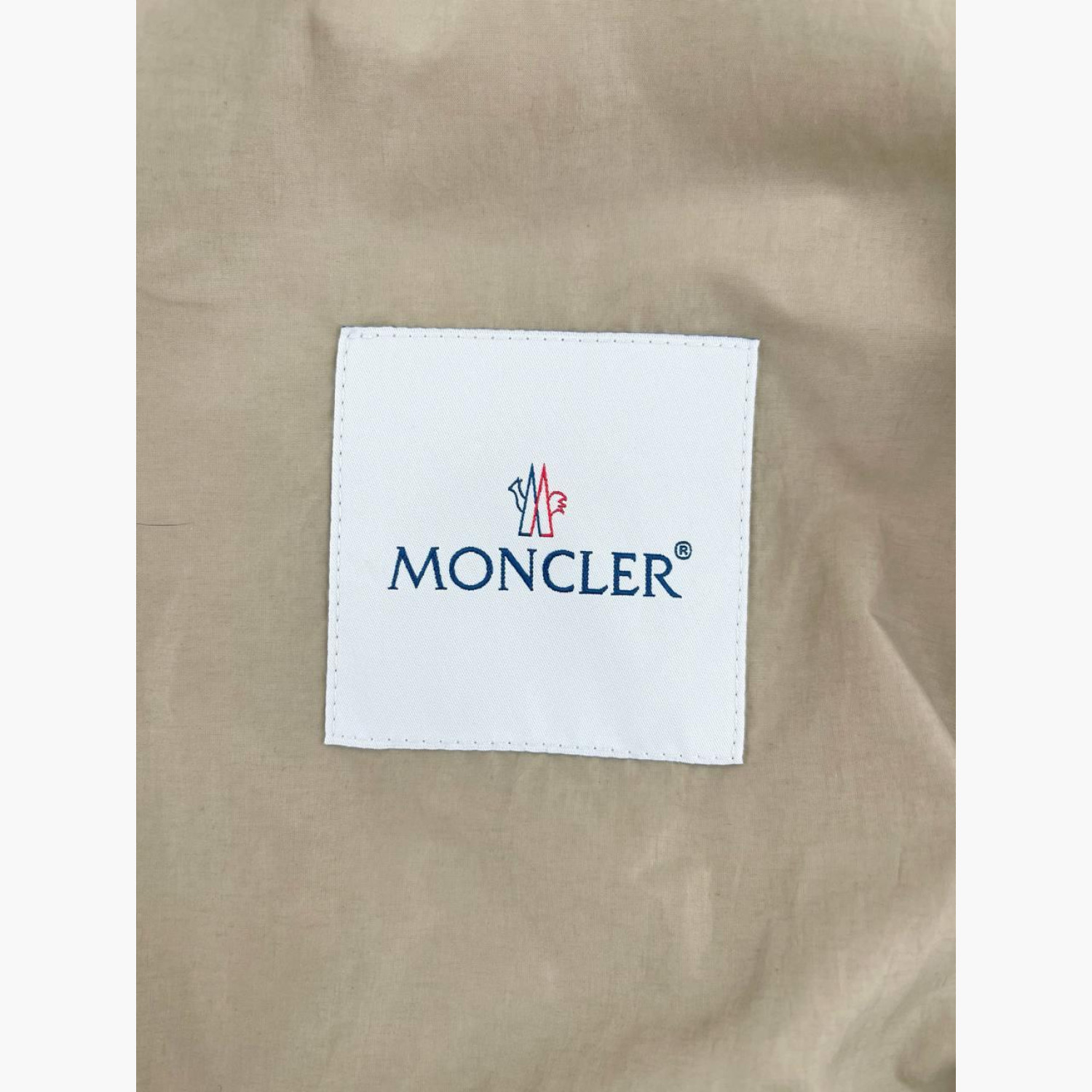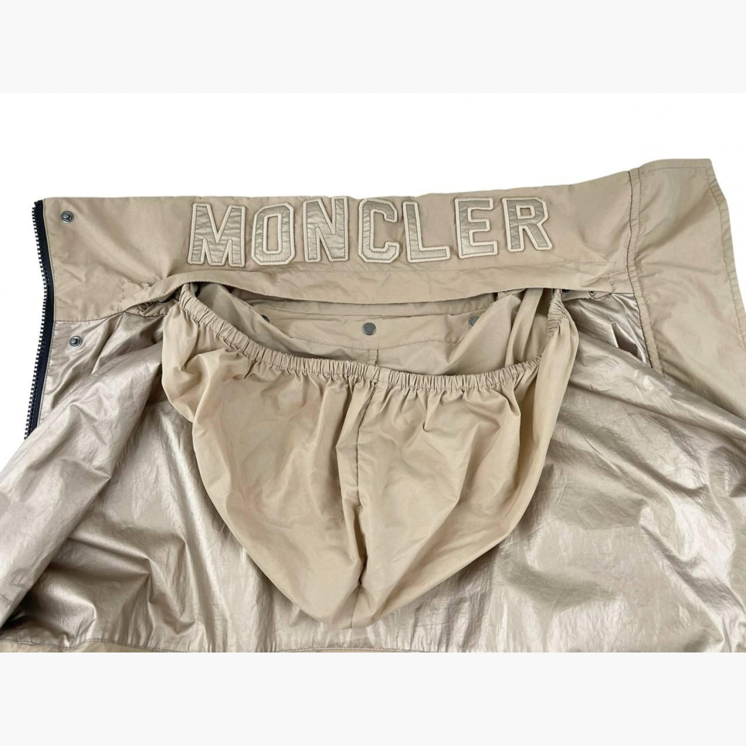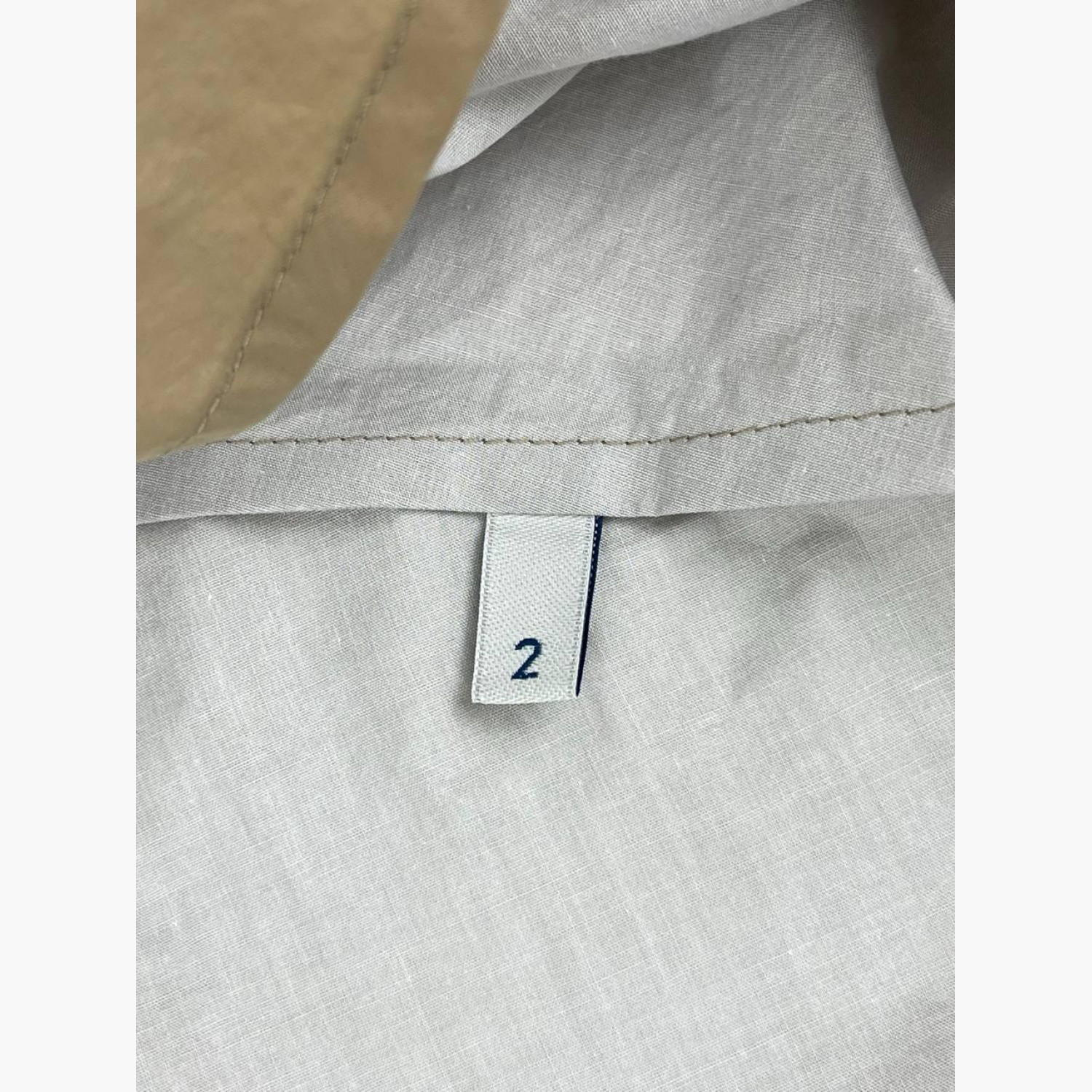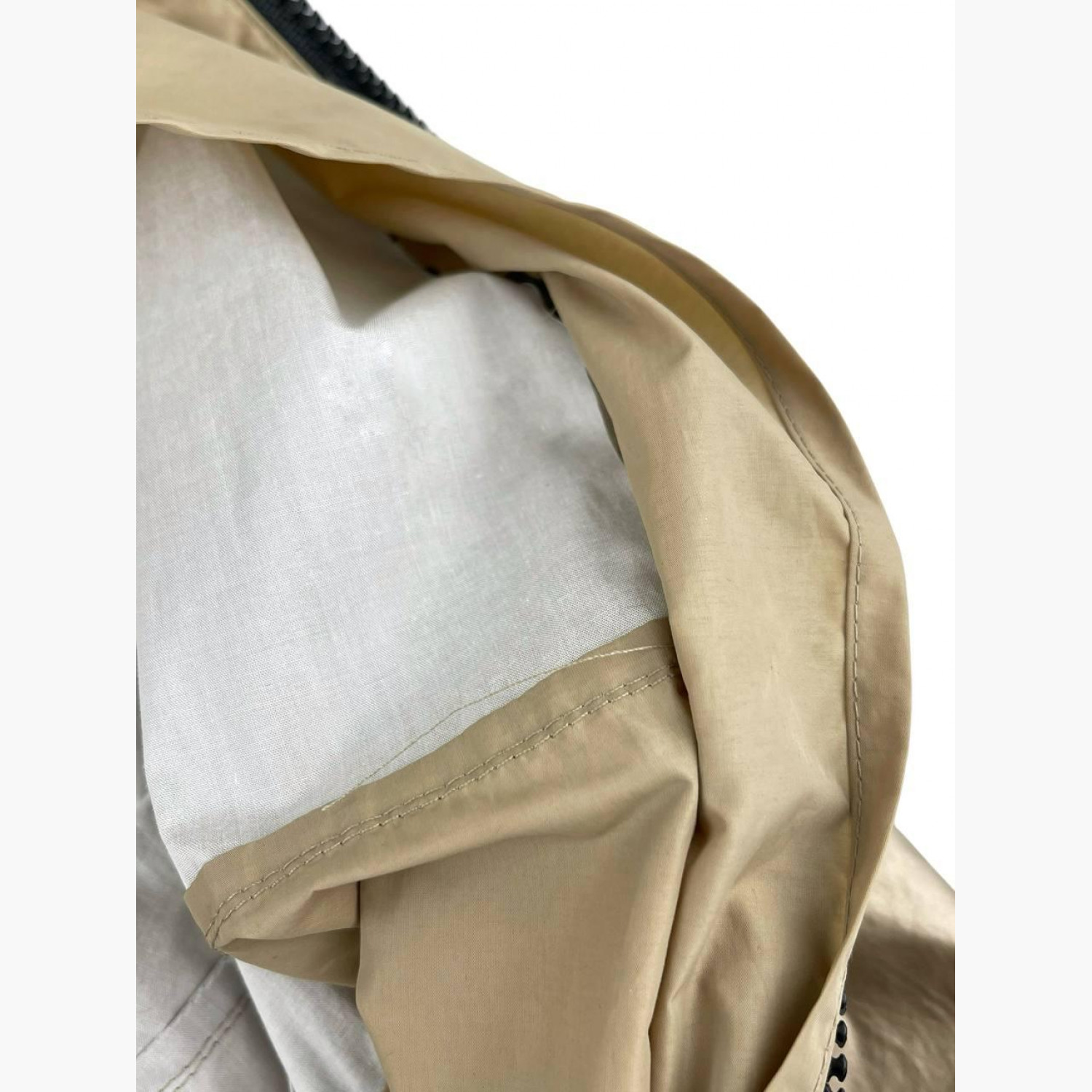 Beige zip-up coat with a hidden hood, with a tag. Main material — 100% polyamide; trim — 100% cotton. In excellent condition, minor wear marks and a scuff on the snap.
