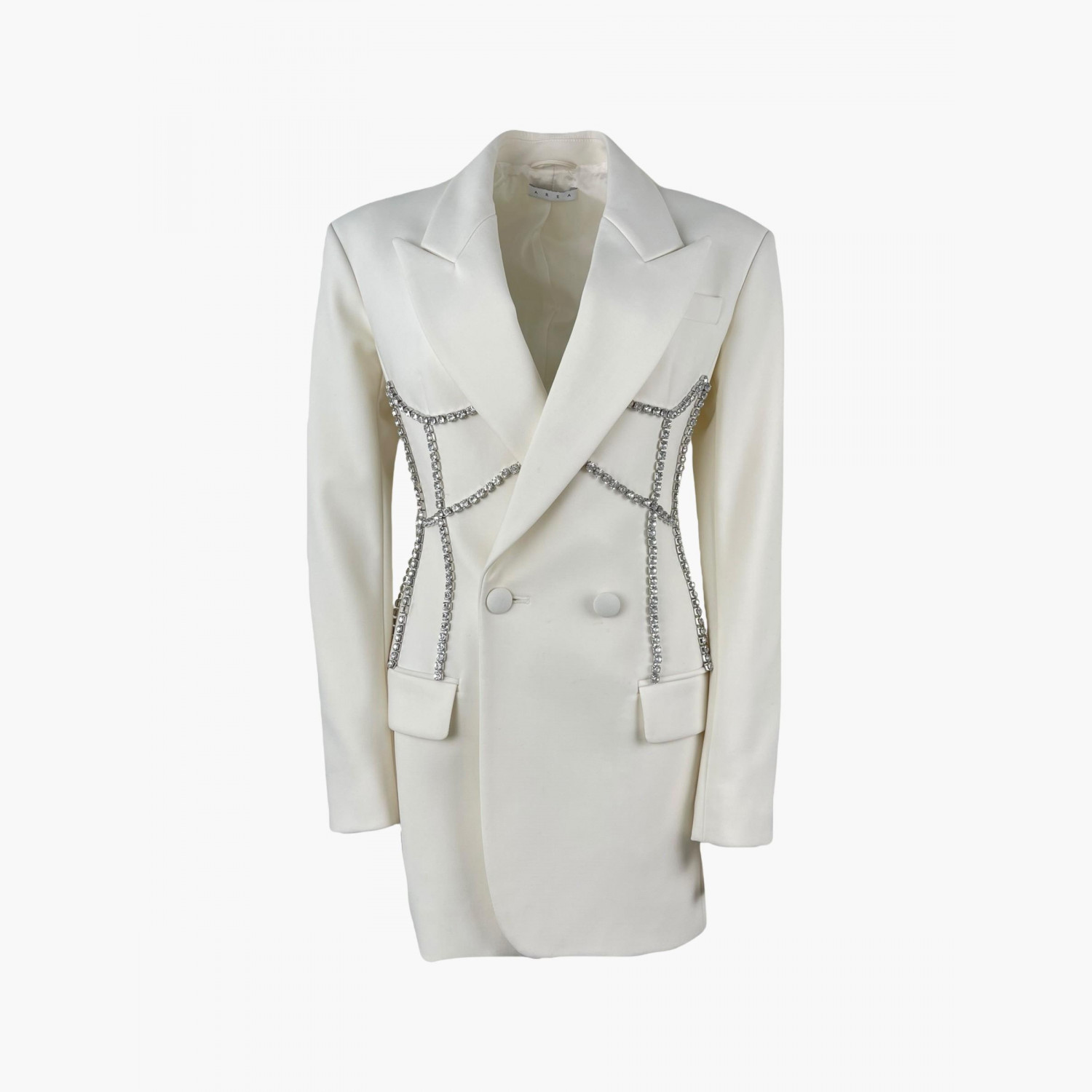 Ivory jacket with rhinestones. In good condition, with wear marks and defects.