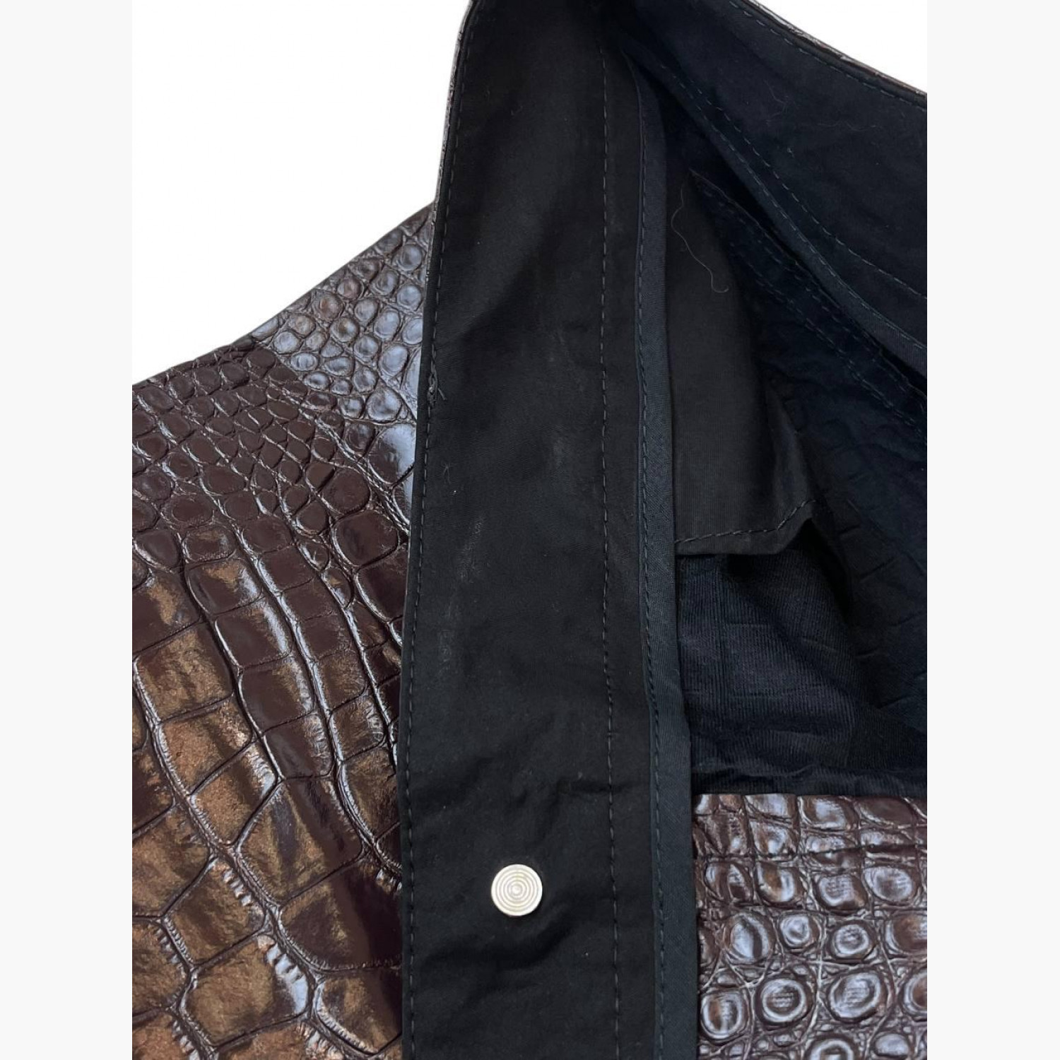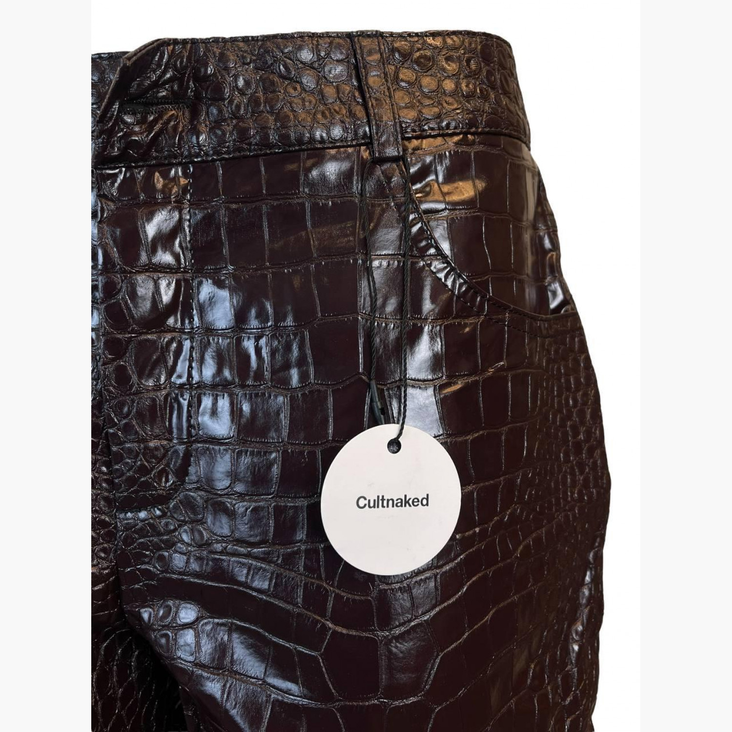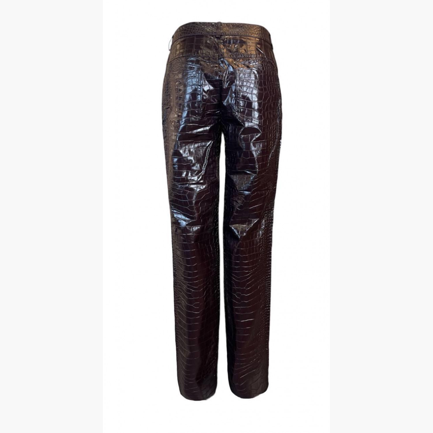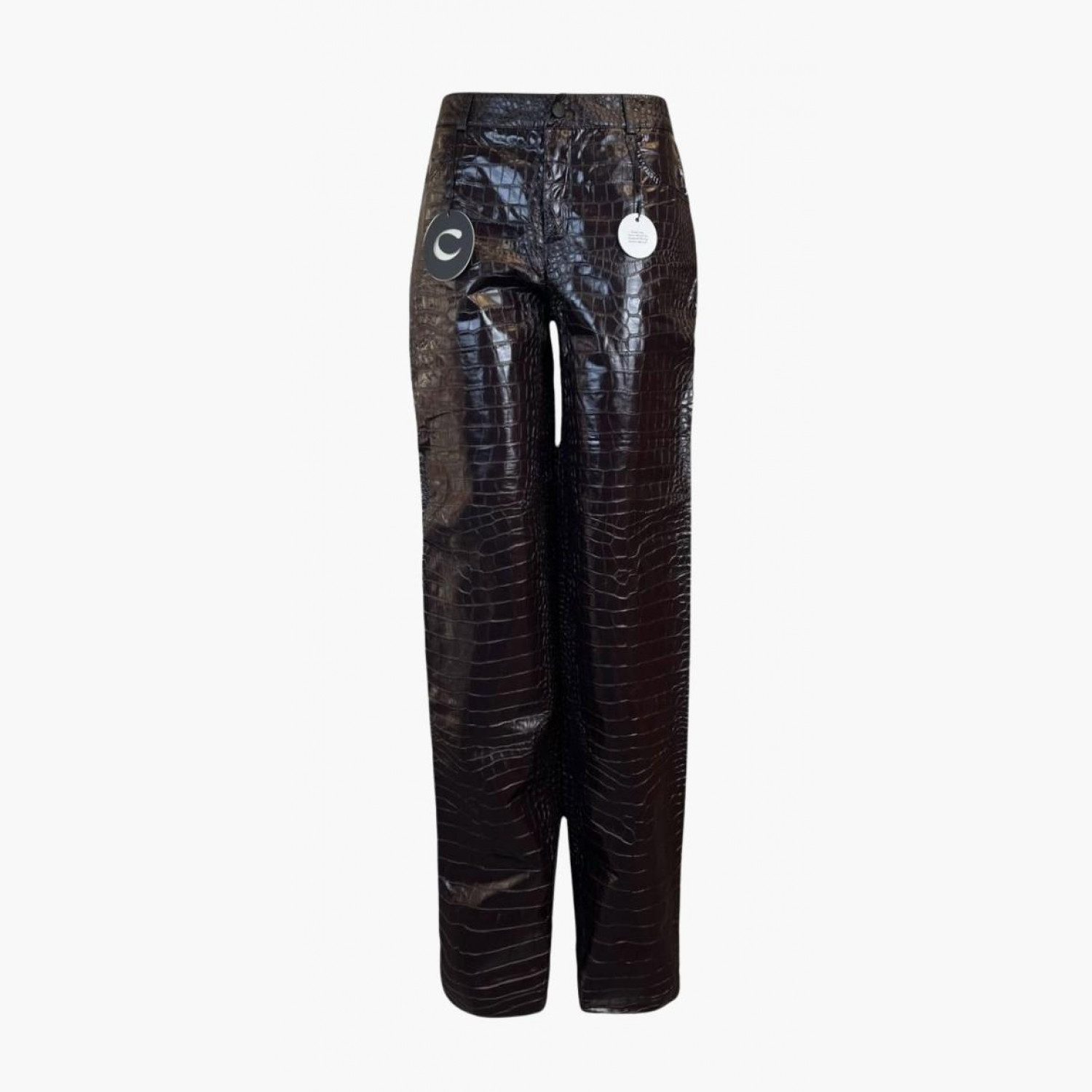 Burgundy straight faux leather trousers with a crocodile pattern, with tag. Composition — 56% recycled polyester, 44% polyurethane. In excellent condition, with a minor inner mark on the waistband.