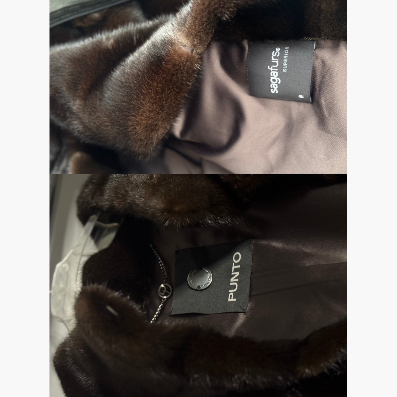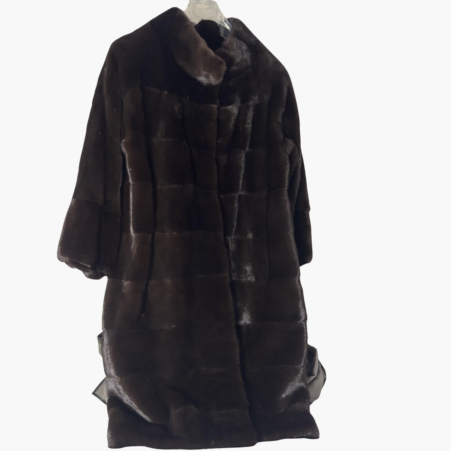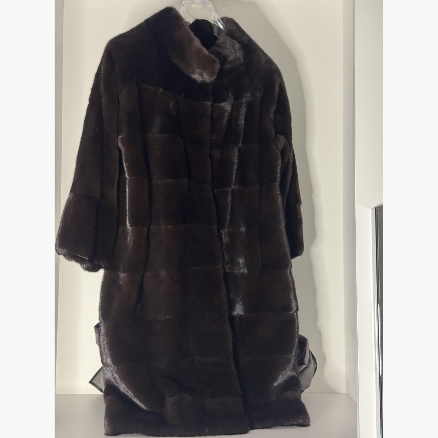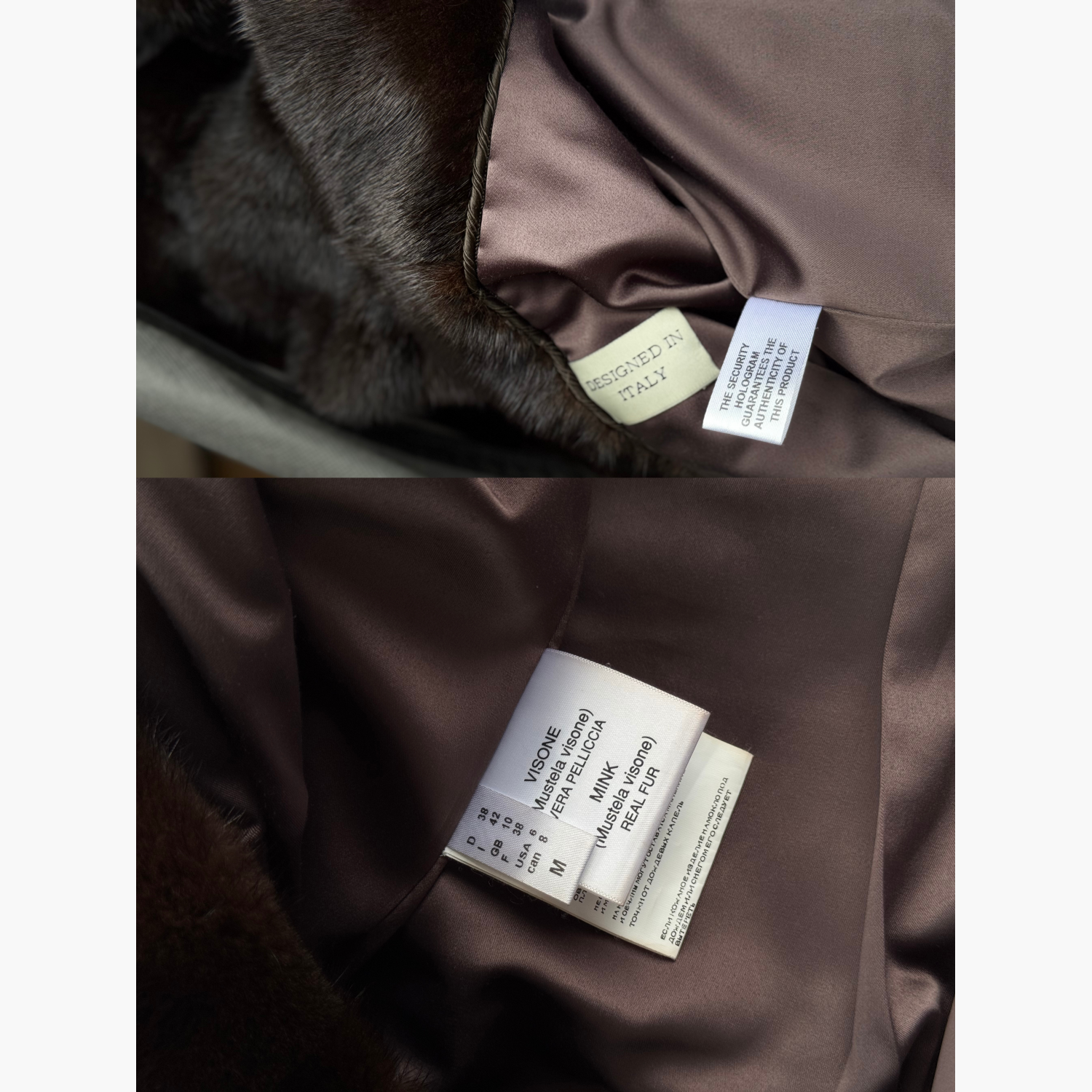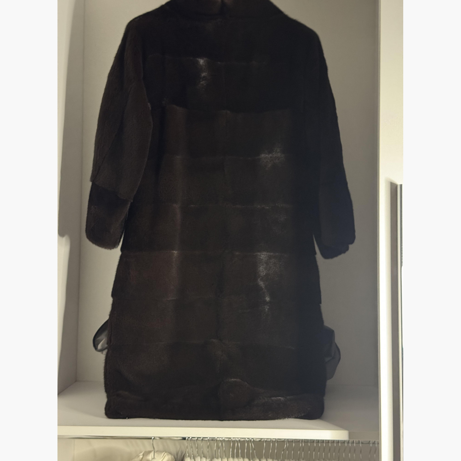 Dark brown mink coat. Labeled size M, but fits a universal size. Lining: 100% silk. In excellent condition. Comes with a gift for the new owner — knitted mittens with natural fur from the same brand.