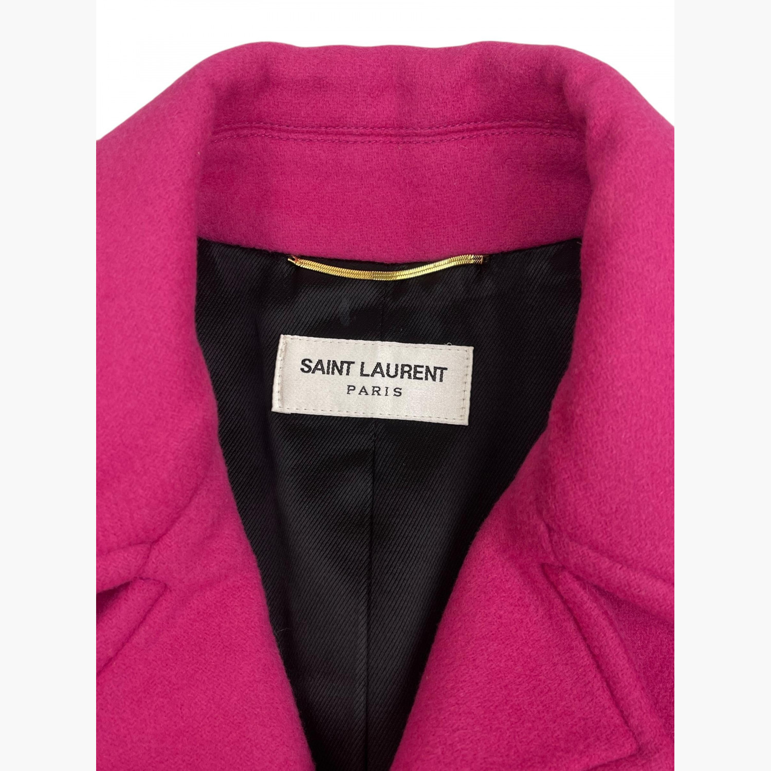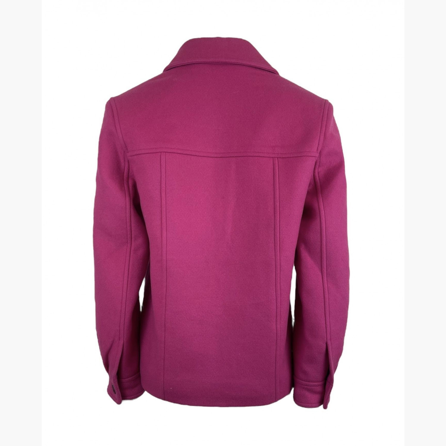 Fuchsia wool blazer with two chest pockets. In excellent condition, with minor wear marks.