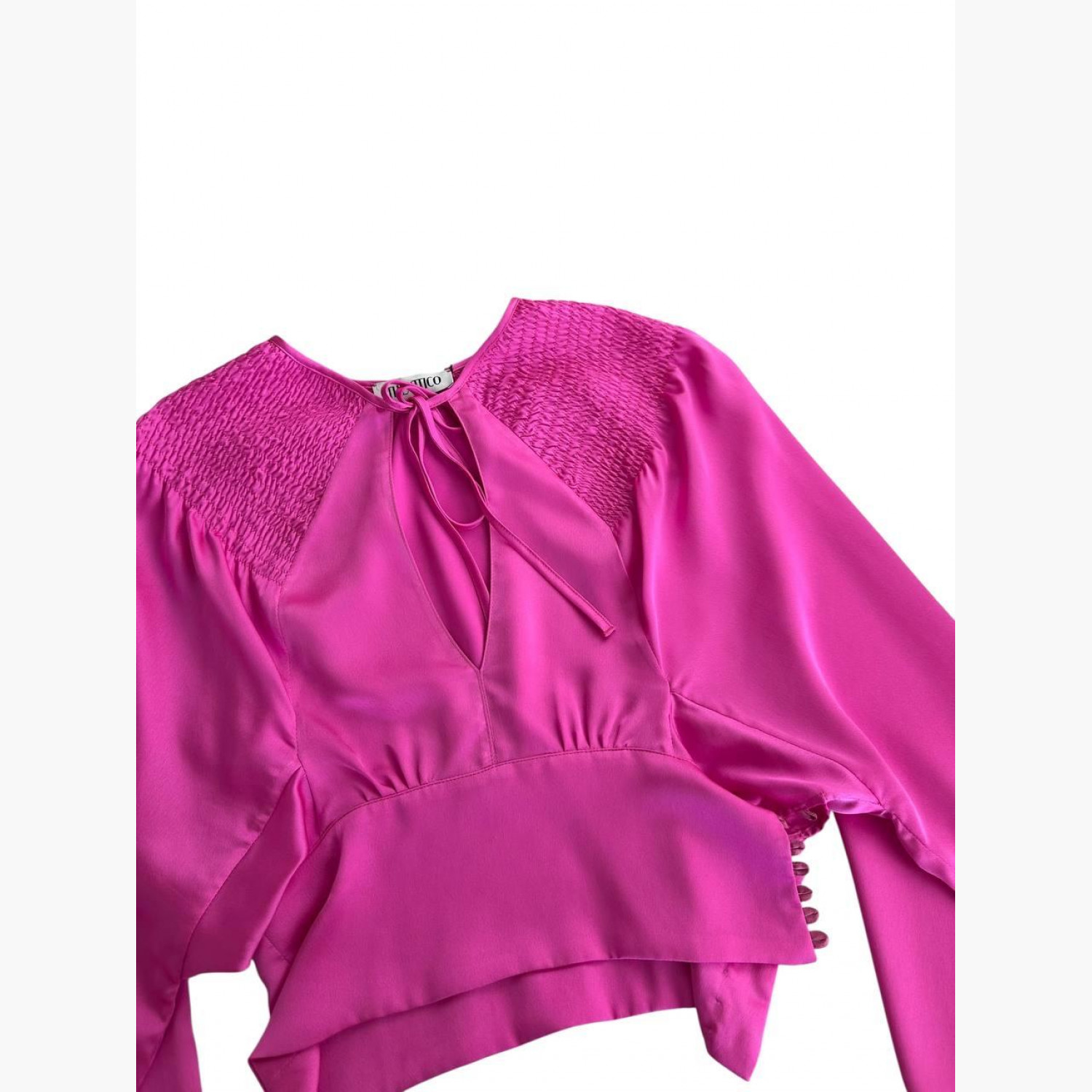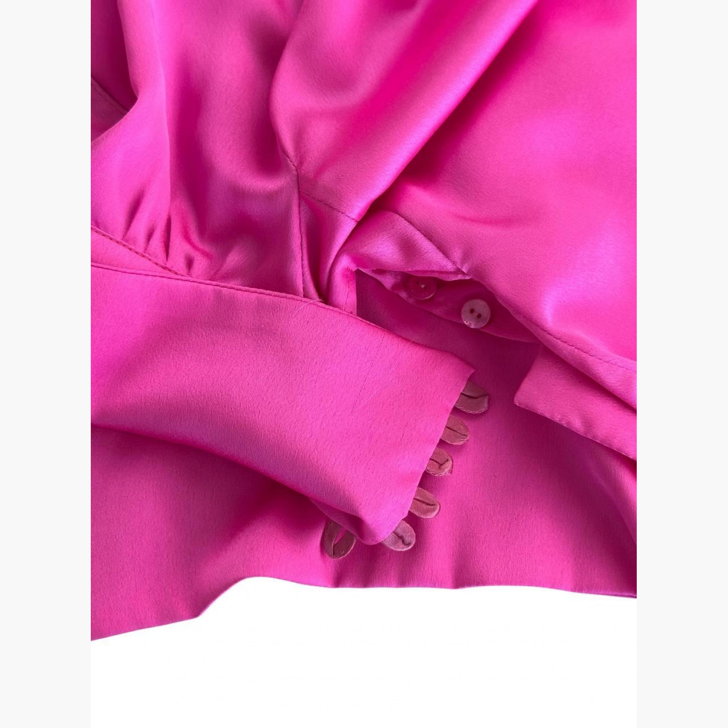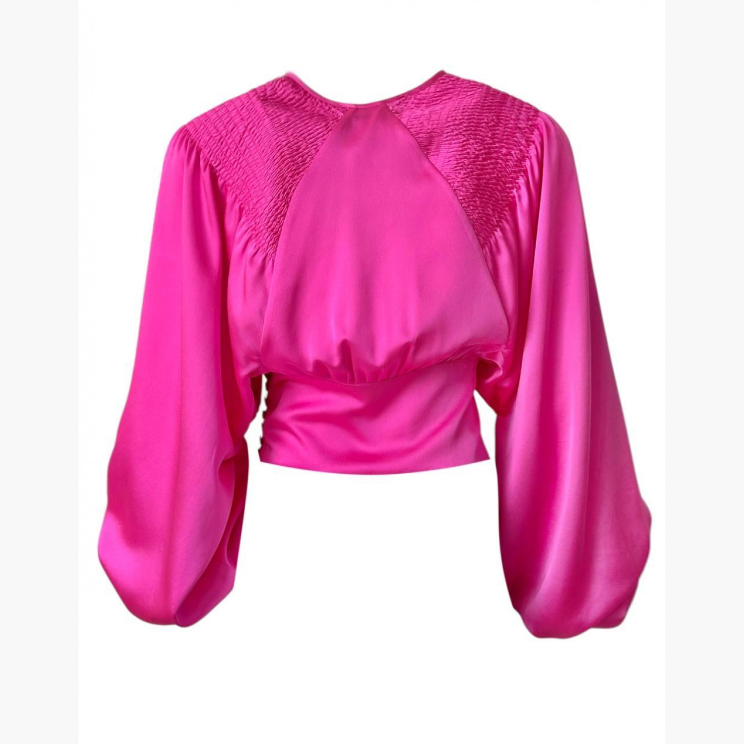 Pink blouse with voluminous sleeves. In perfect condition, with wear marks. Composition: 100% polyester.
