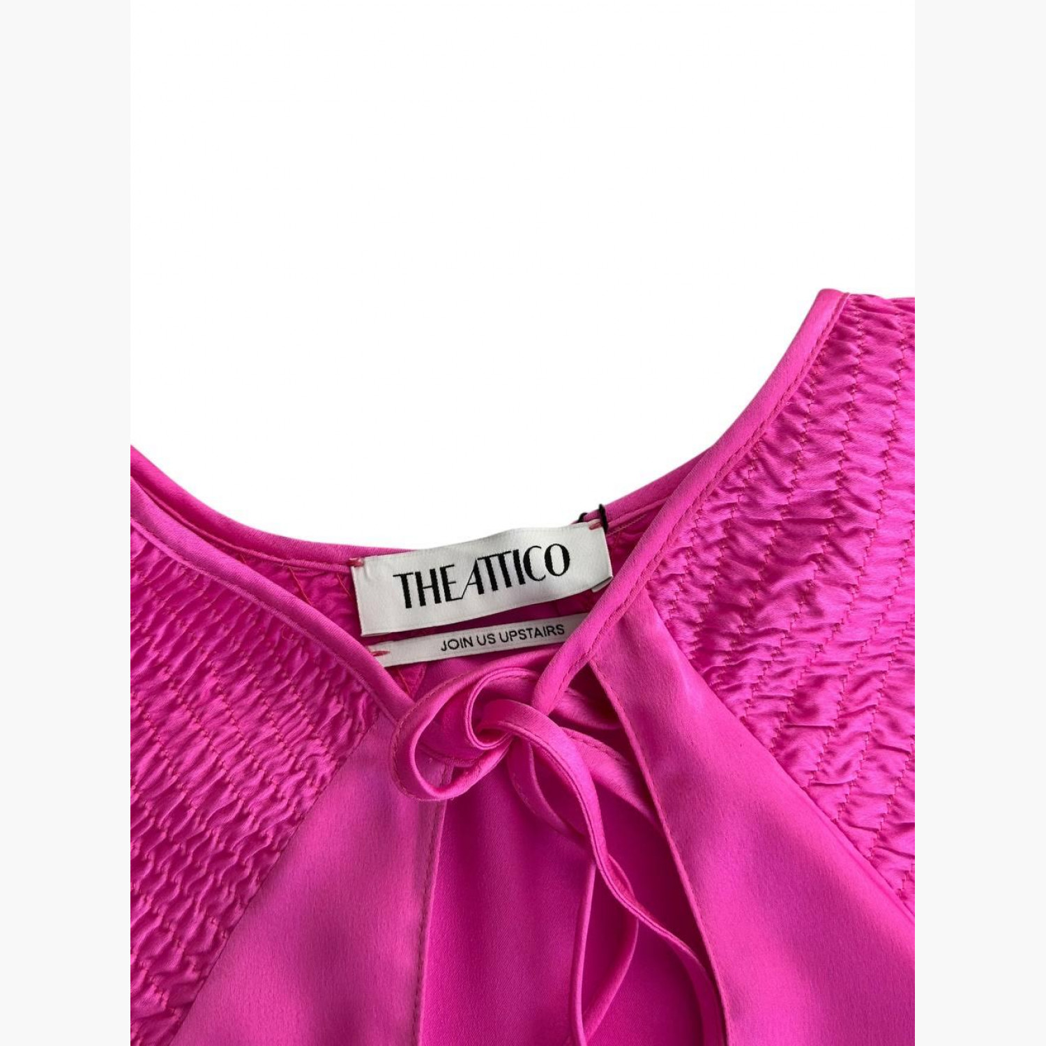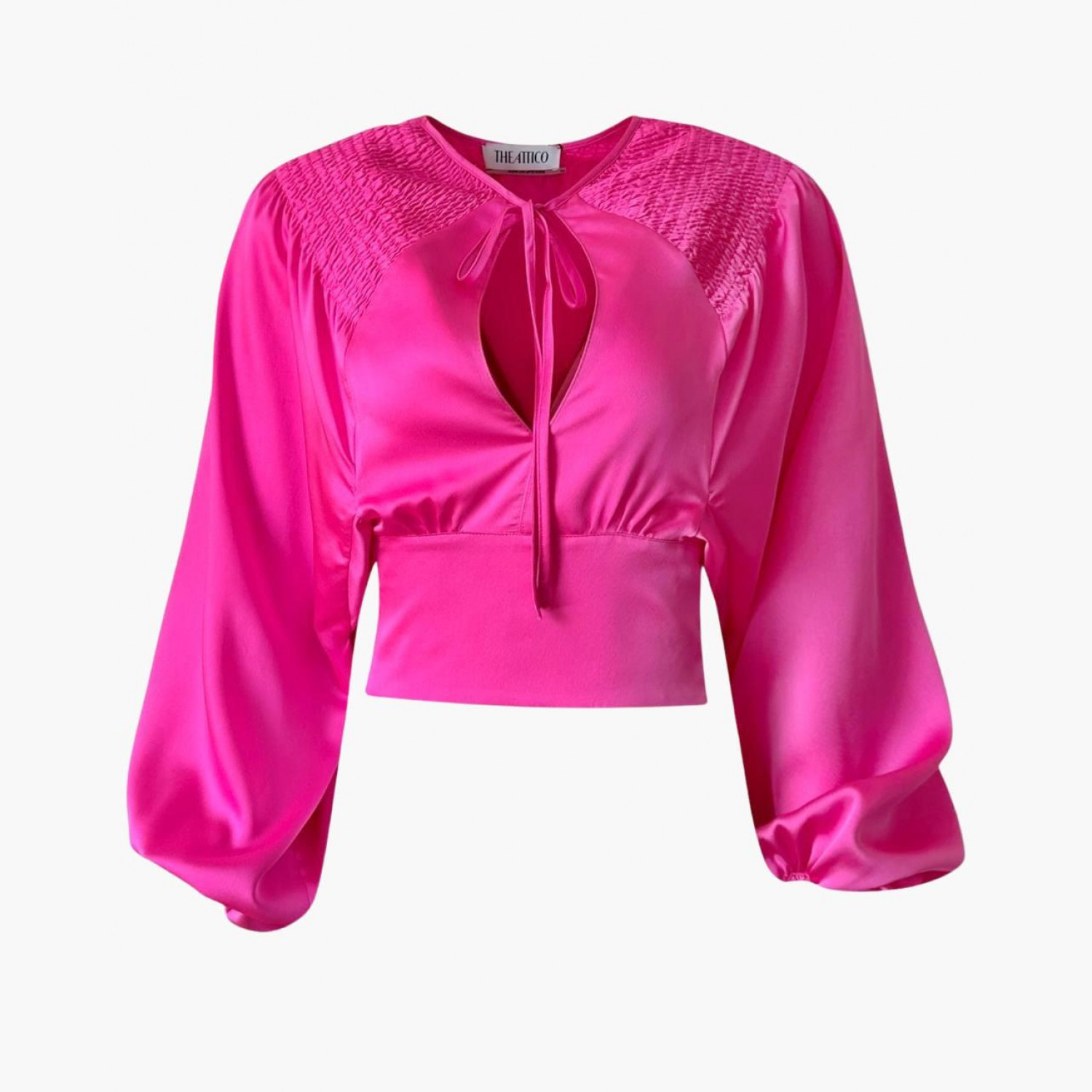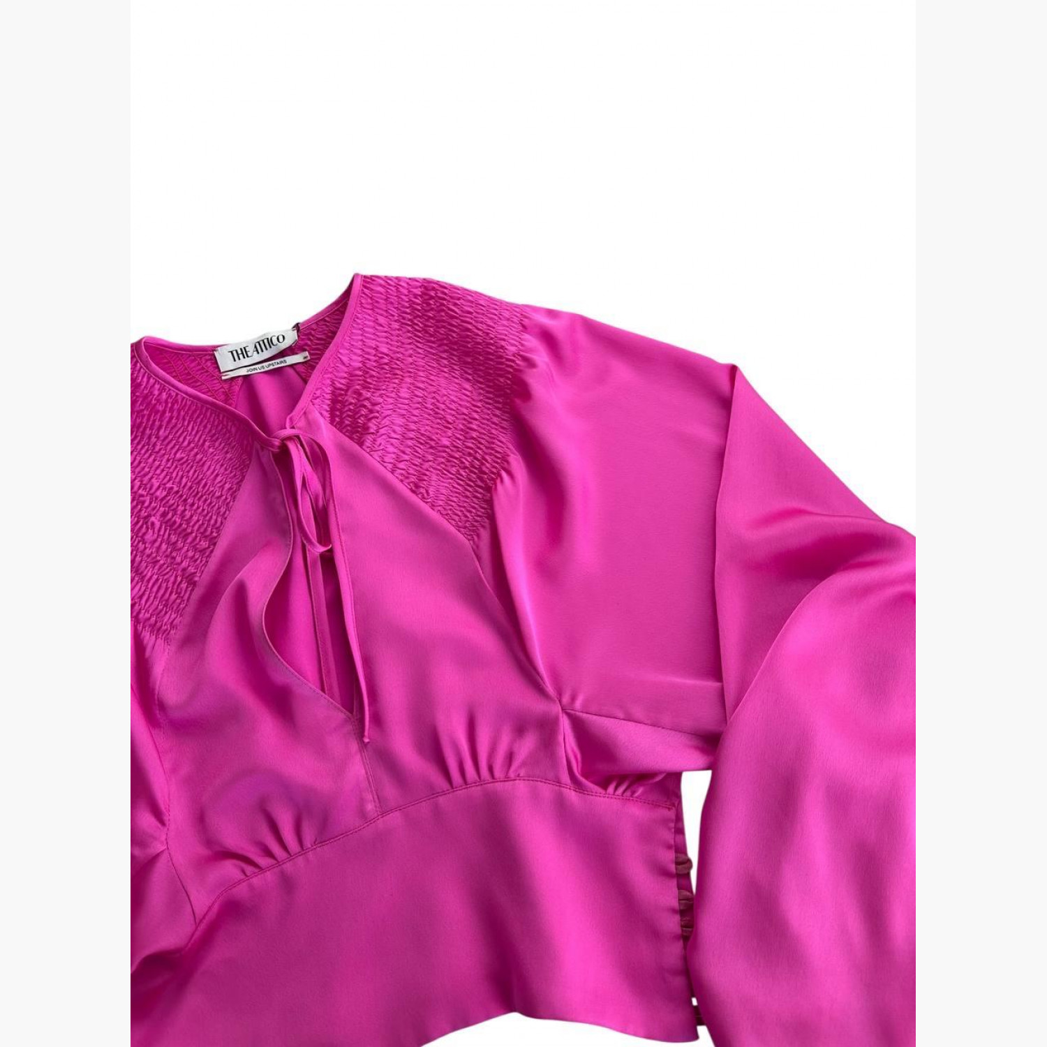 Pink blouse with voluminous sleeves. In perfect condition, with wear marks. Composition: 100% polyester.