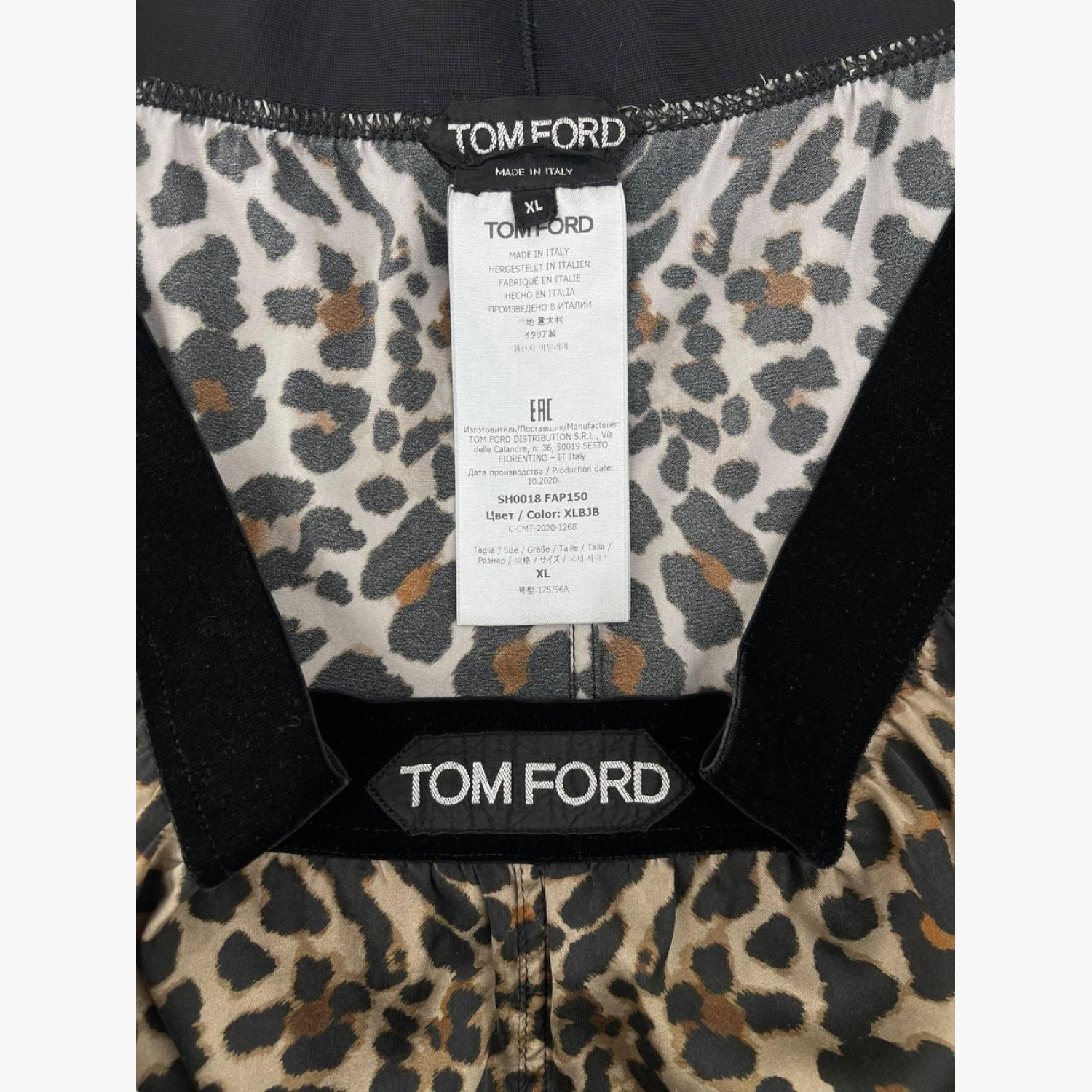 Leopard silk shorts. Composition: main material — 93% silk, 7% elastane; inserts — 90% polyamide, 10% elastane. In good condition, with pulls.