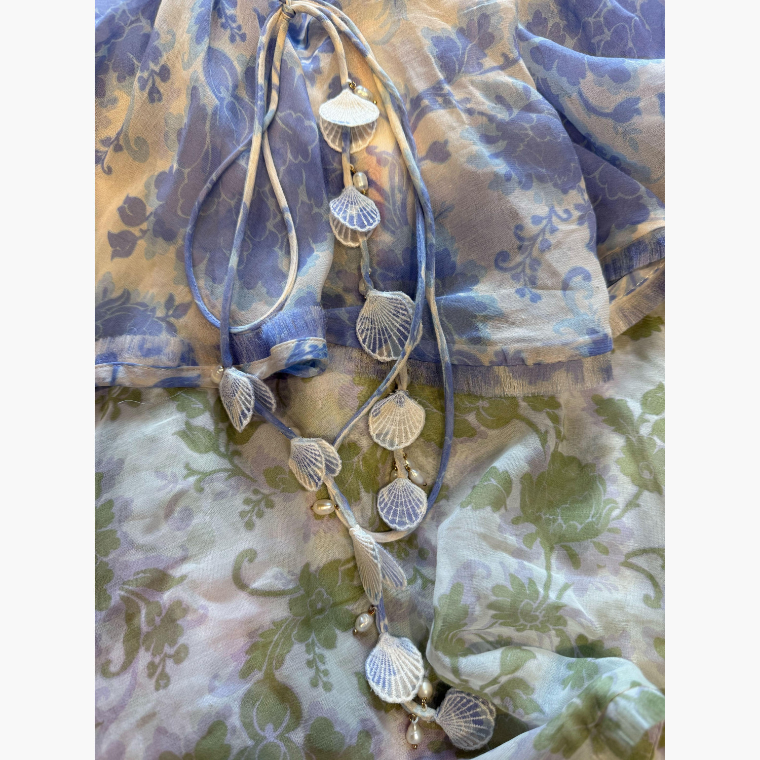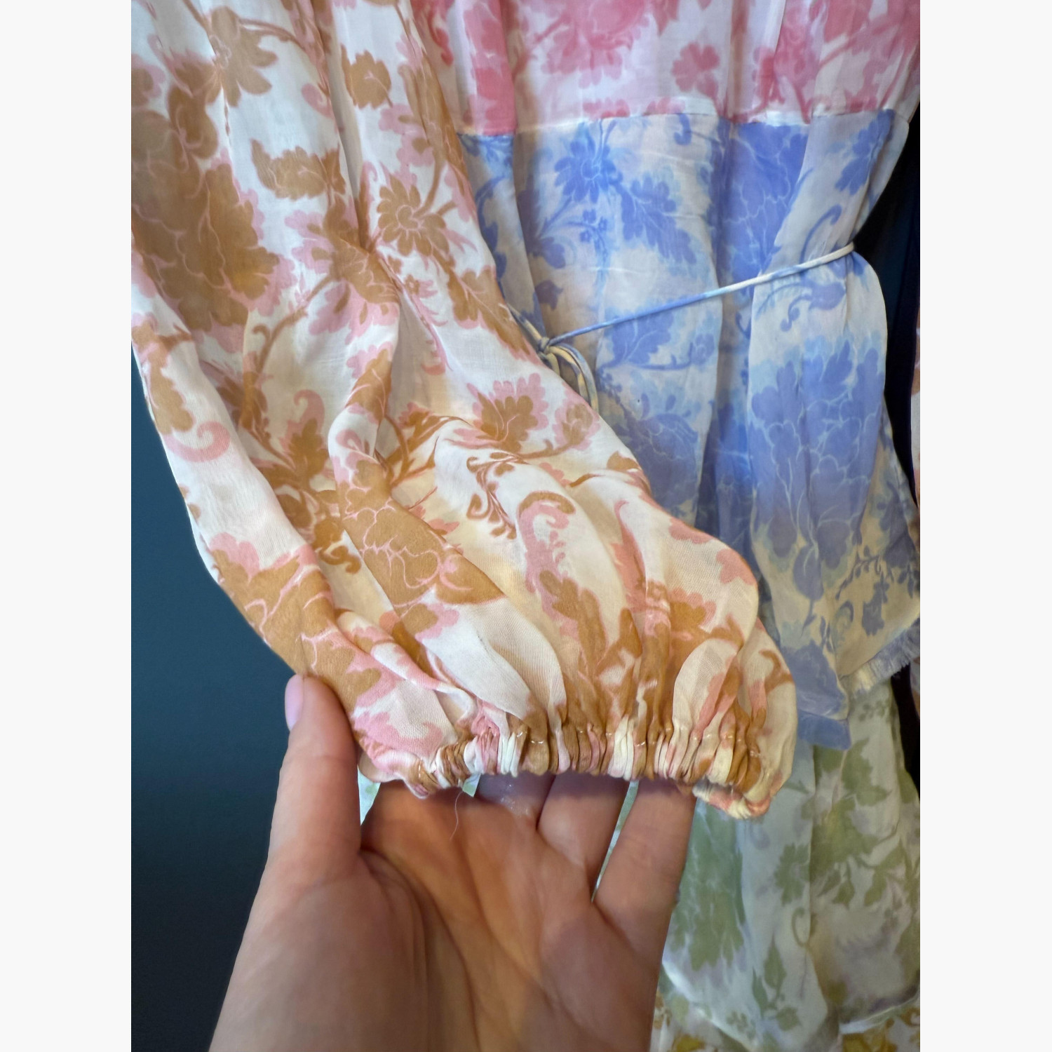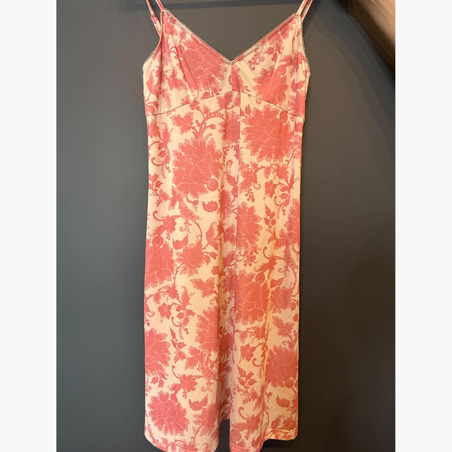 The dress is made of 25% silk and 75% cotton. It also comes with a slip lining made of 88% polyester and 12% elastane. The dress is in perfect, like-new condition. Cleaned only at a dry cleaner’s.
