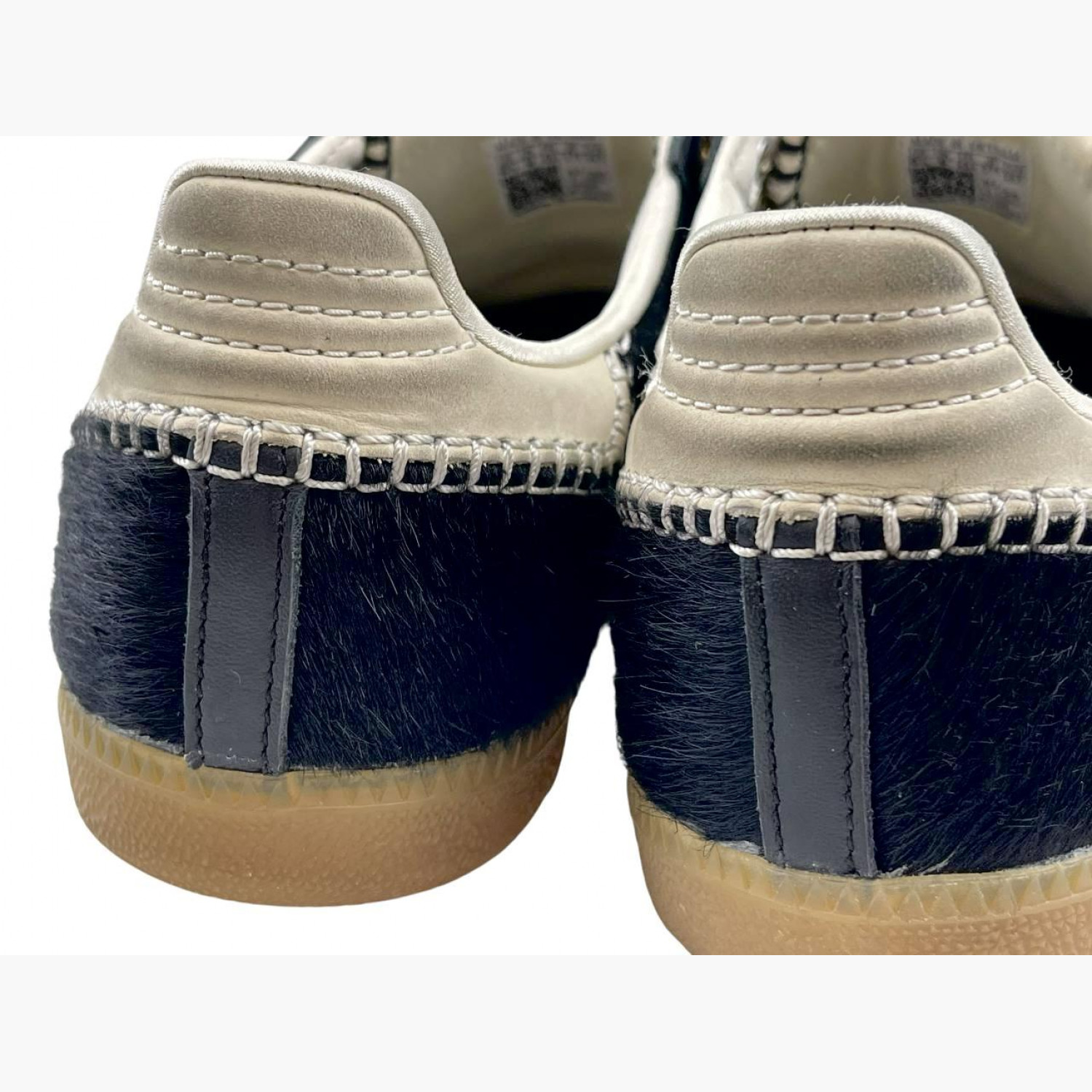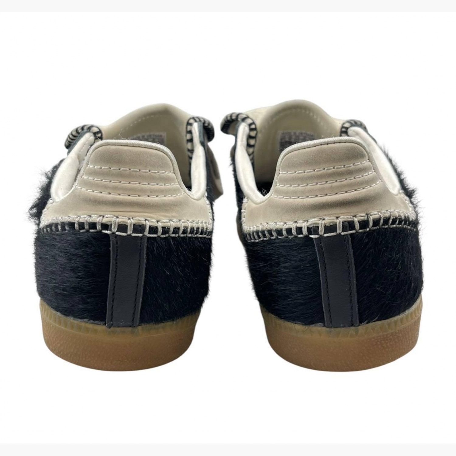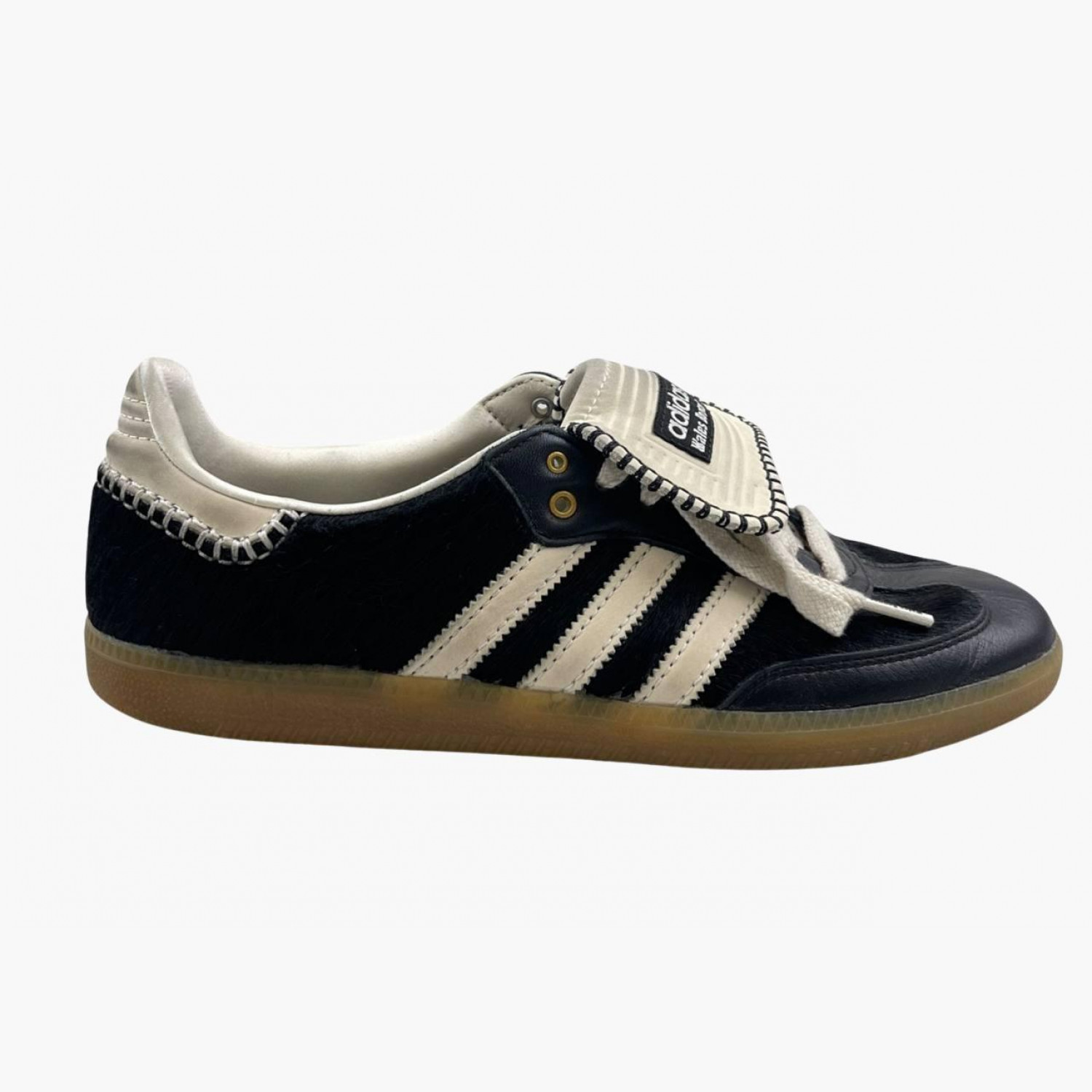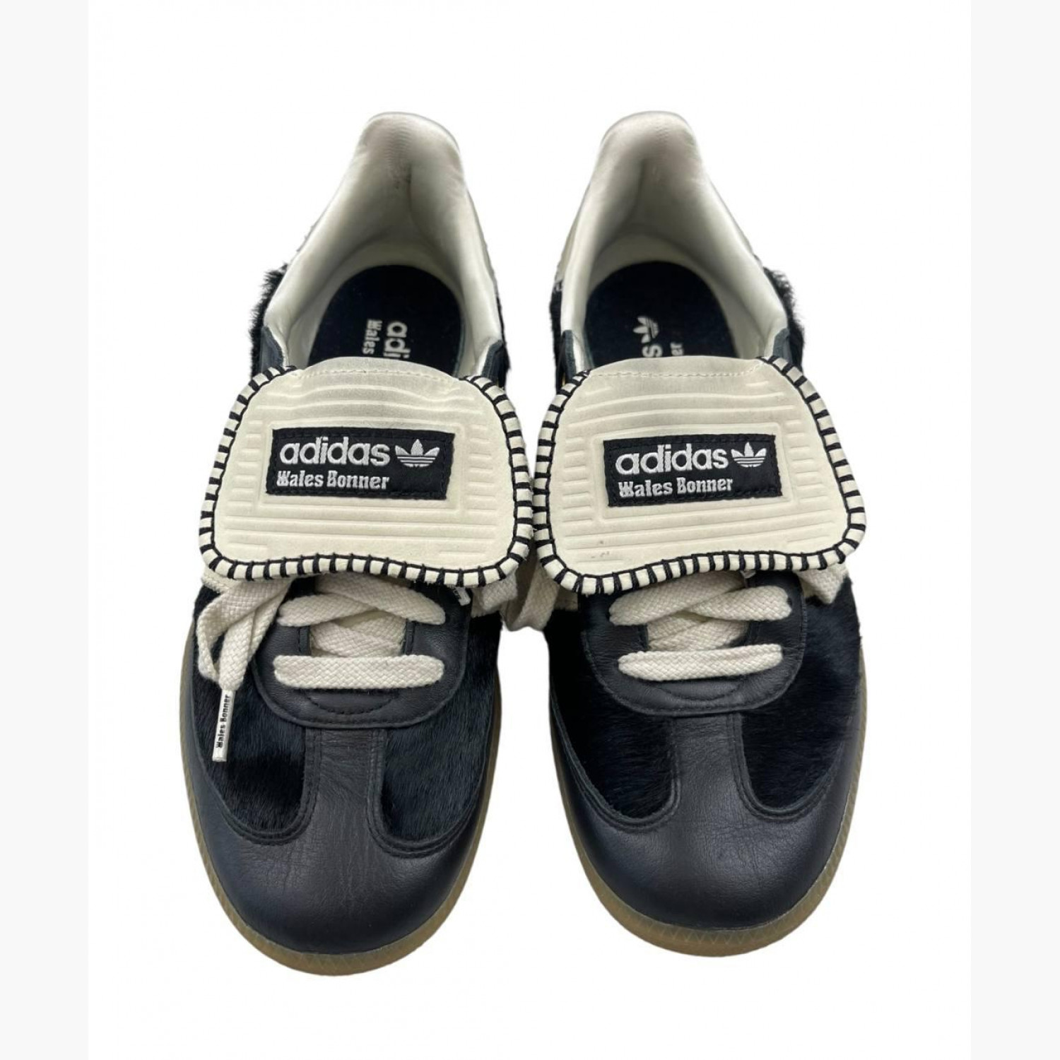 Black sneakers with suede and long tongue. In good condition, with wear marks.
