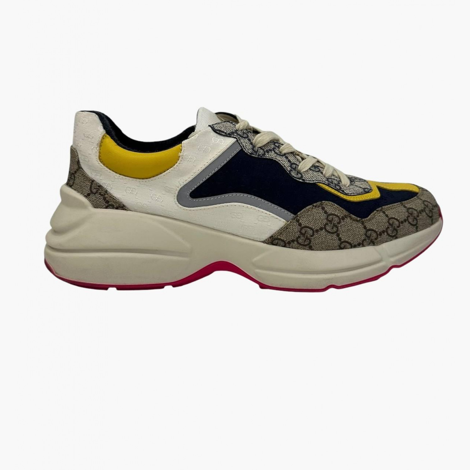 Multicoloured canvas and leather trainers with textile inserts. In good condition, with signs of wear and scuffs. An extra pair of laces included.