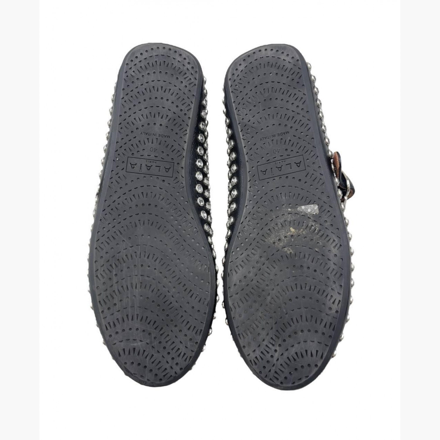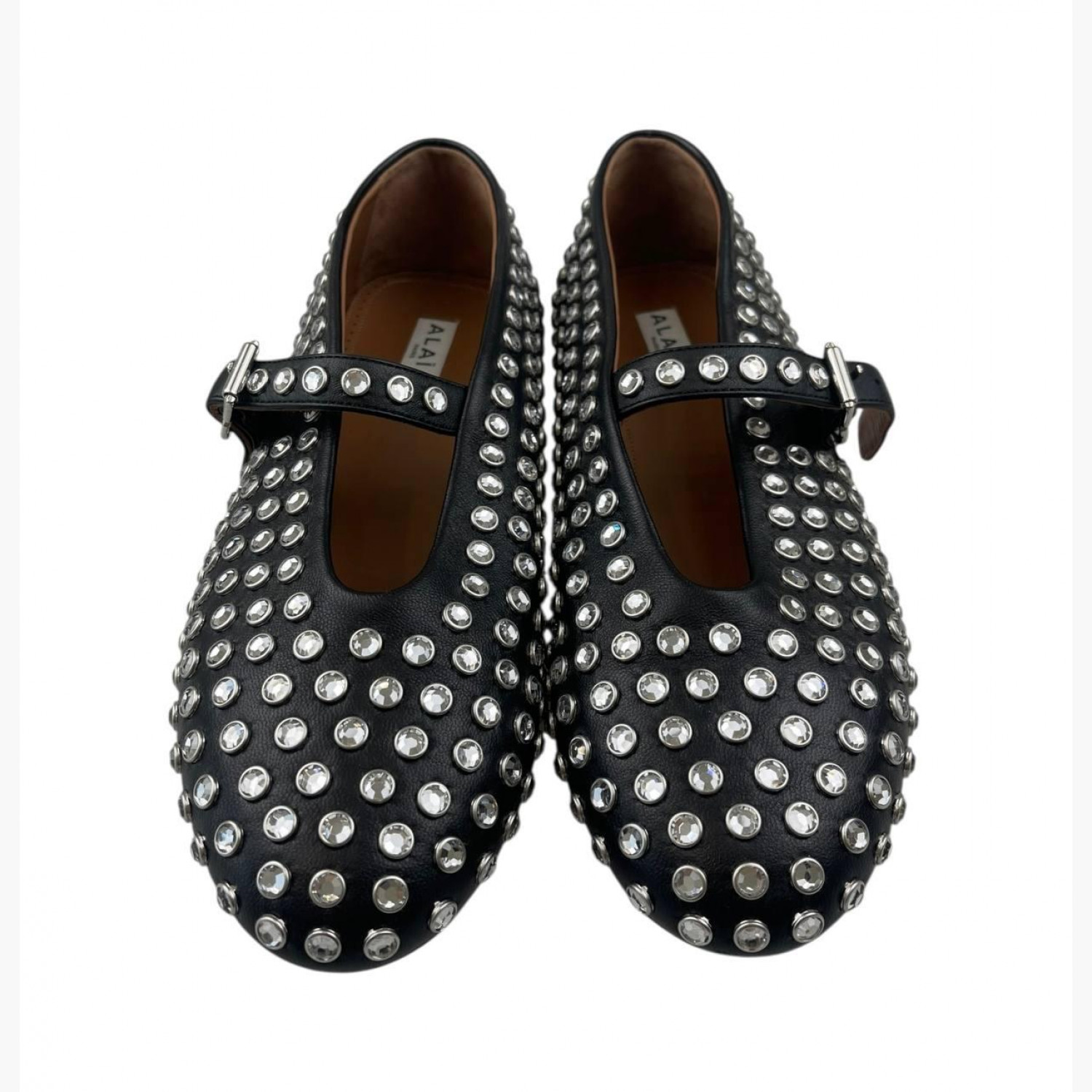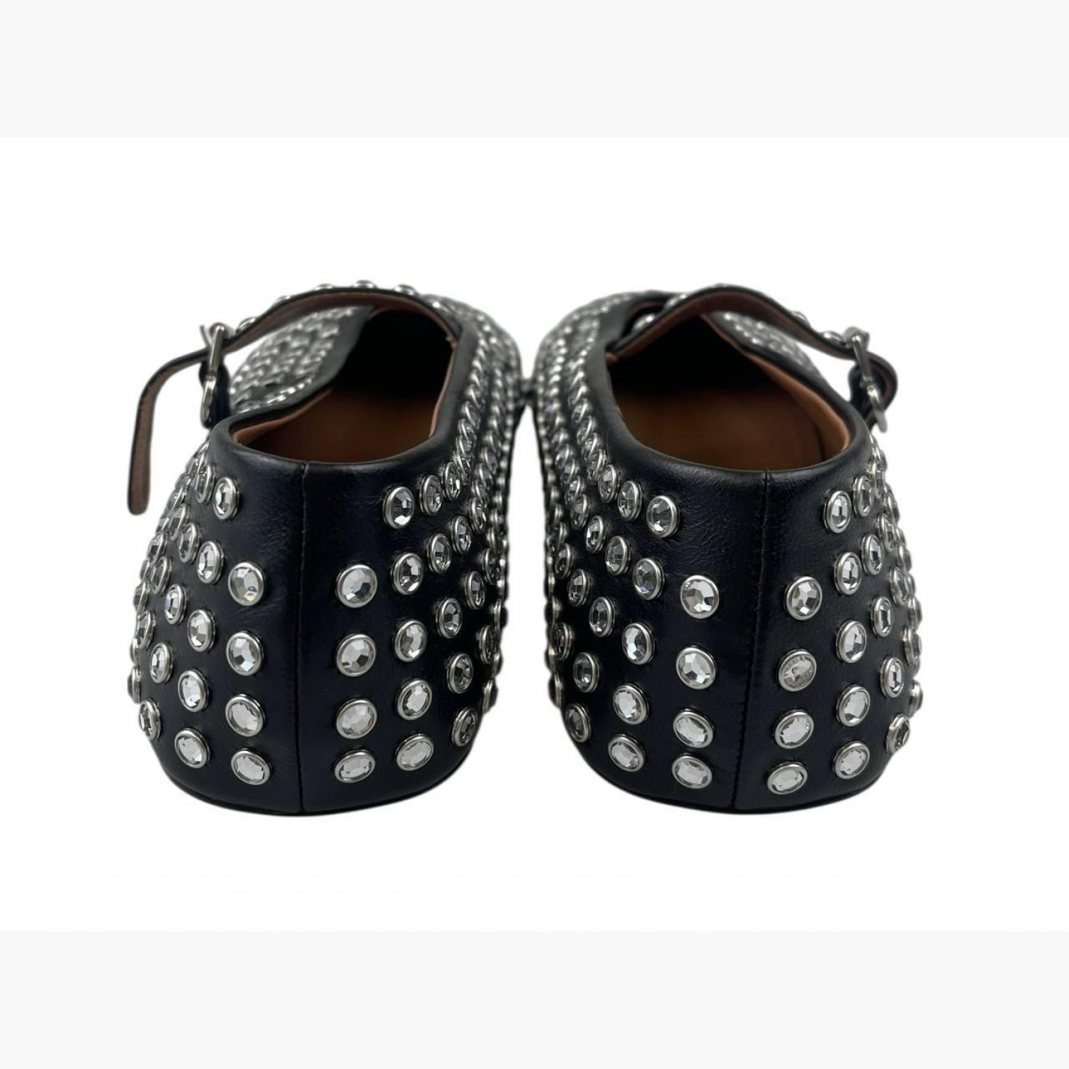 Чорні шкіряні балетки на ремінці, оздоблені камінцями. У відмінному стані, без значних слідів вжитку.