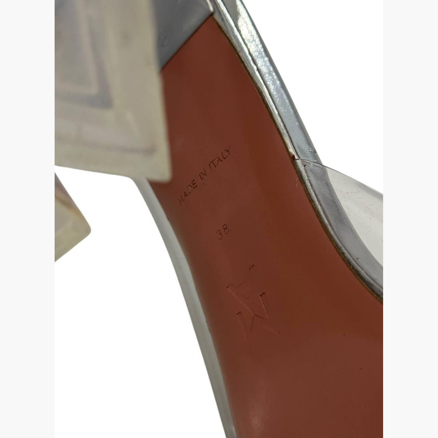Сріблясті шкіряні босоніжки з прозорими вставками. У гарному стані, є потертості та подряпини.