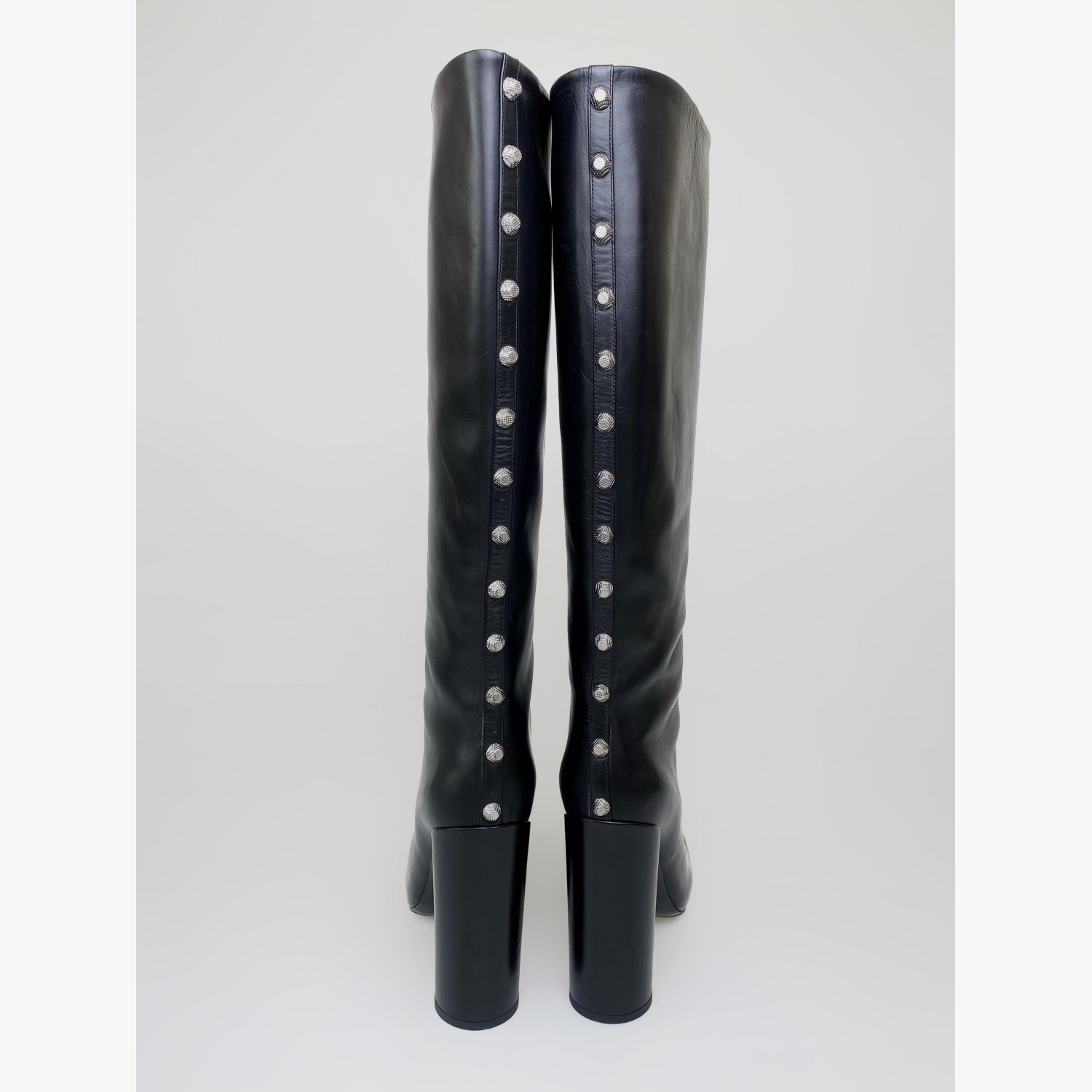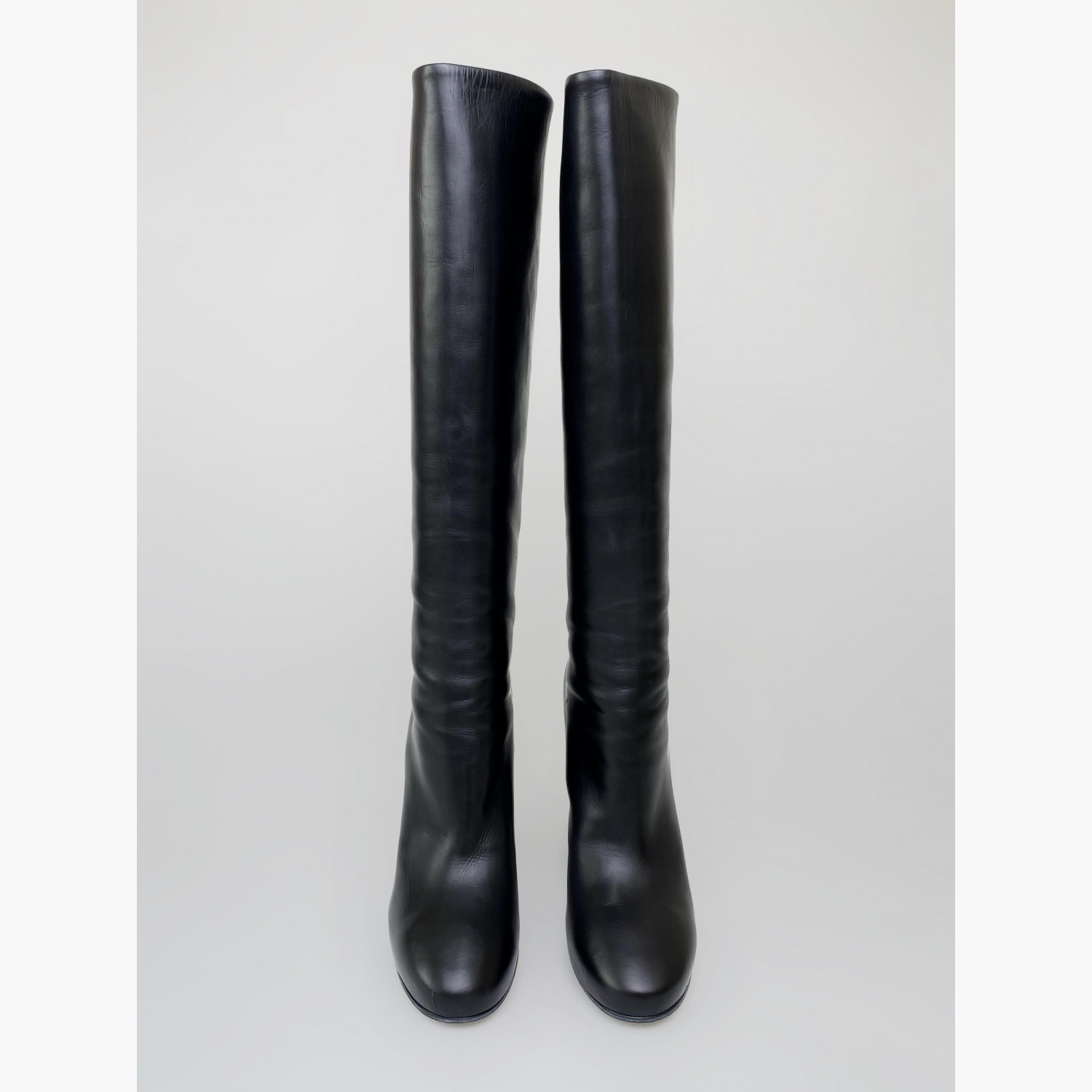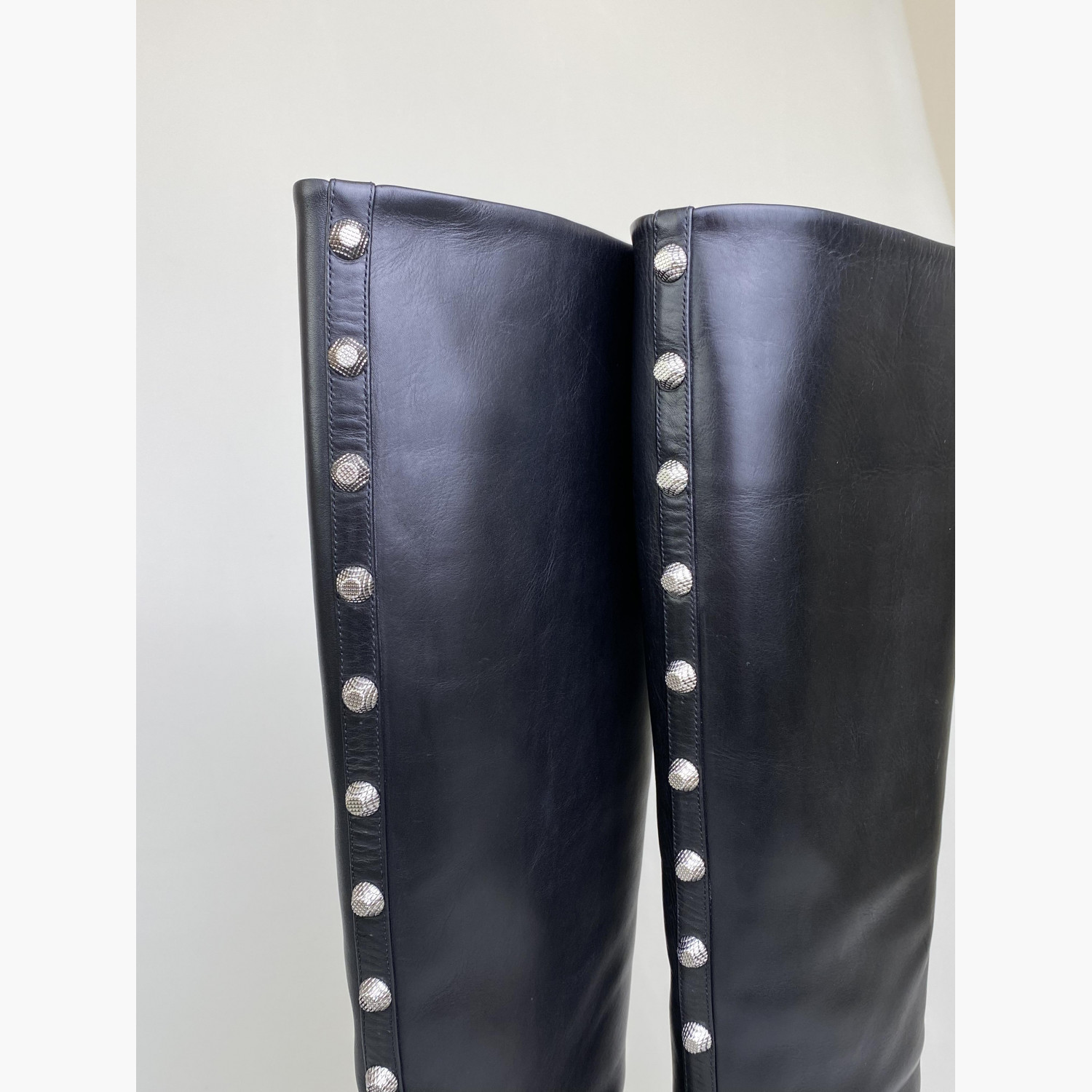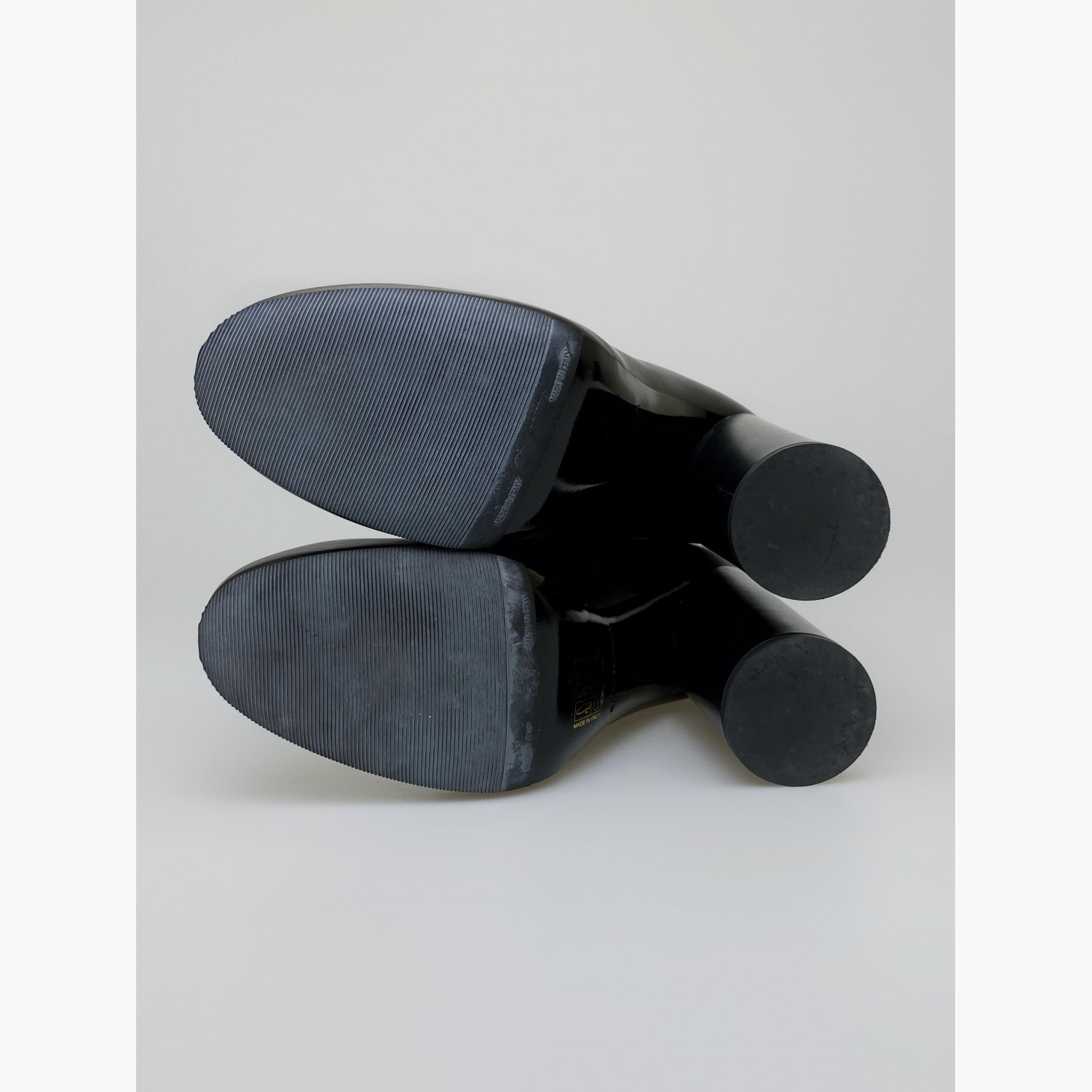 Чоботи в дуже хооршому стані, присутні незначні потертості. Виконані зі шкіри, всередині шкіряні. Широкі підбори обтянуті шкірою. Стильна класична модель.