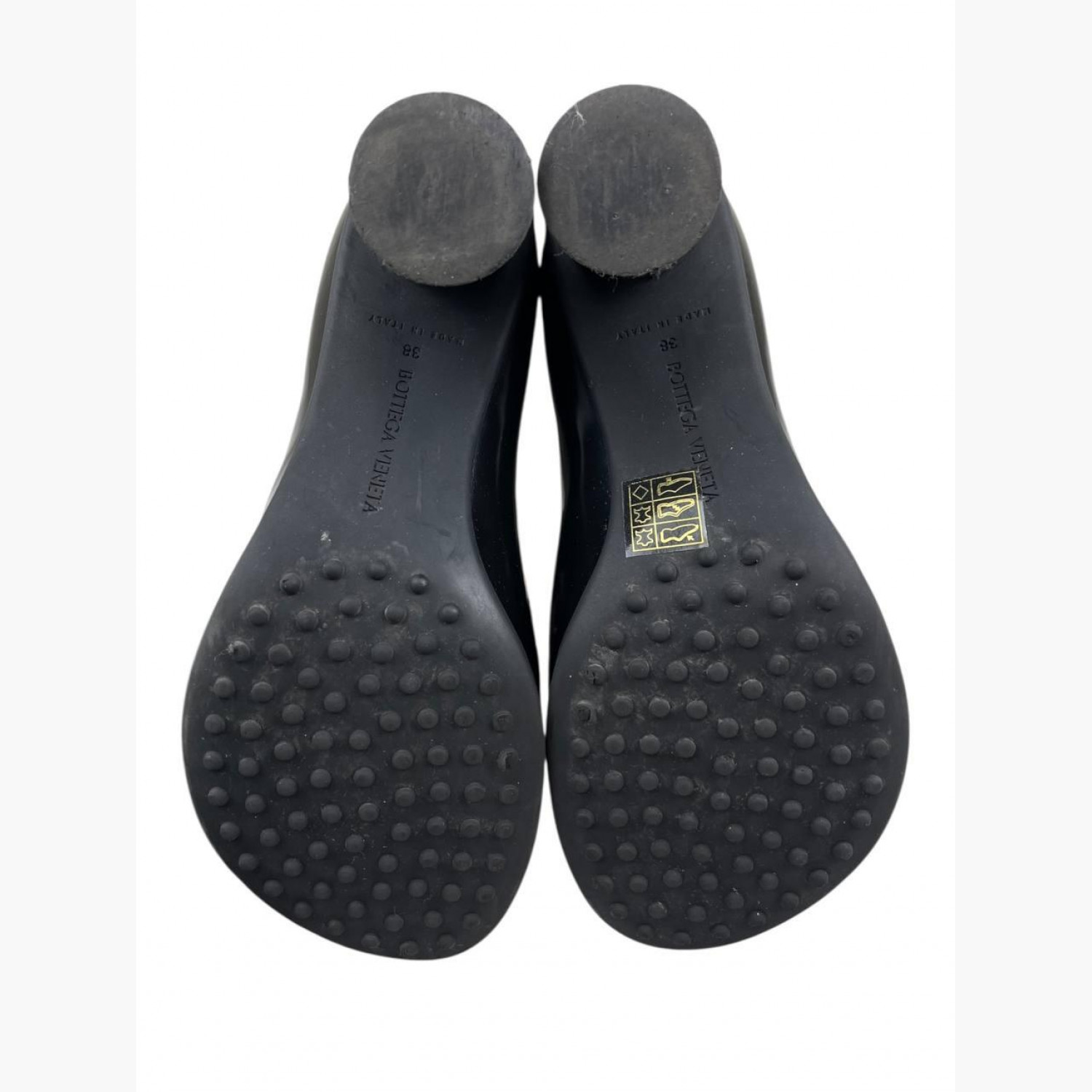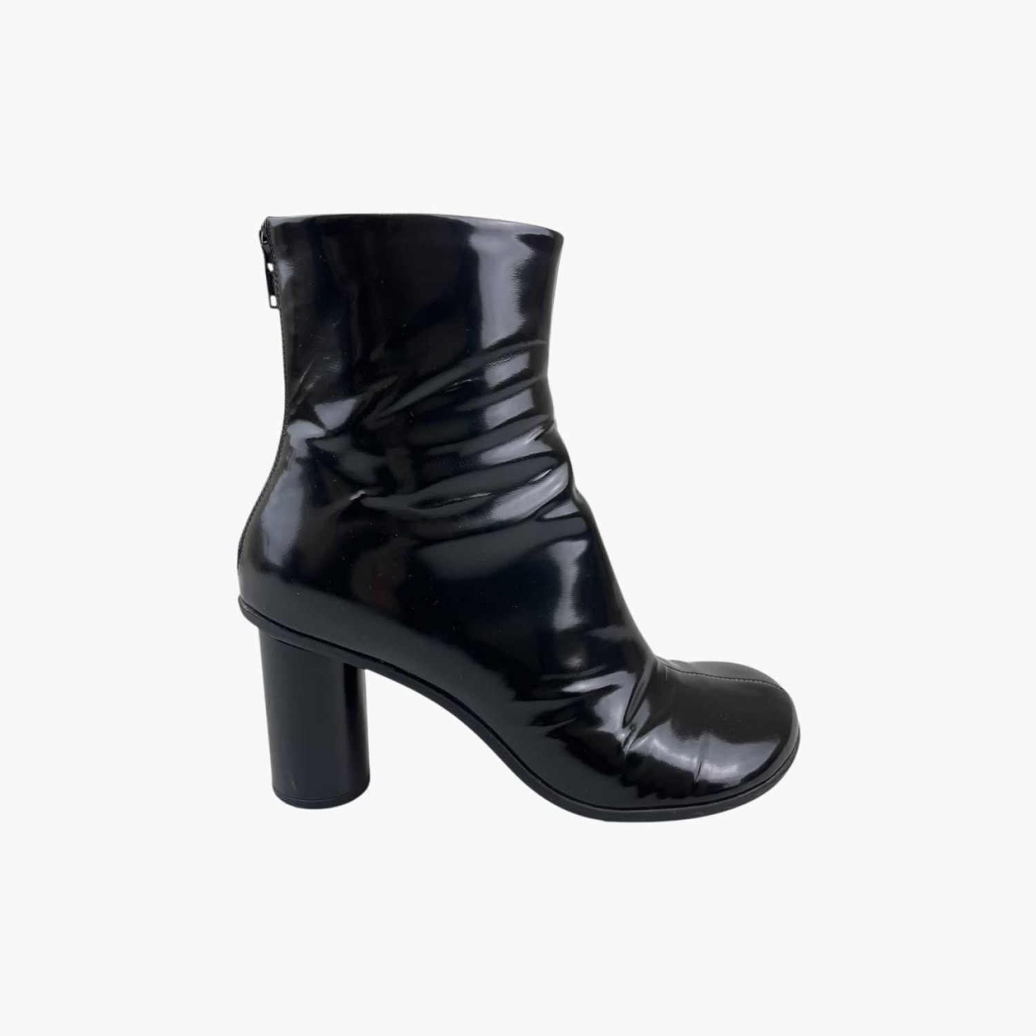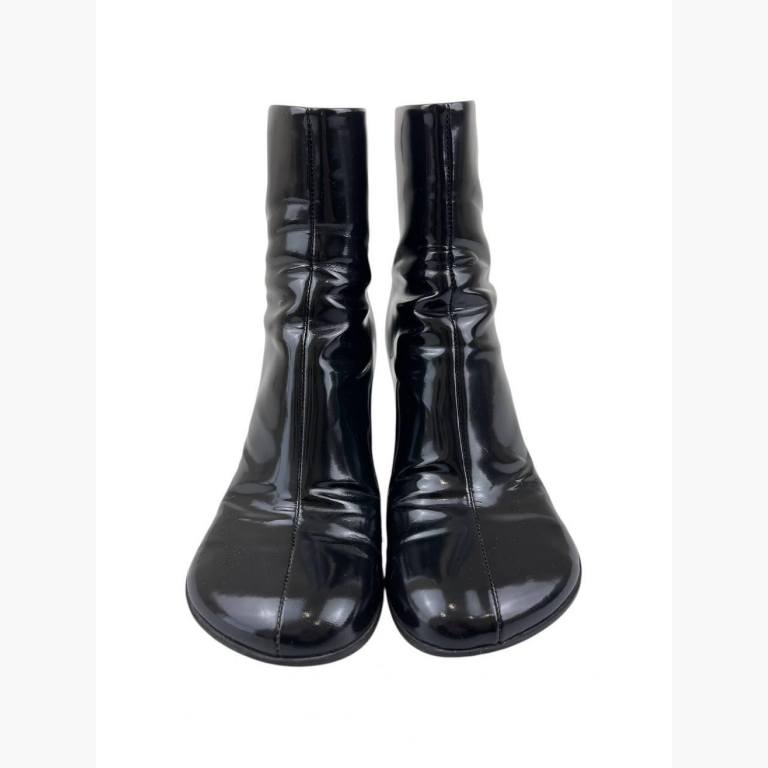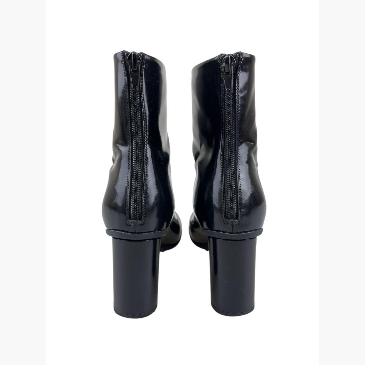 Чорні ботильйони з лакованої шкіри з круглим носком. У хорошому стані, є незначні сліди вжитку.