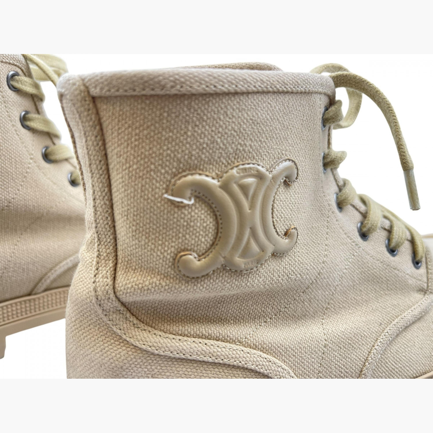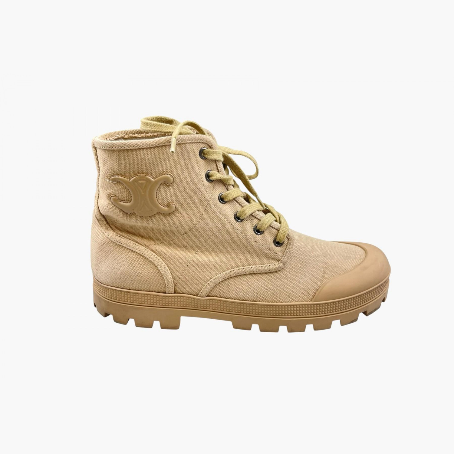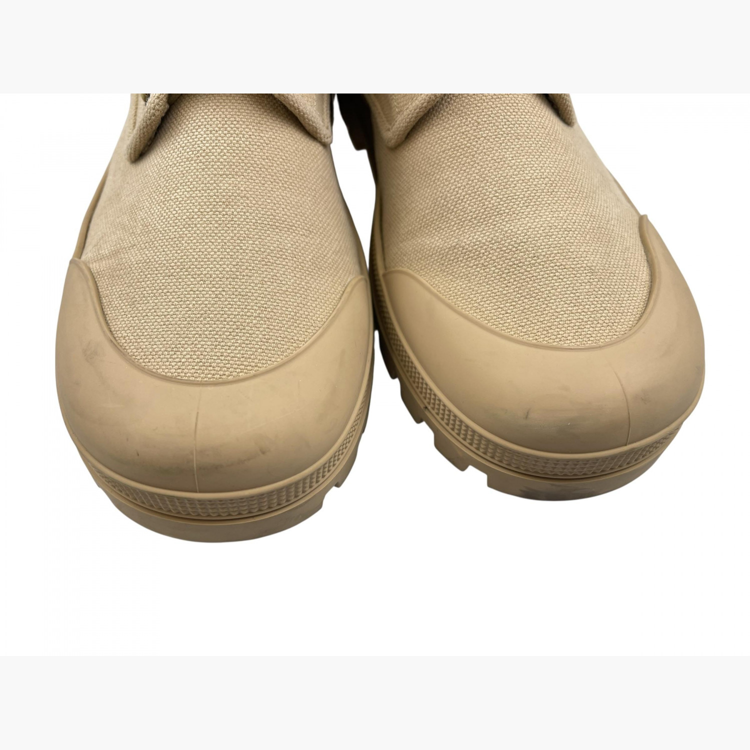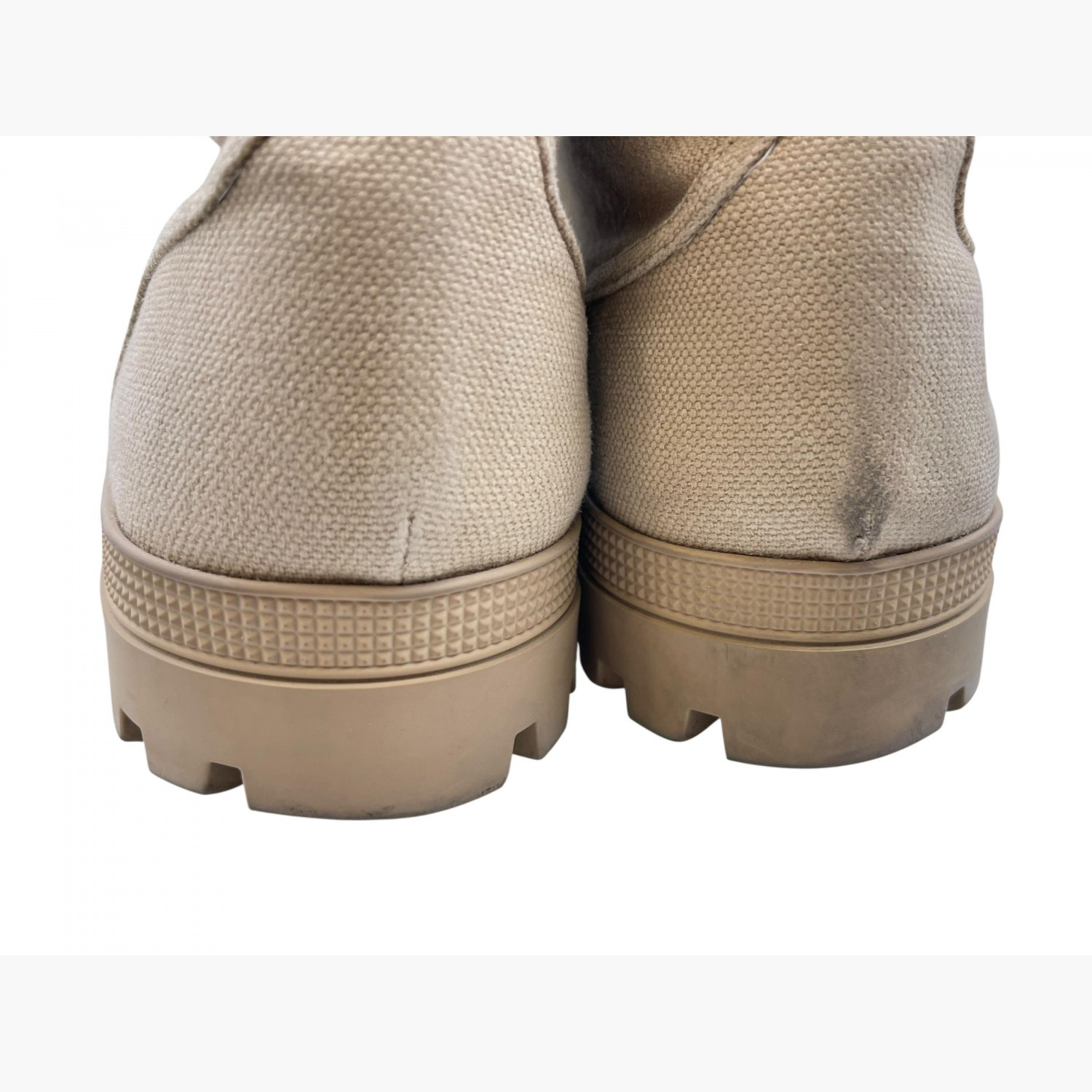 Бежеві текстильні кеди на гумовій підошві з гумовим носком. У гарному стані, є сліди вжитку.