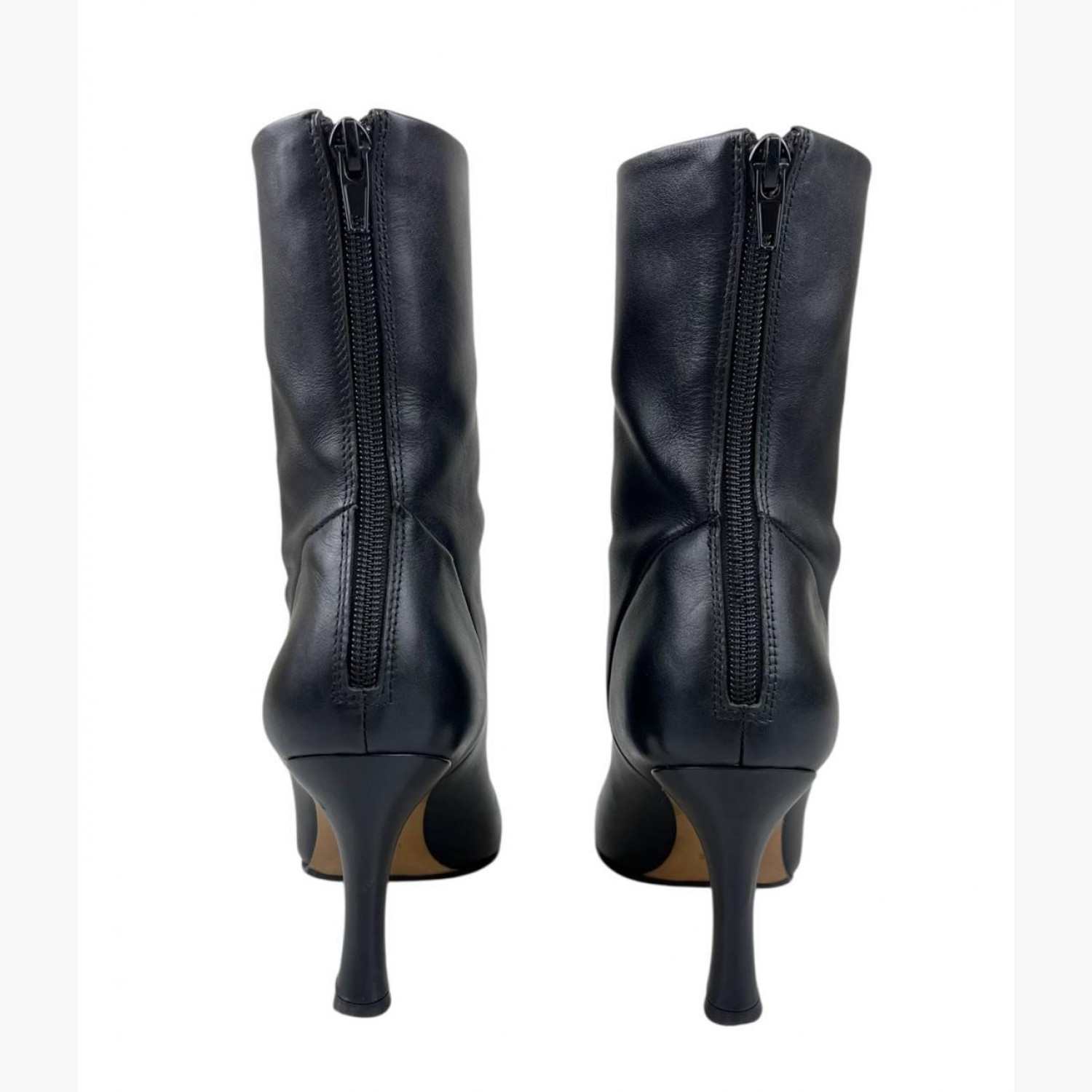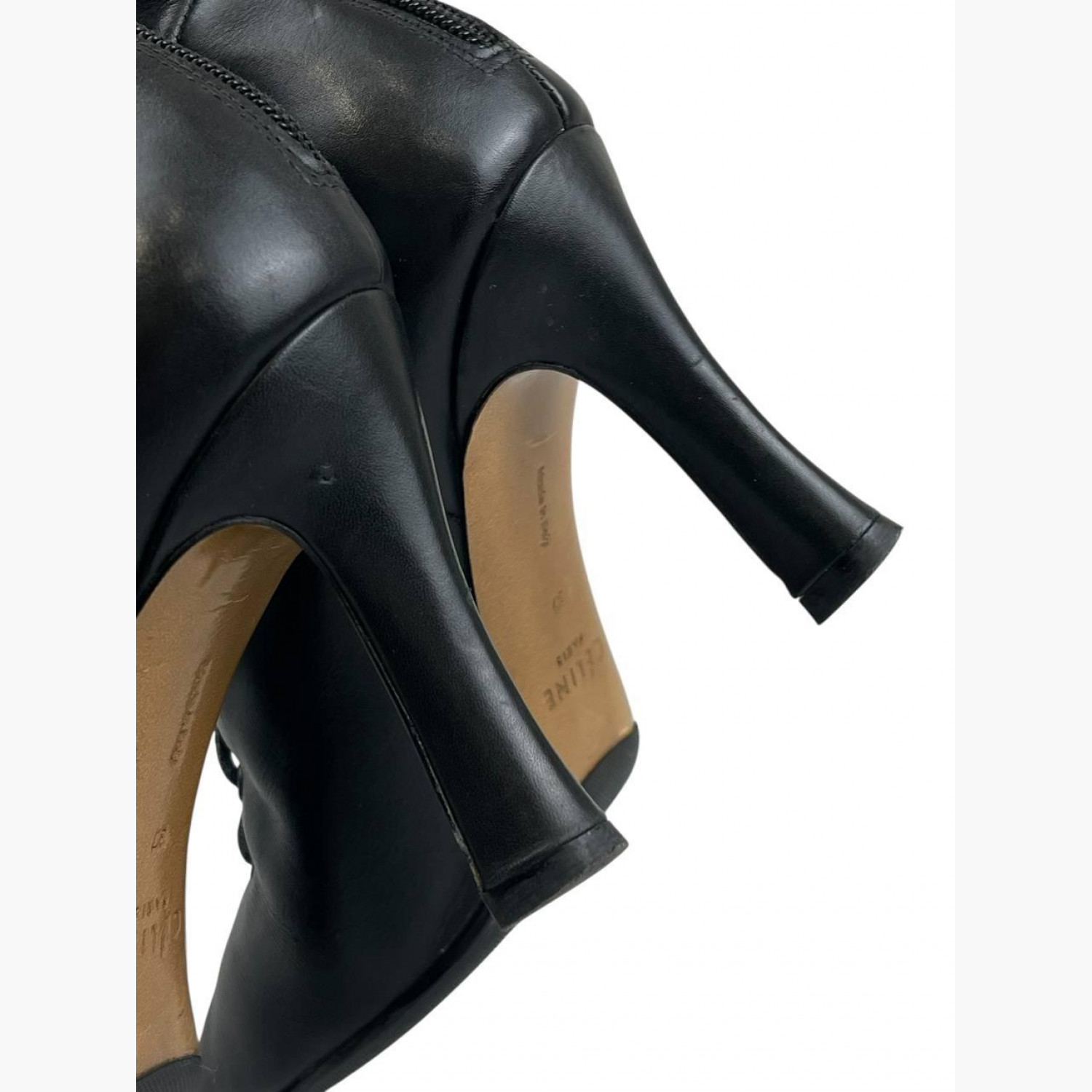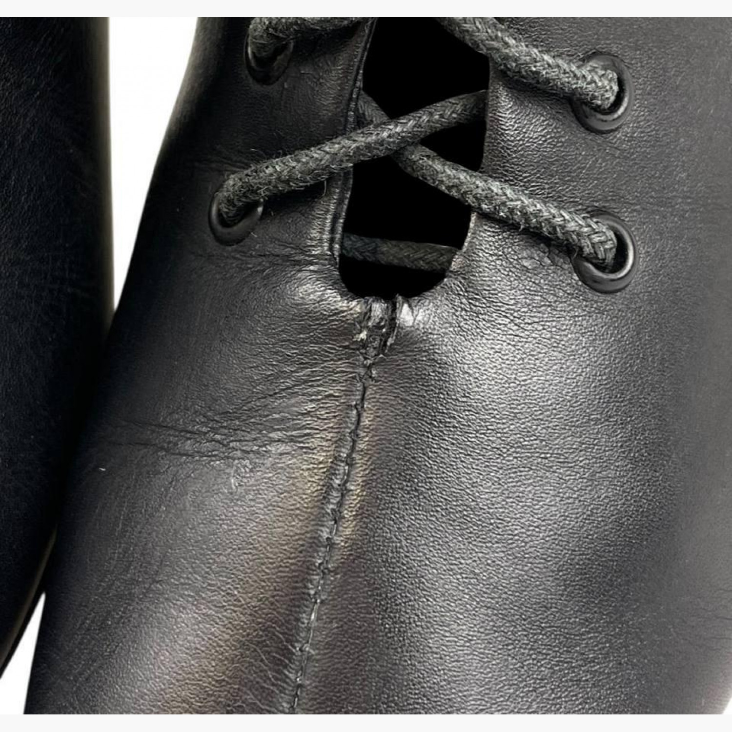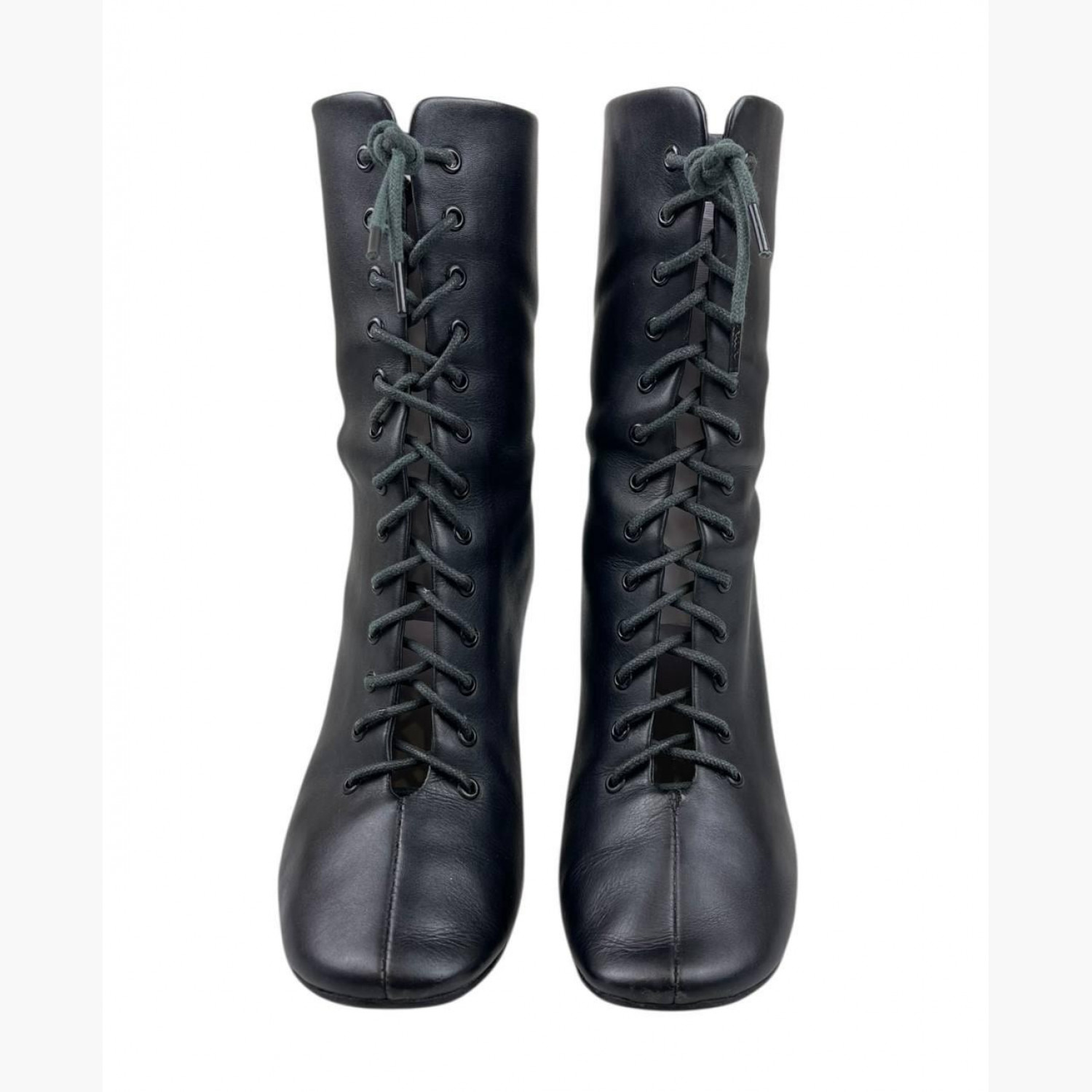 Шкіряні ботильйони на високих підборах зі шнурівкою та блискавкою ззаду. У хорошому стані, є сліди вжитку.