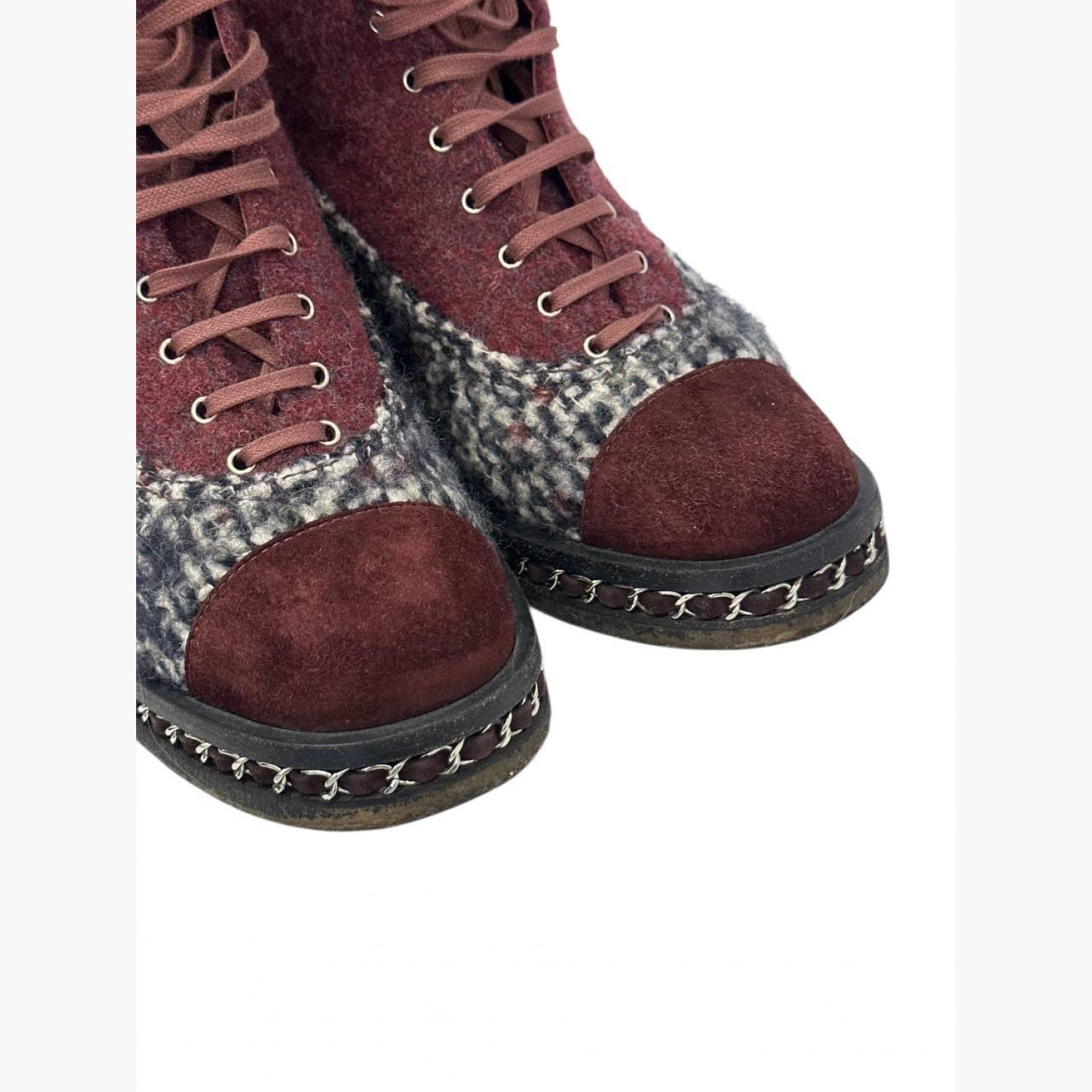 Бордові шкіряні черевики з текстильними вставками. У хорошому стані, є потертості.
