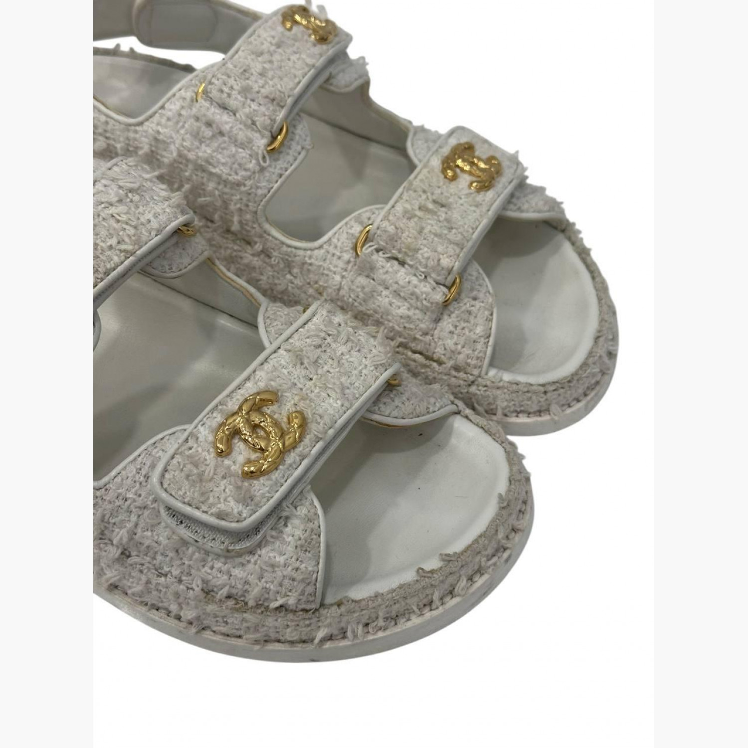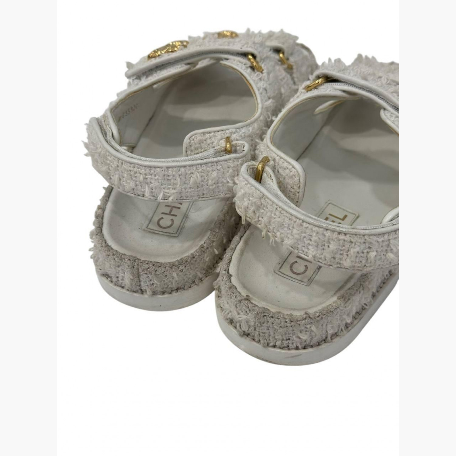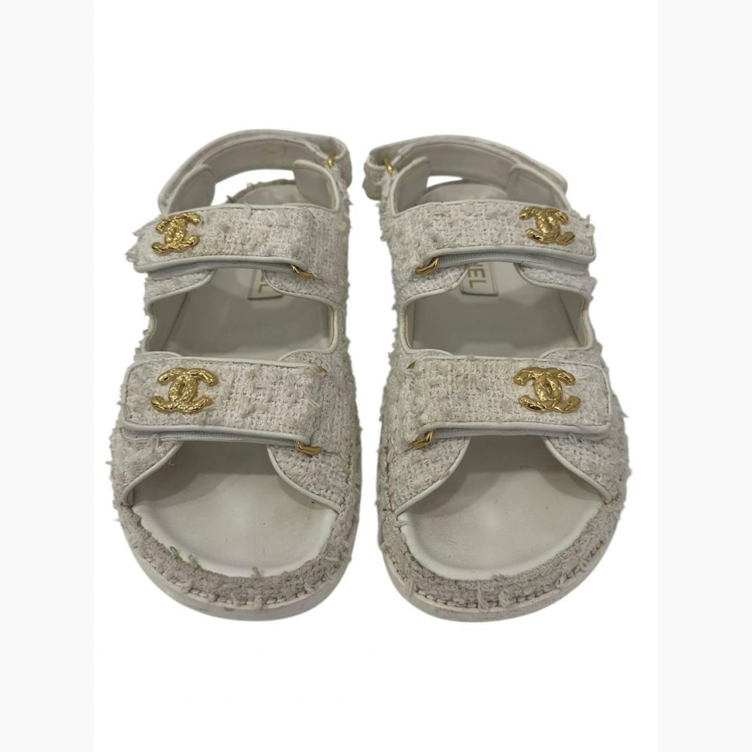 Білі твідові сандалі на липучках. У хорошому стані, є потертості.