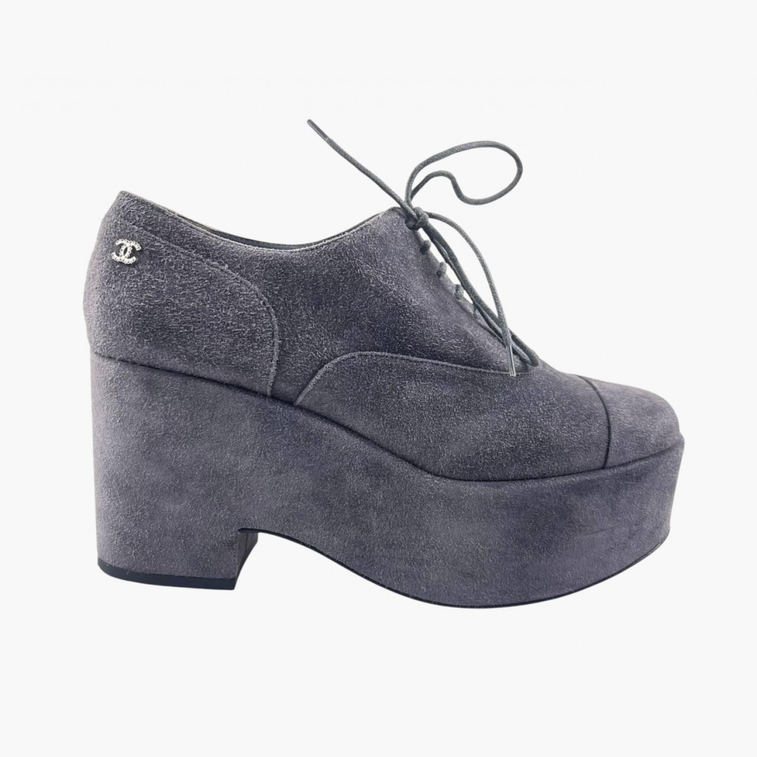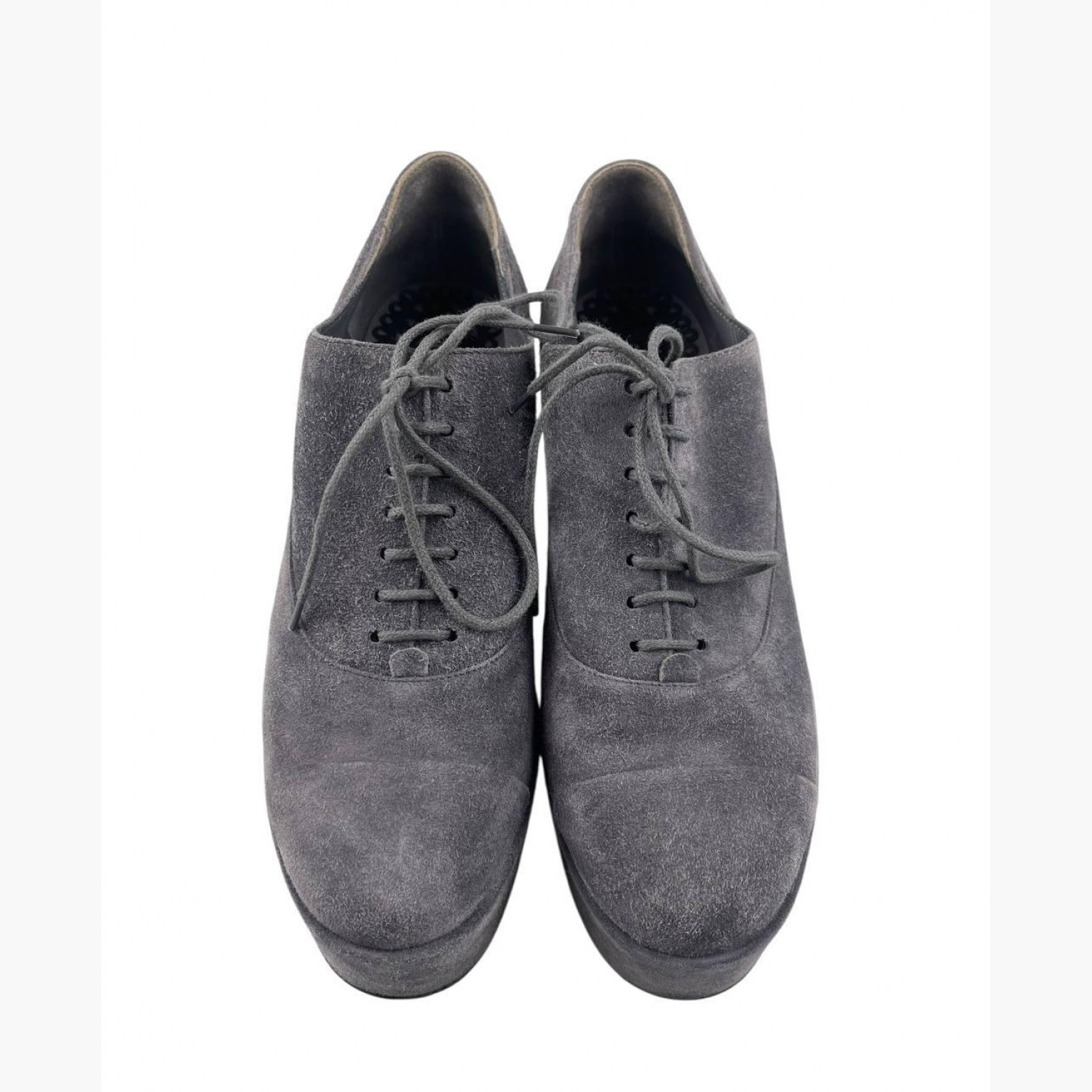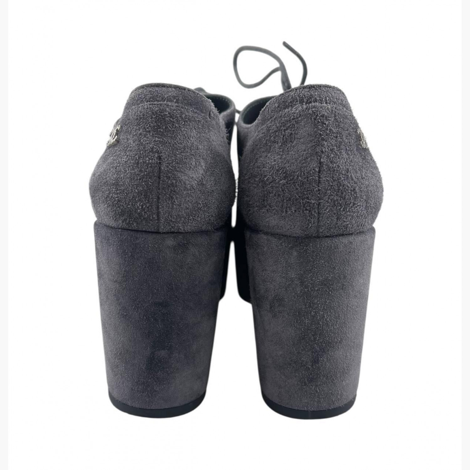 Сірі замшеві броги на високих підборах, у хорошому стані, є потертості.