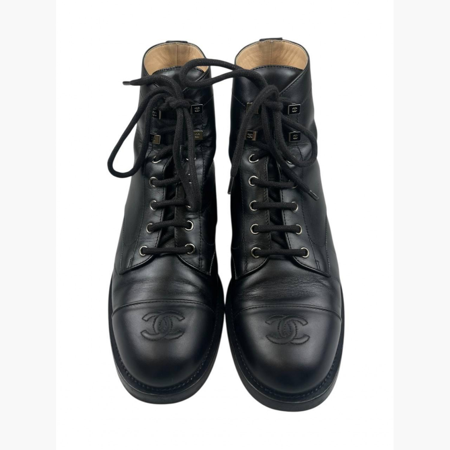 Чорні шкіряні черевики на шнурівці з логотипом на носку. У дуже хорошому стані, є незначні сліди вжитку.