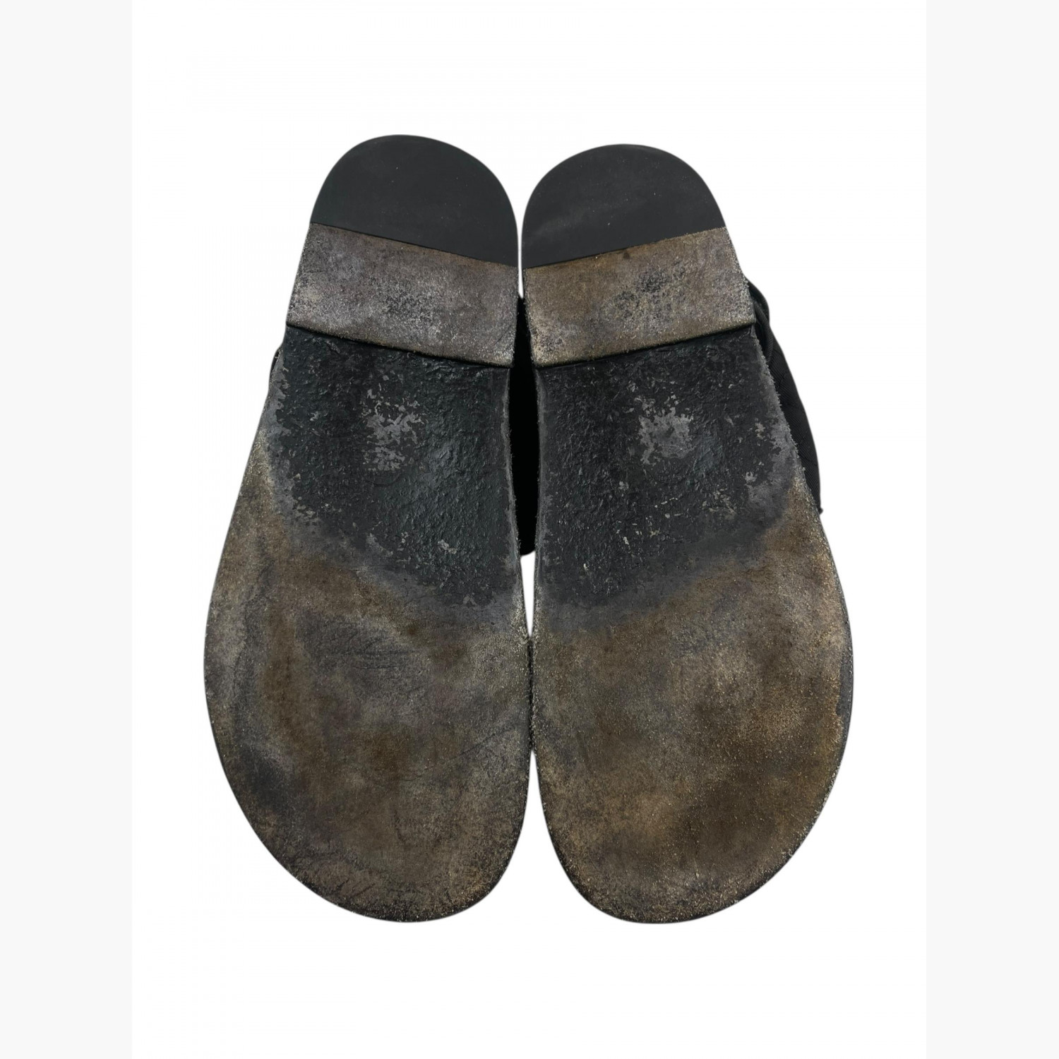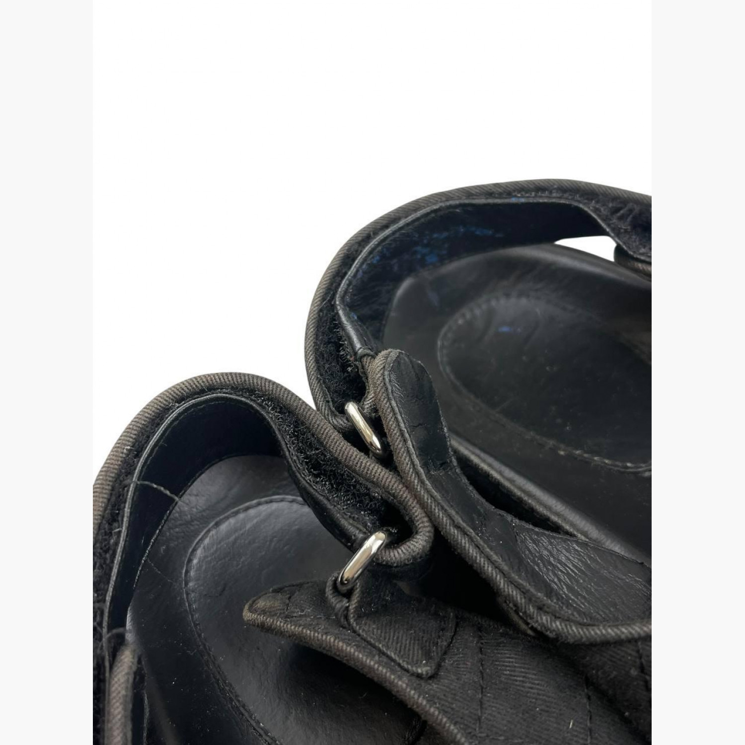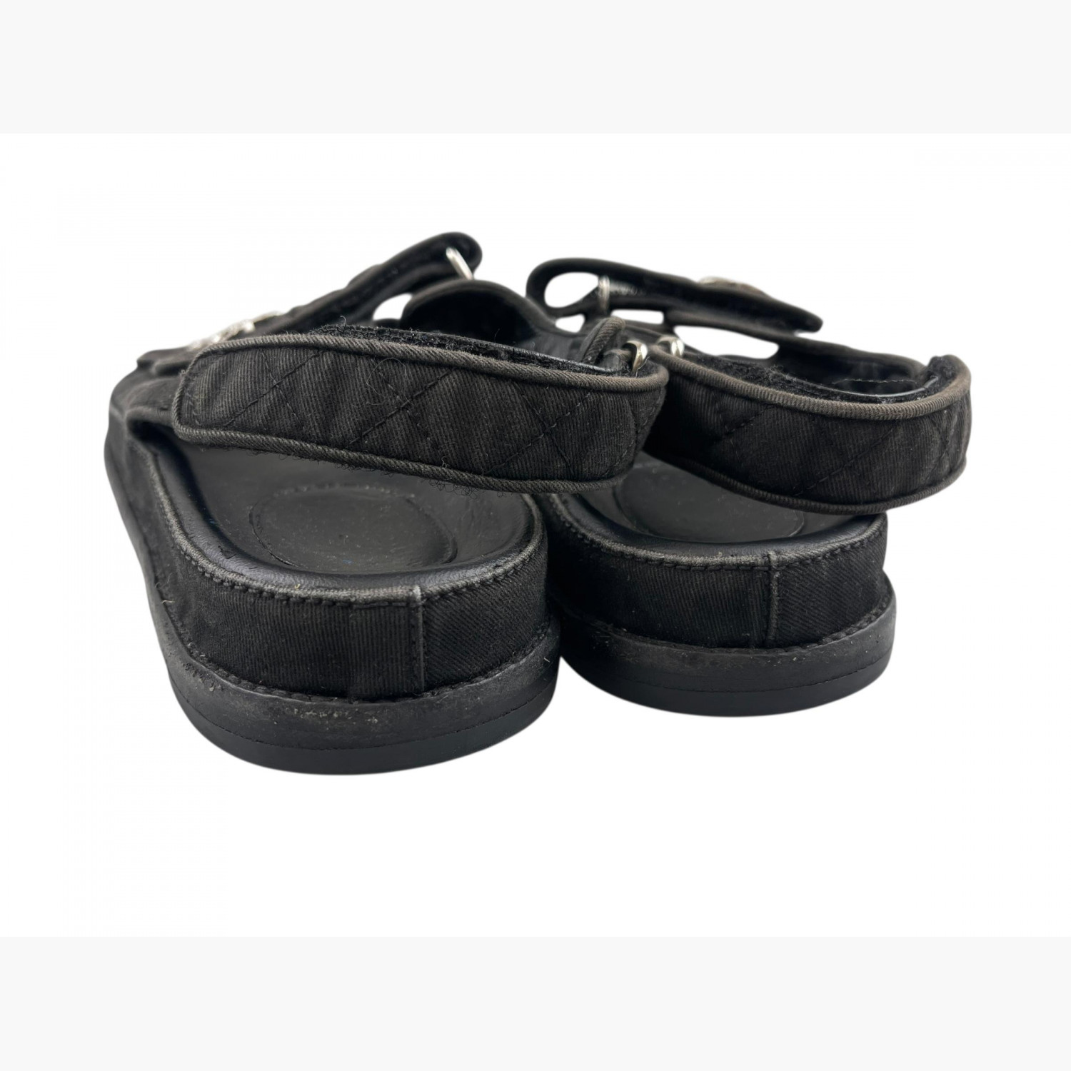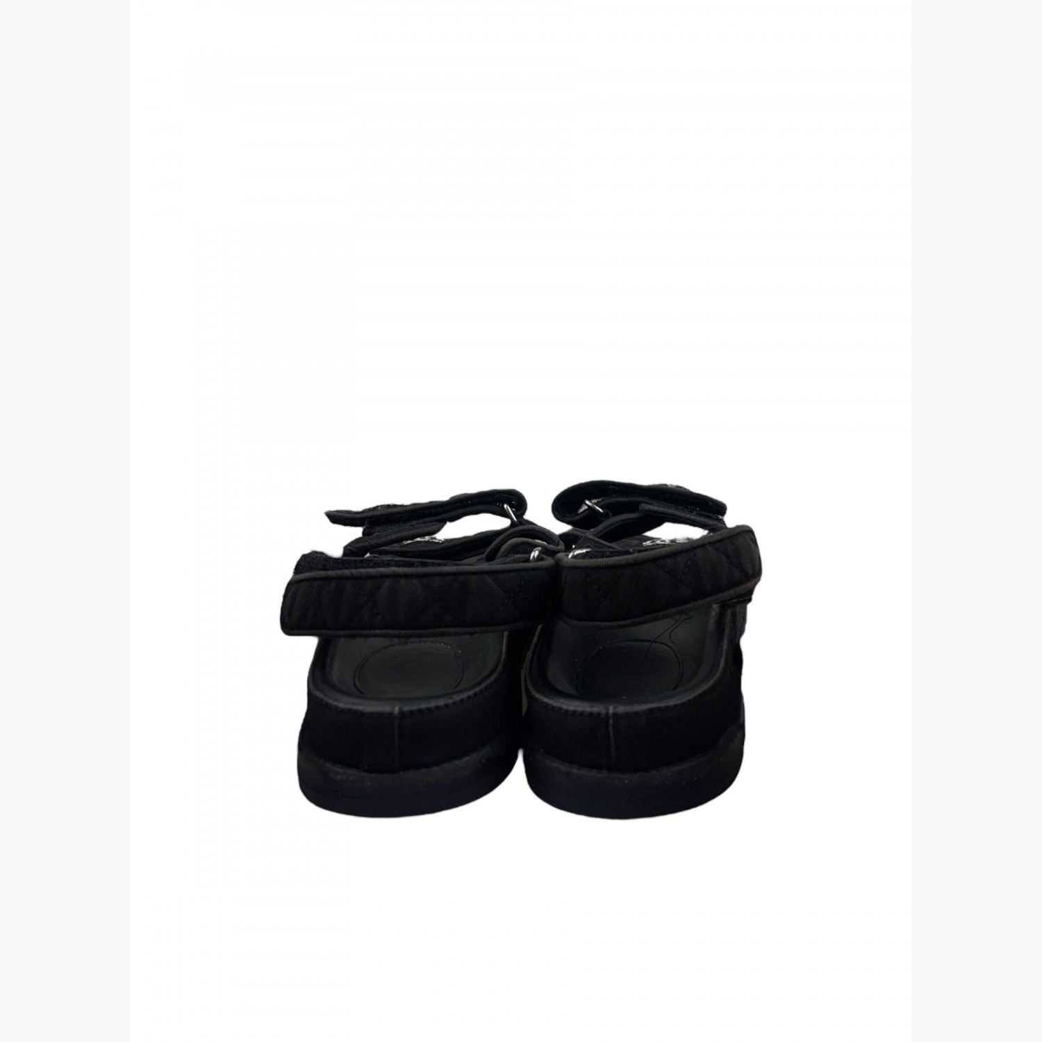 Текстильні стьобані сандалі з логотипом з каменів на ремінцях. У хорошому стані, є сліди вжитку.