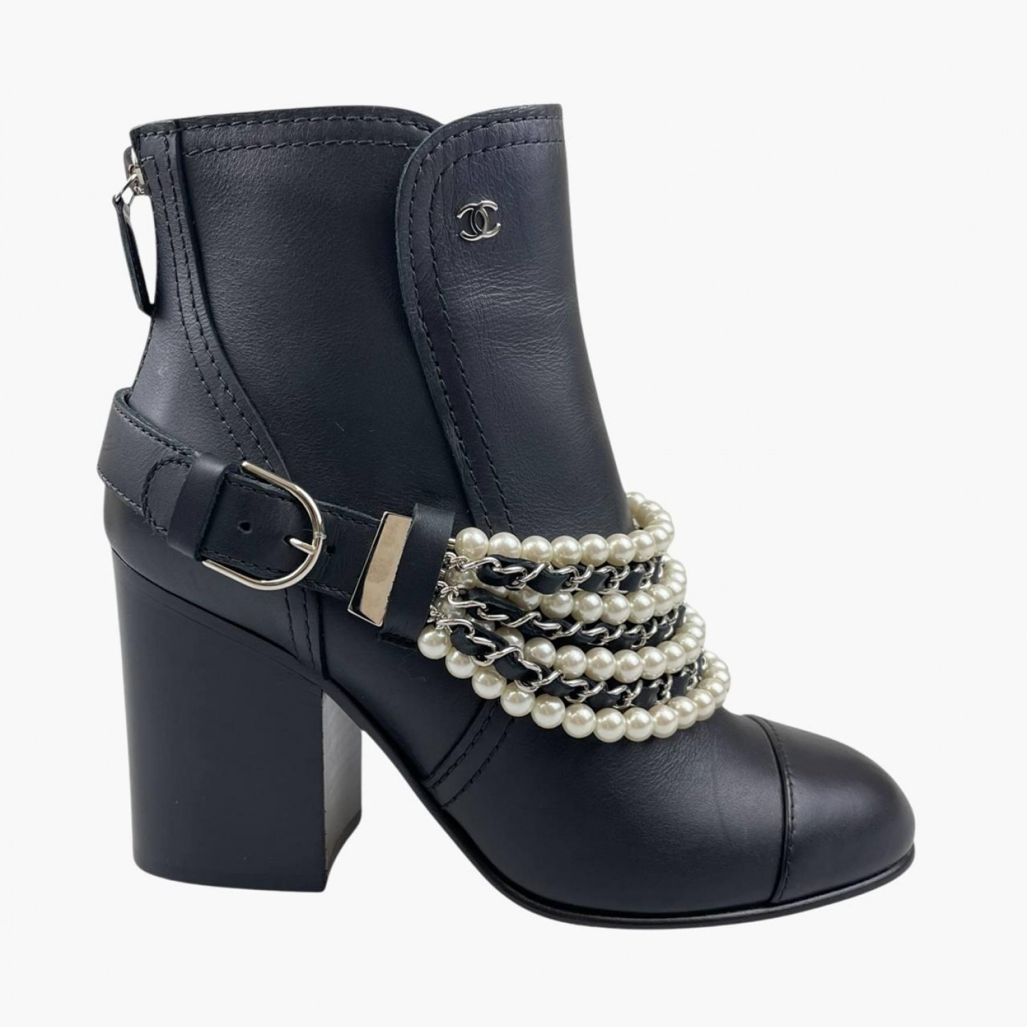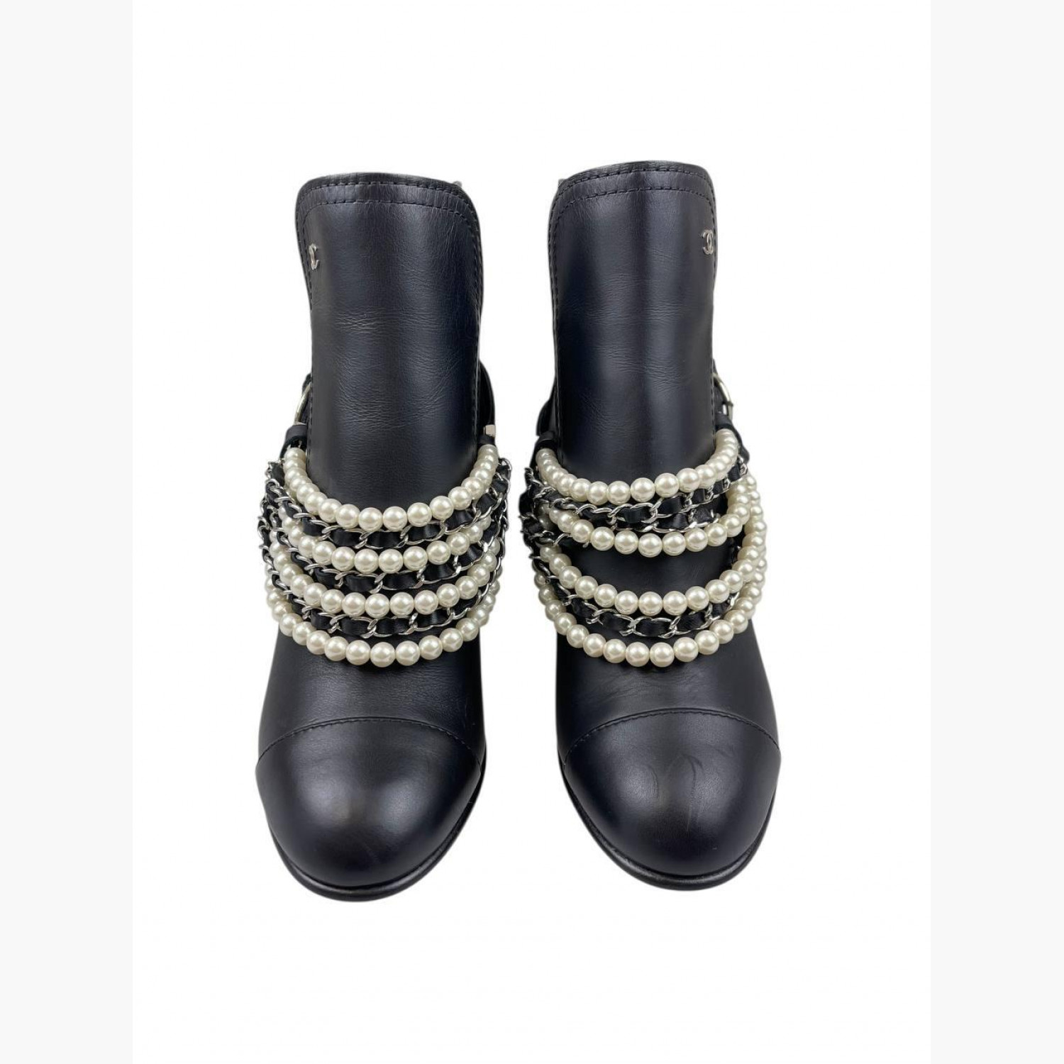 Шкіряні ботильйони зі знімним ремінцем, оздобленим намистинами. В відмінному стані, є незначні сліди вжитку.