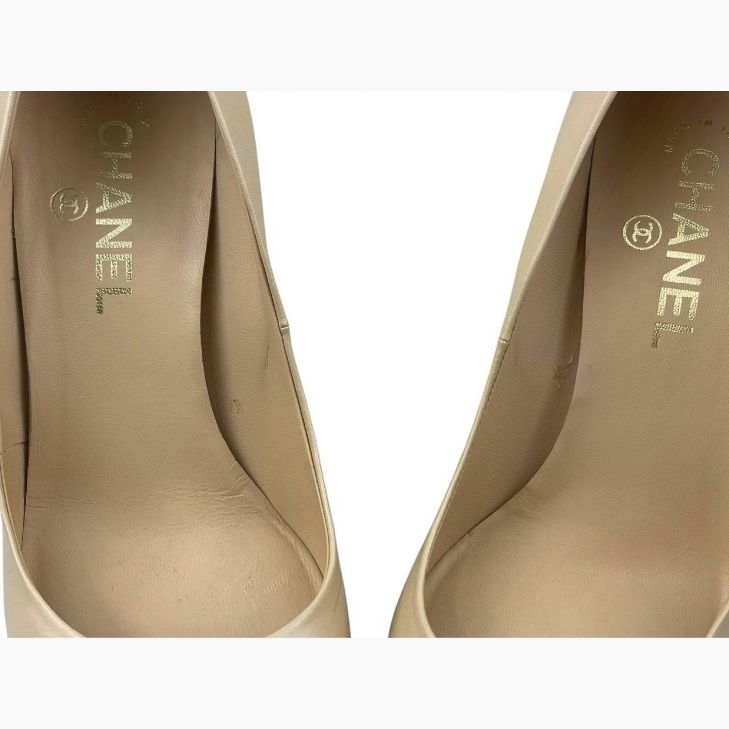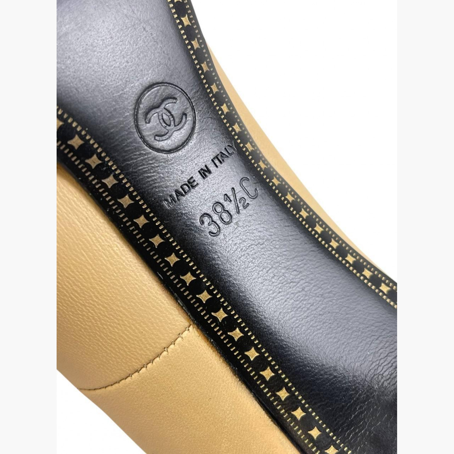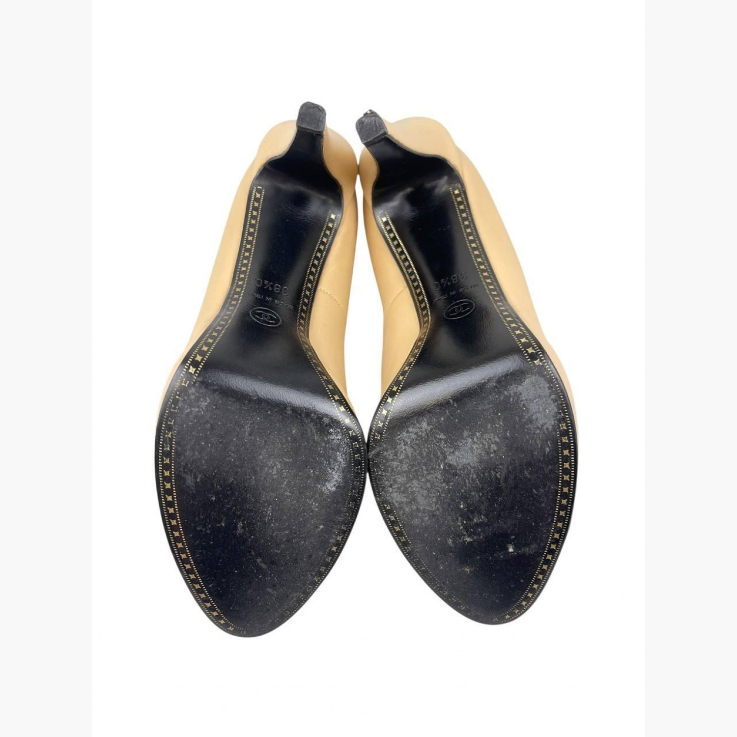 Бежеві шкіряні туфлі з круглим чорним носком. У хорошому стані, є сліди вжитку.