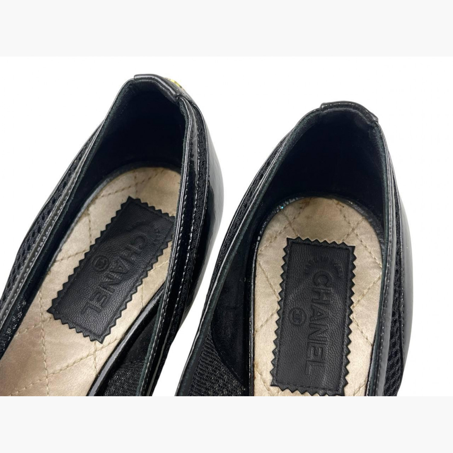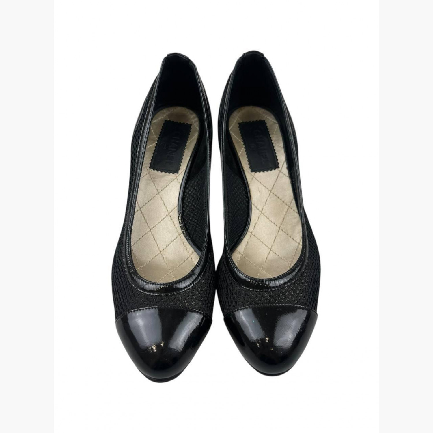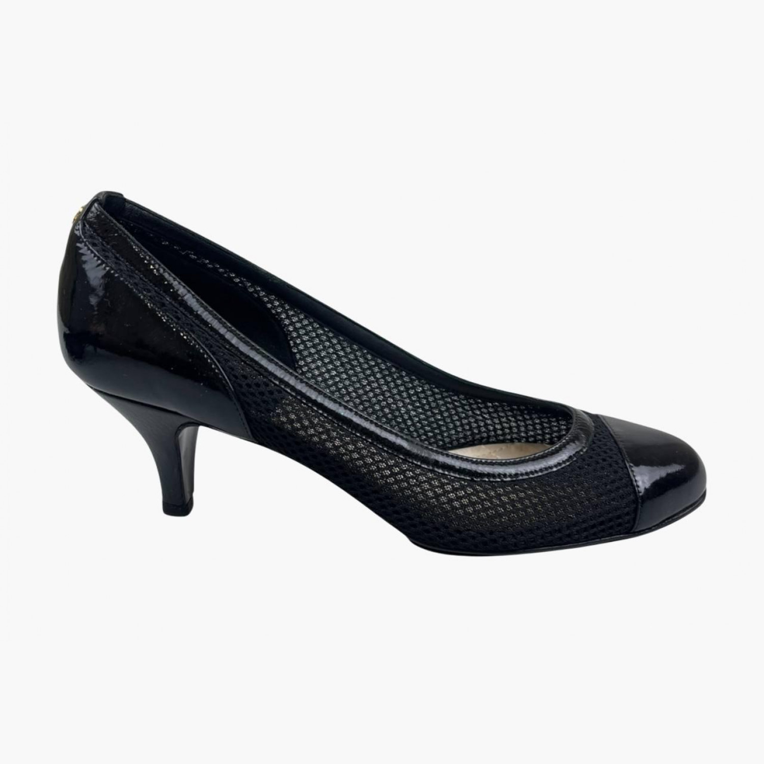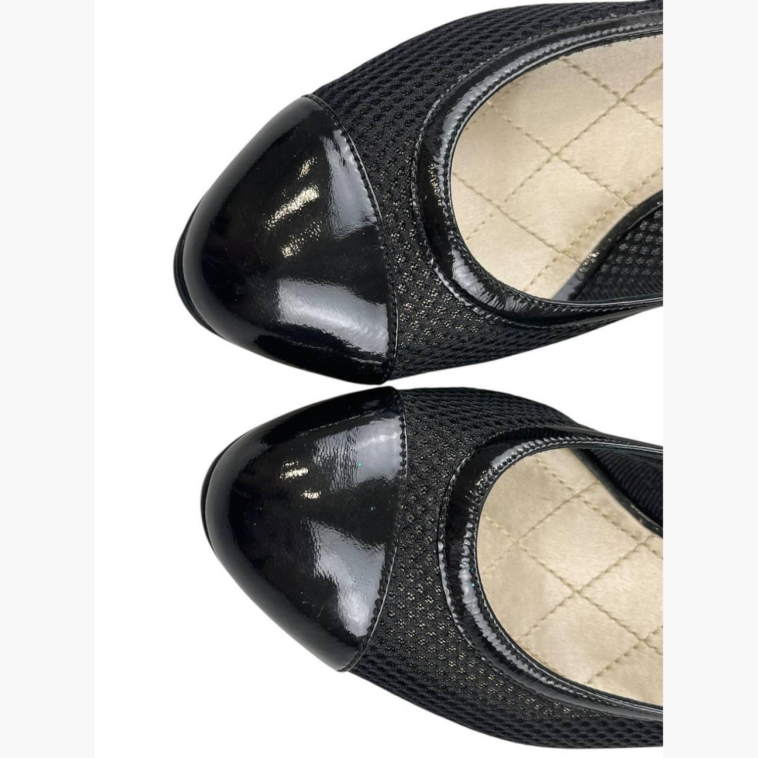 Чорні туфлі виконані з лакованої шкіри та сітчастого матеріалу. У хорошому стані, є незначні сліди вжитку.