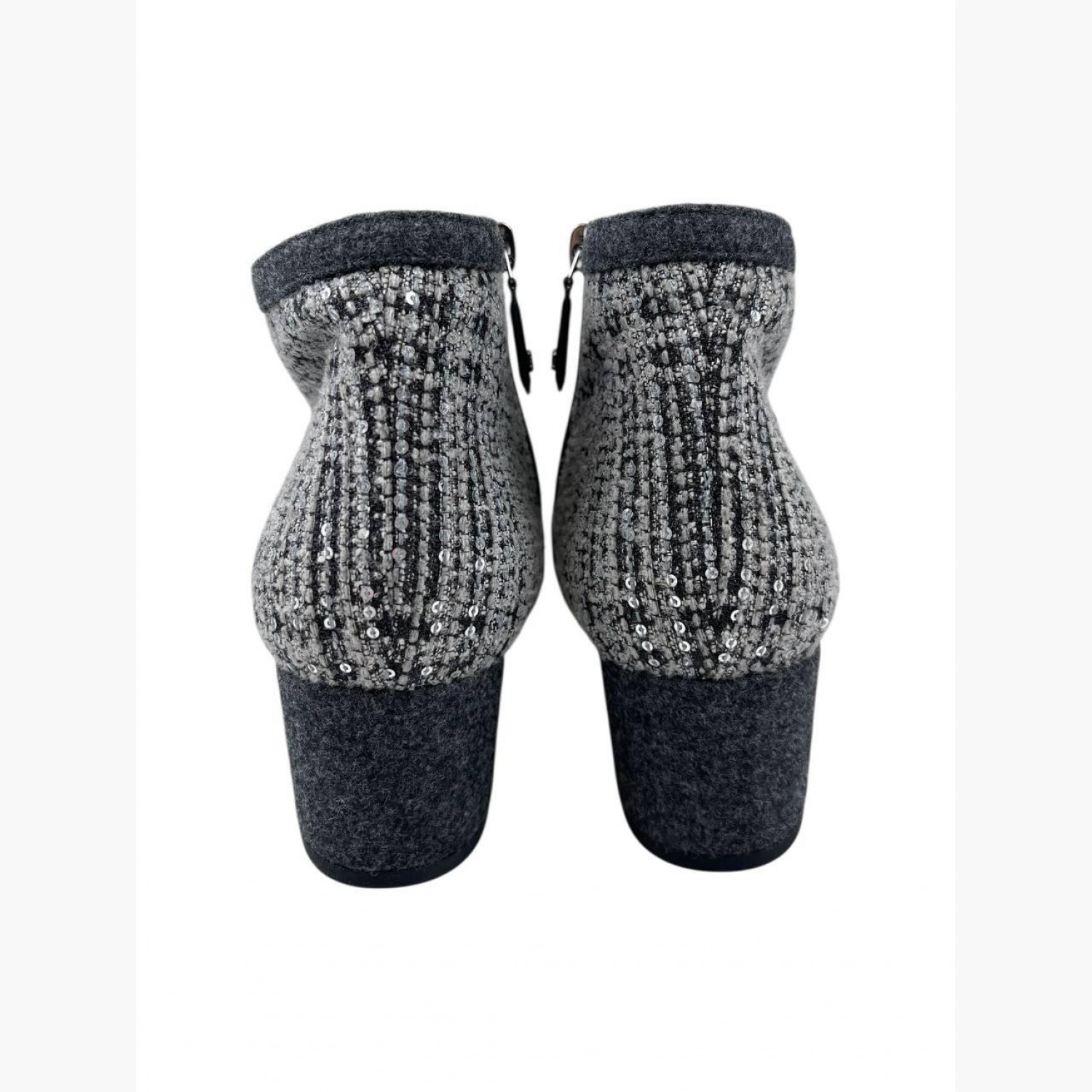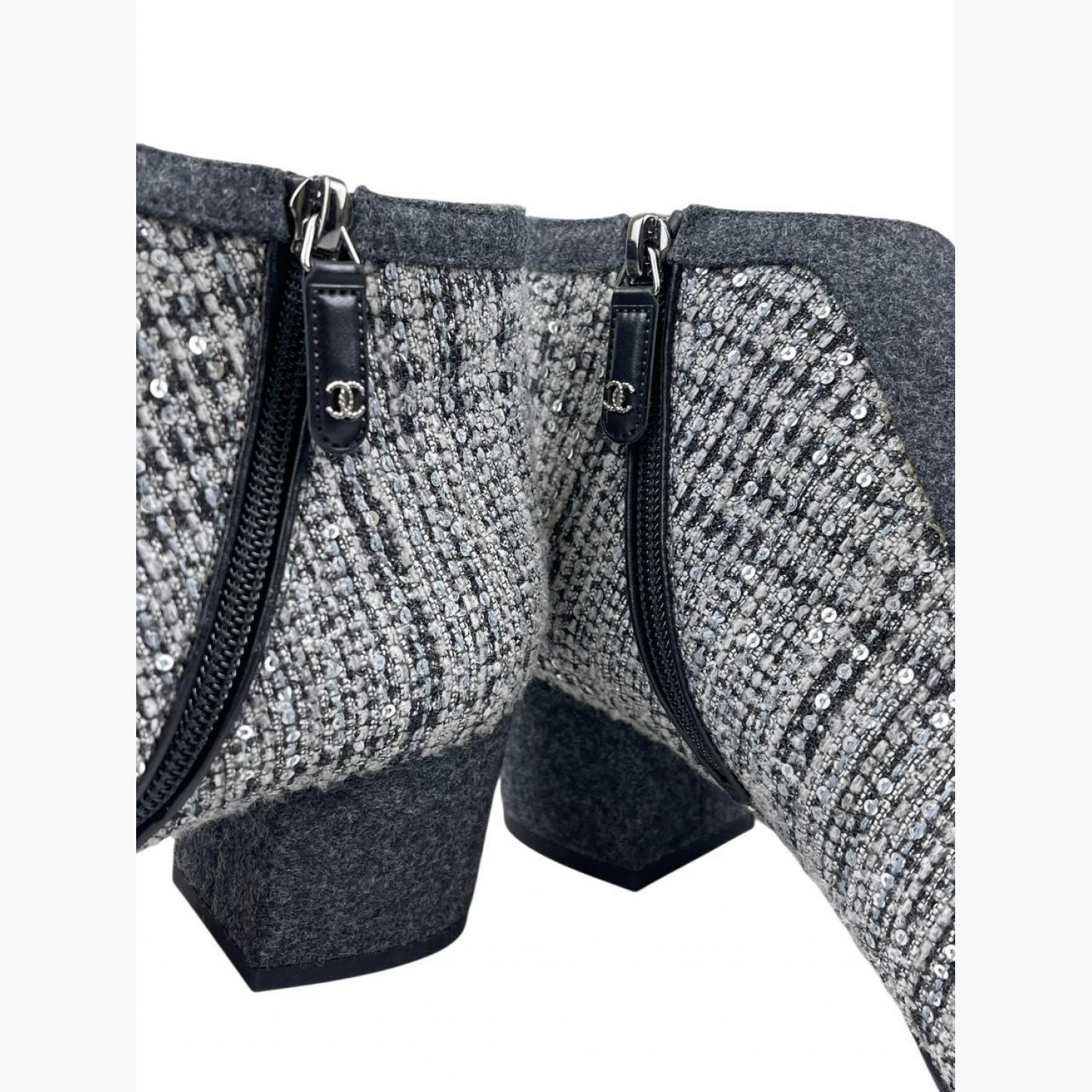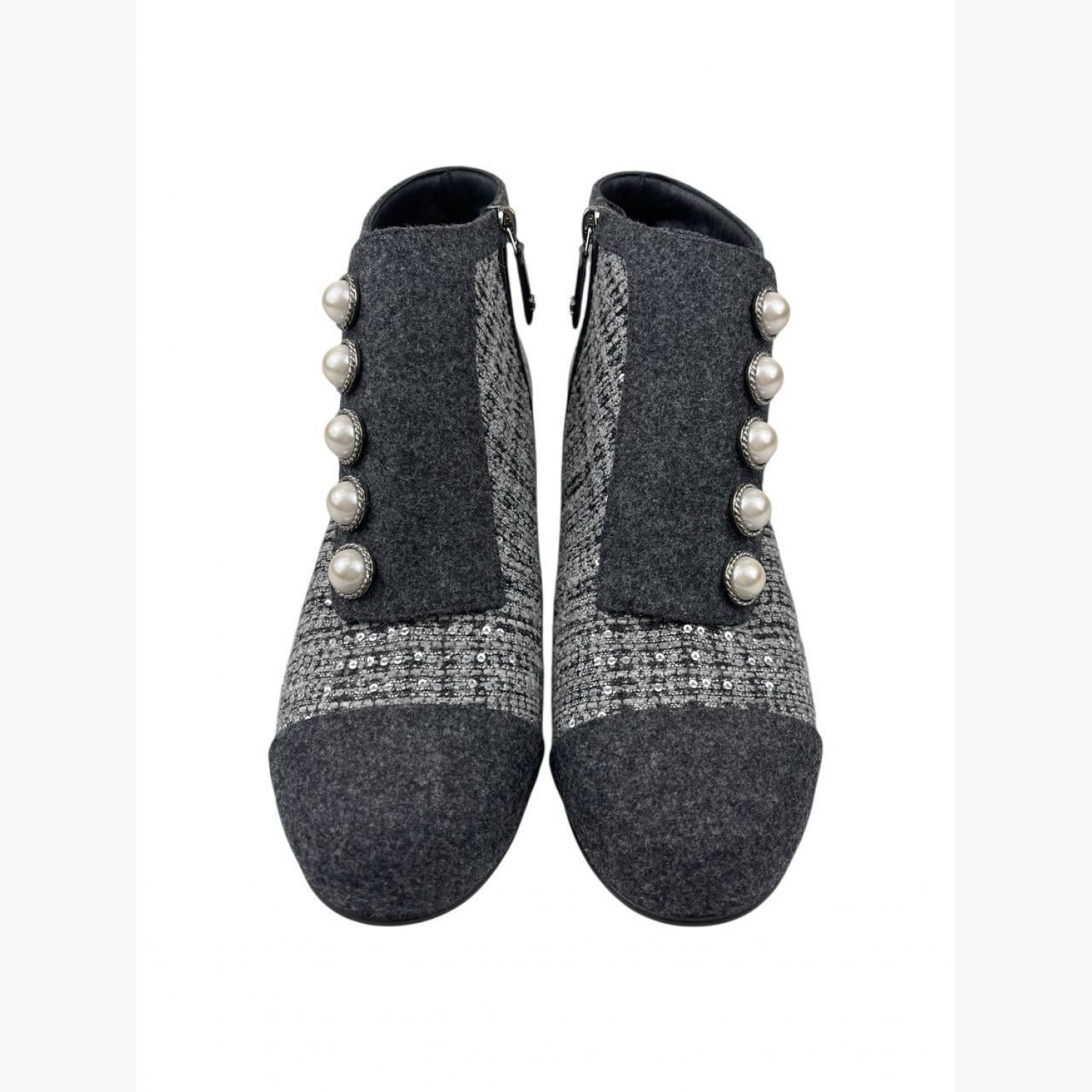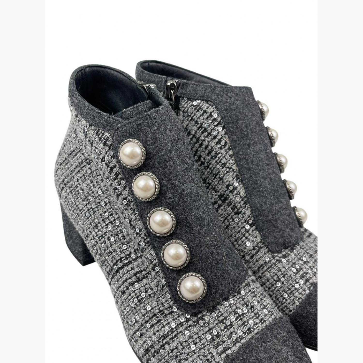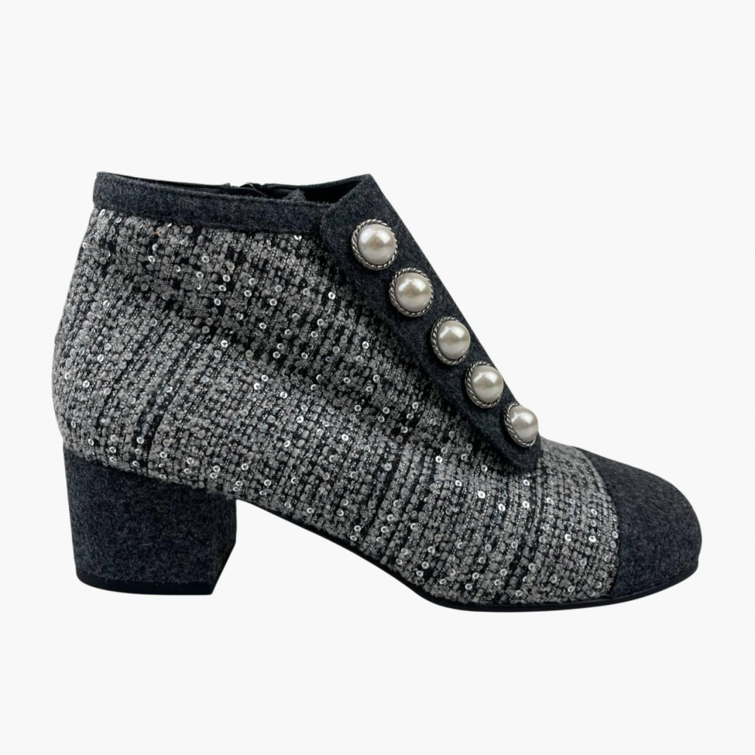 Сірі твідові ботильйони з блискітками та перлинними ґудзиками на блискавці. У відмінному стані, без слідів вжитку.